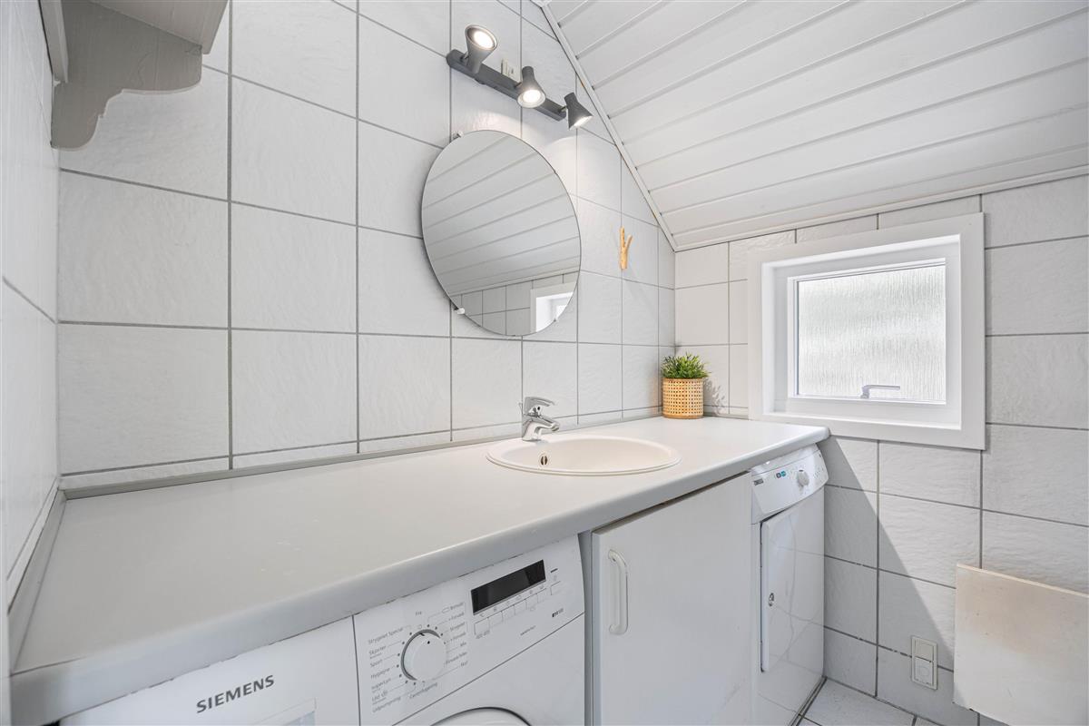 There are two bathrooms, both with shower enclosures and underfloor heating. The smaller bathroom includes a washing machine and tumble dryer. The larger bathroom features a sauna that comfortably accommodates four people.