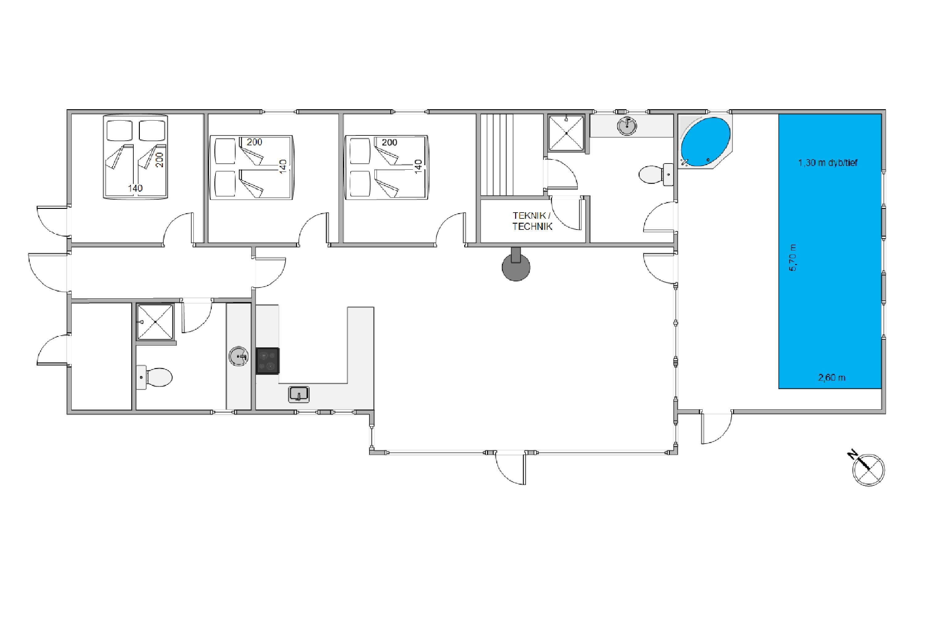 Cosy holiday home in Houvig on Troldedalen 21, just 250 metres from the North Sea and 1.5 km from Søndervig. This pool house features a swimming pool, sauna and whirlpool, plus a south-facing terrace sheltered by the dunes. Up to two dogs are welcome in this holiday home.