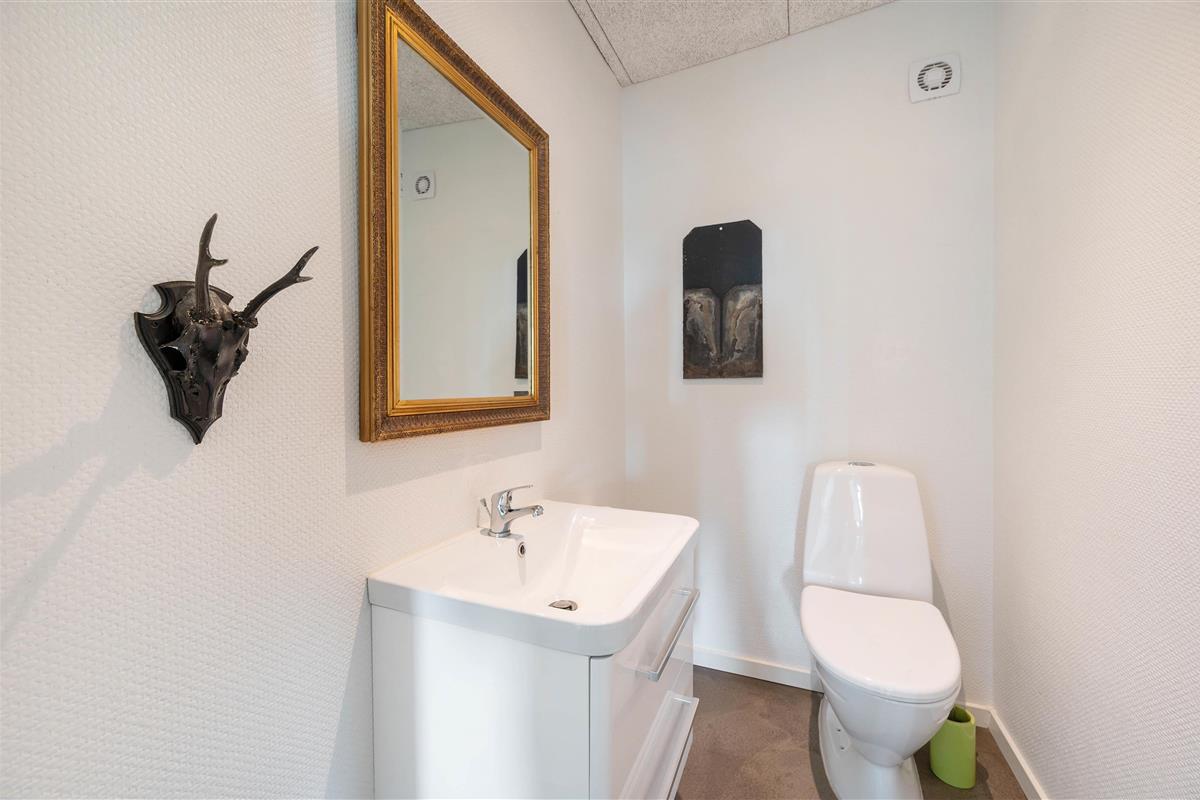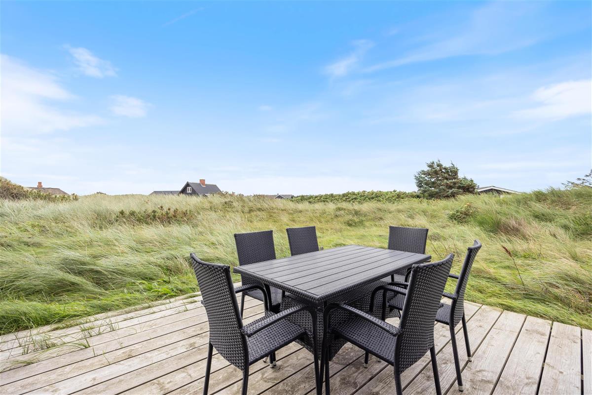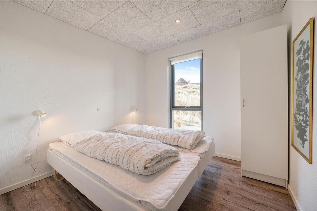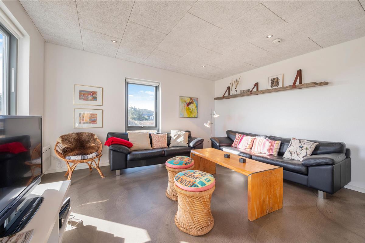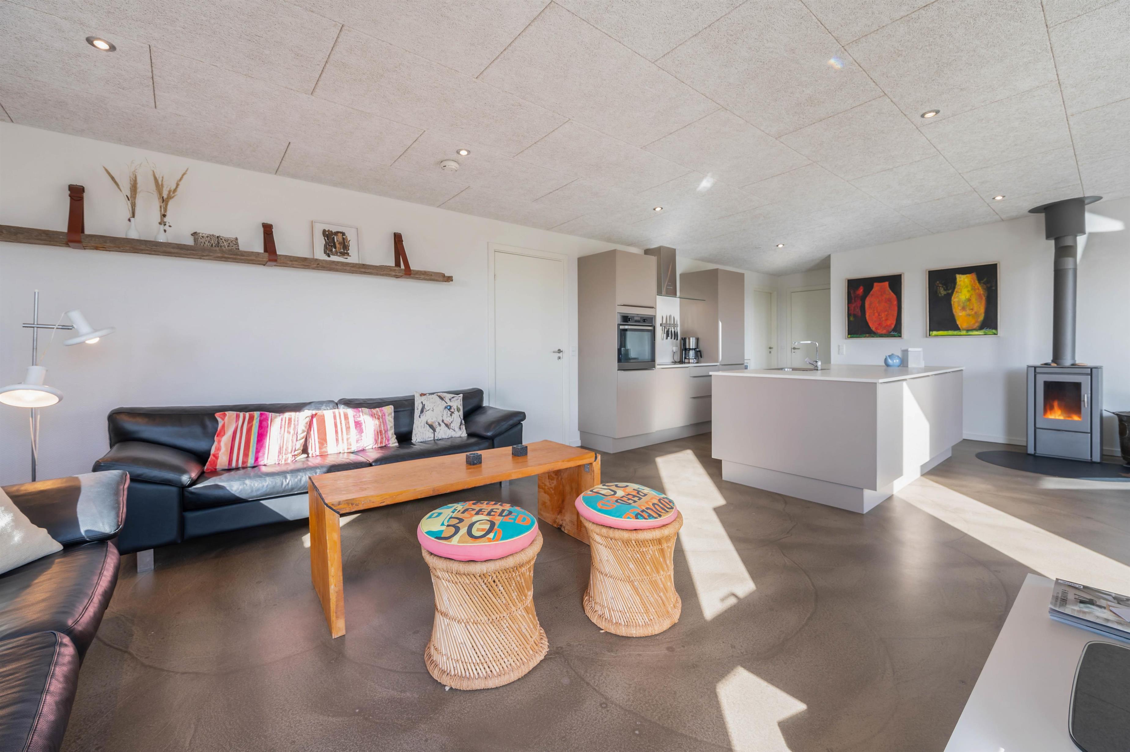Upon entering this Houvig holiday home, you'll be greeted by bright and welcoming décor. There's a clear design theme running throughout the holiday home. The furnishings feature sophisticated black and white tones, complemented by personal touches that create a cosy and comfortable atmosphere. While there's no traditional wood panelling, the holiday home ambiance remains perfectly intact - it's simply a modern, updated interpretation.