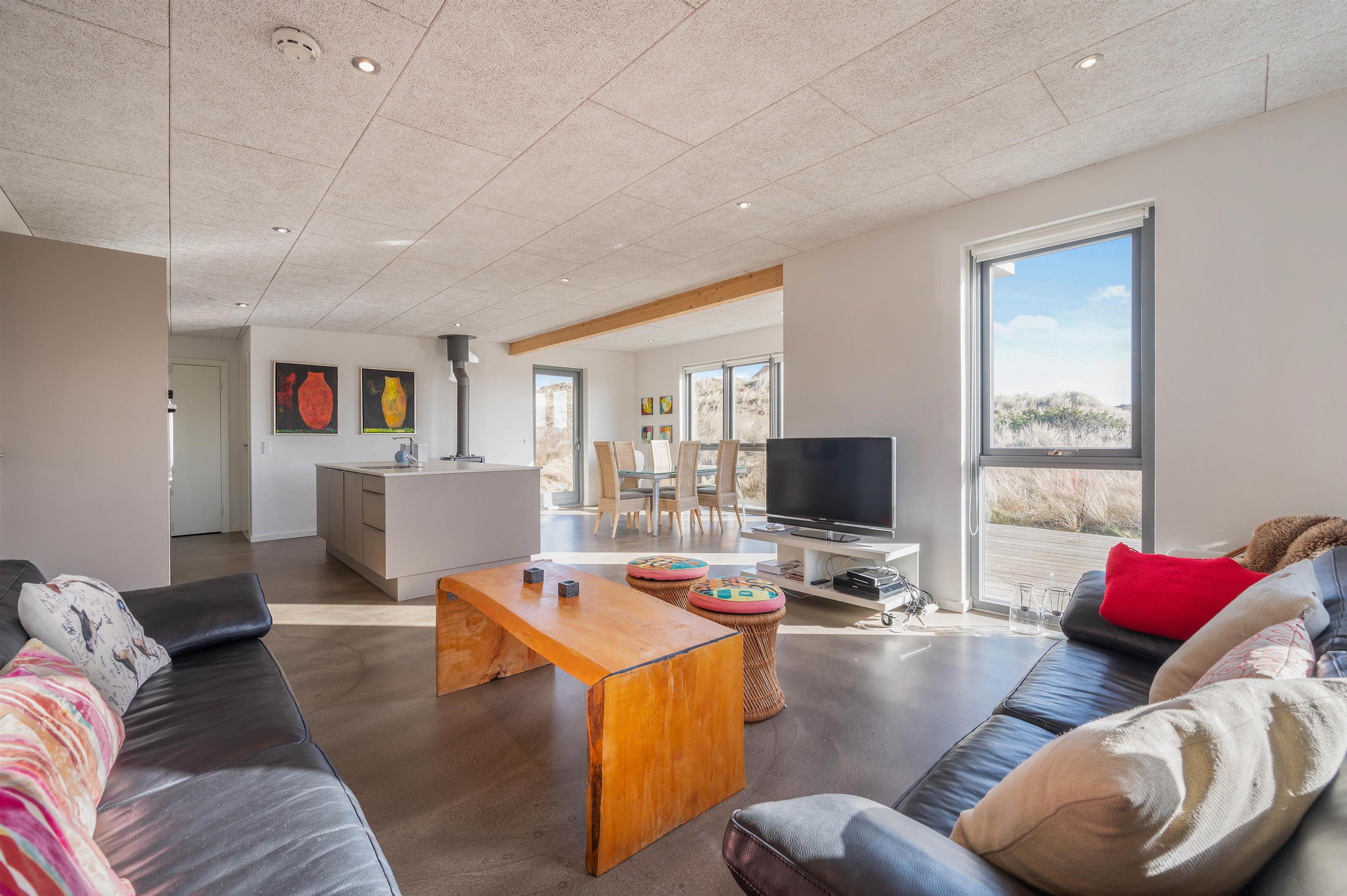 The location of this holiday home is quite unique. Situated in a quiet cul-de-sac, slightly set back from the road, it's just a short walk through the dunes to the North Sea, which beckons invitingly in the background.