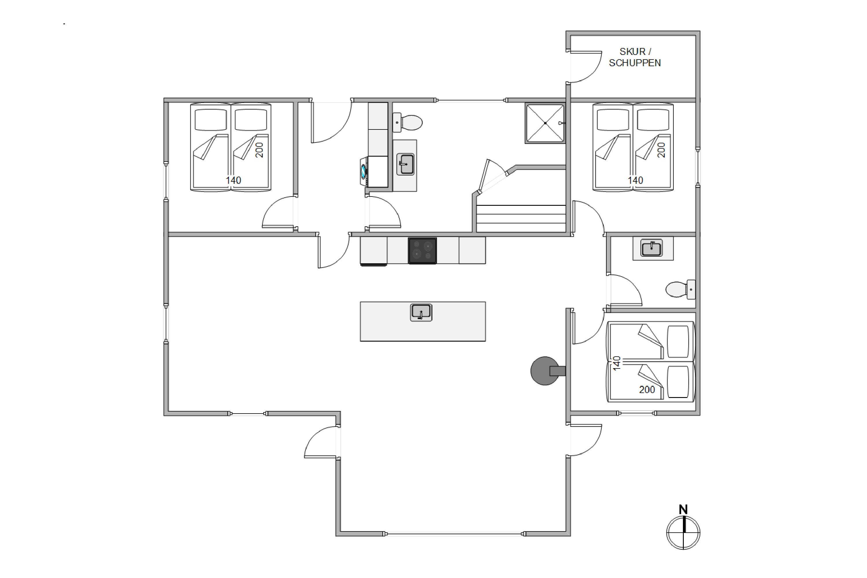 The holiday home features 3 bedrooms, each furnished with comfortable double beds. There are two toilets, one with a shower room that also houses the holiday home's beautiful sauna. Here you can unwind and enjoy the soothing warmth after a trip to the North Sea. The holiday home is equipped with an air-to-water heat pump, which efficiently powers the underfloor heating throughout.