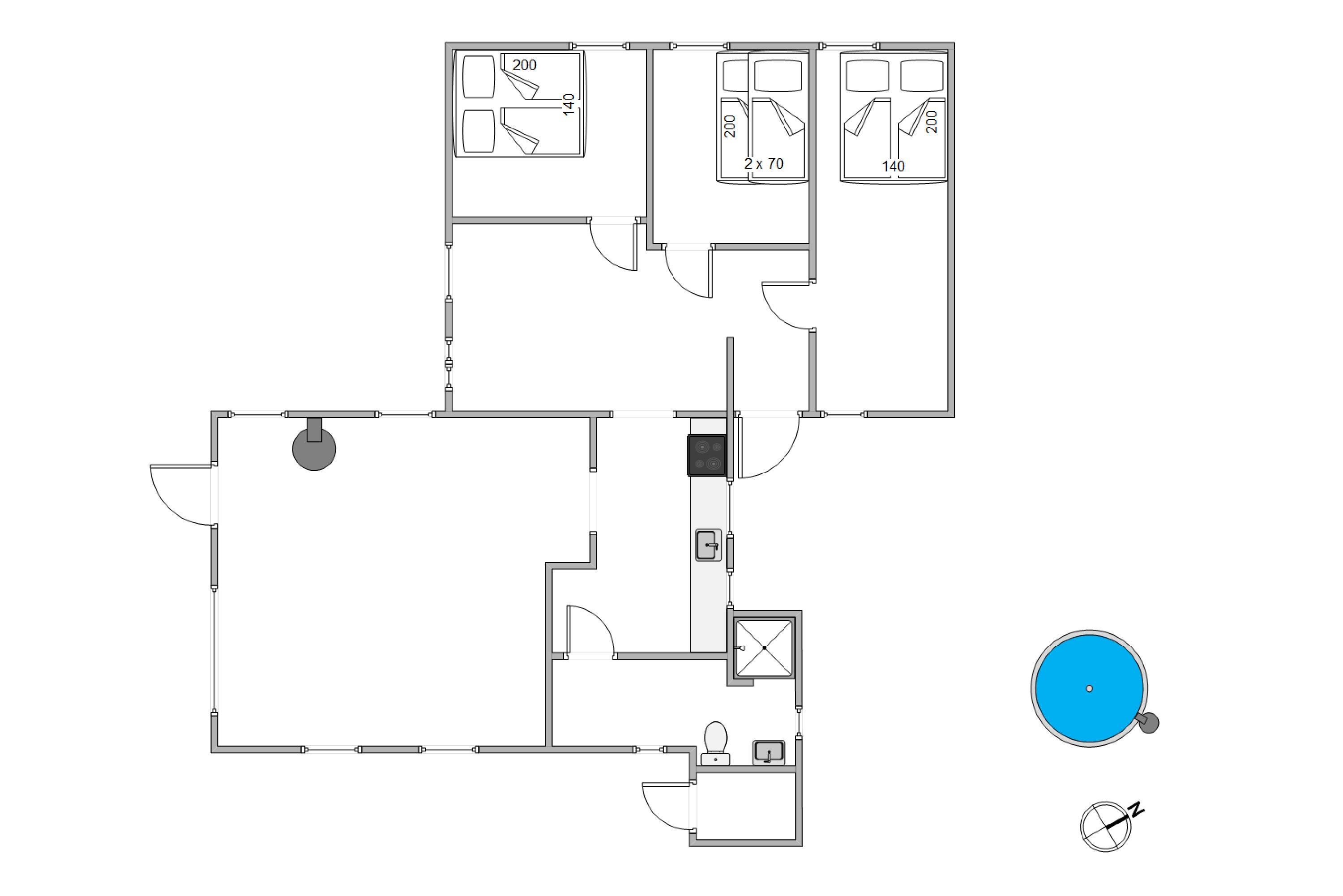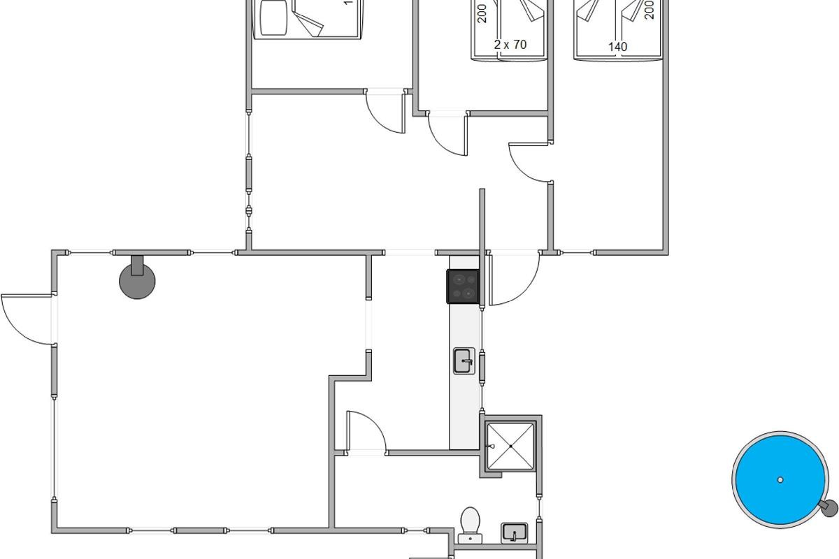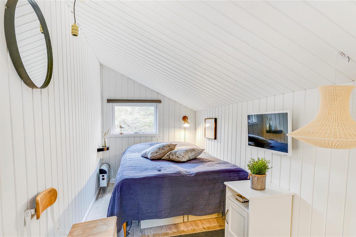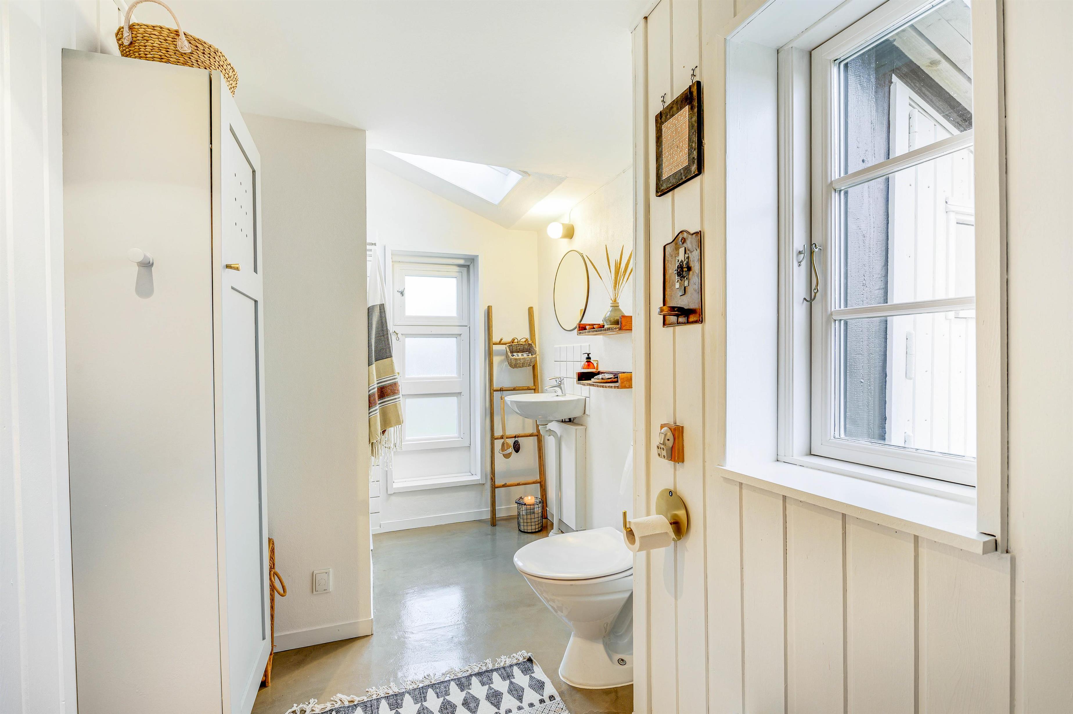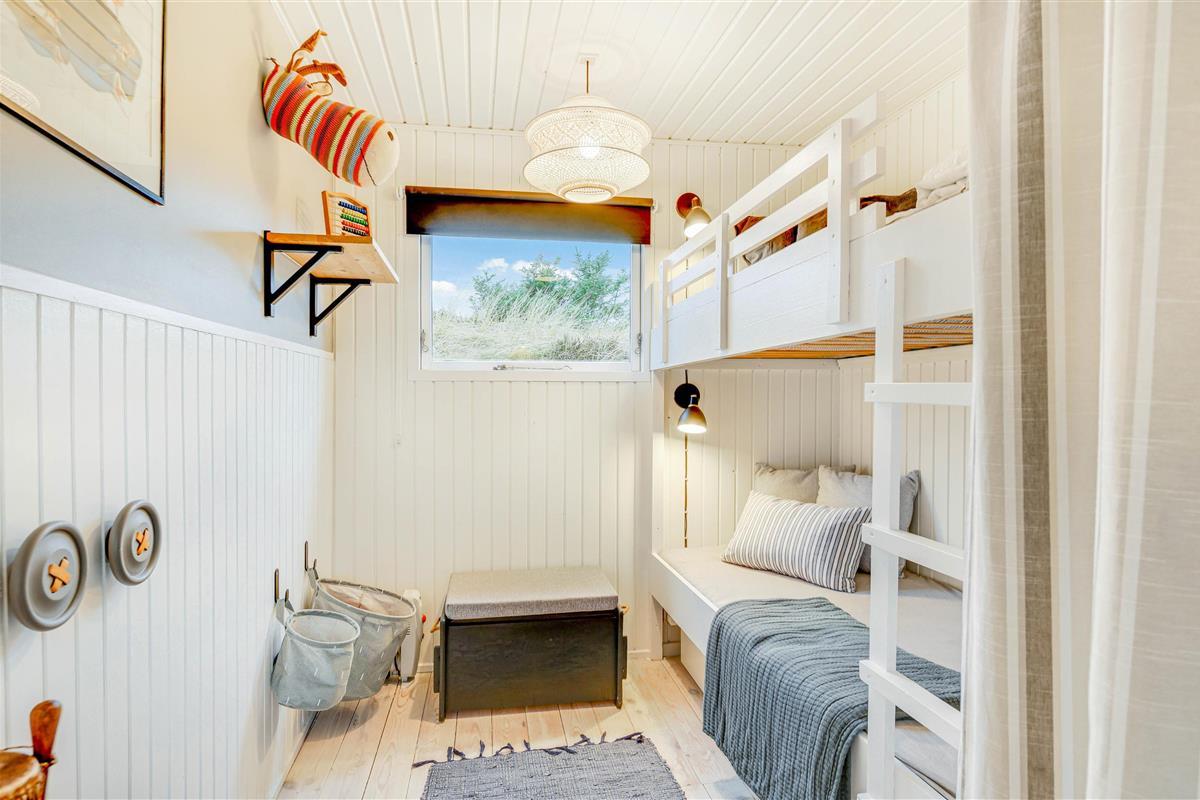 The summer house has been furnished in classic Danish style and invites you to spend relaxing hours in front of the wood-burning stove. As an alternative to the wood burner, there's a heat pump that keeps electricity costs reasonable whilst ensuring a comfortable environment throughout the year. Sleeping arrangements are spread across three bedrooms, with two rooms featuring double beds. The third bedroom has been lovingly prepared as a children's room with bunk beds.