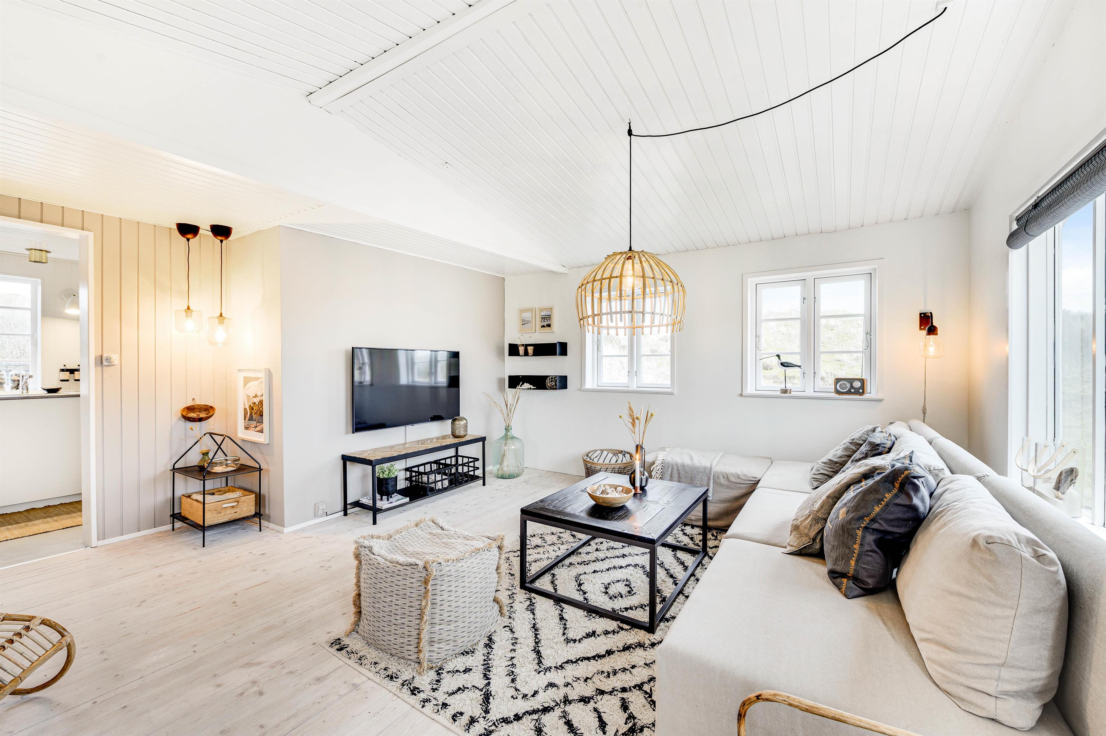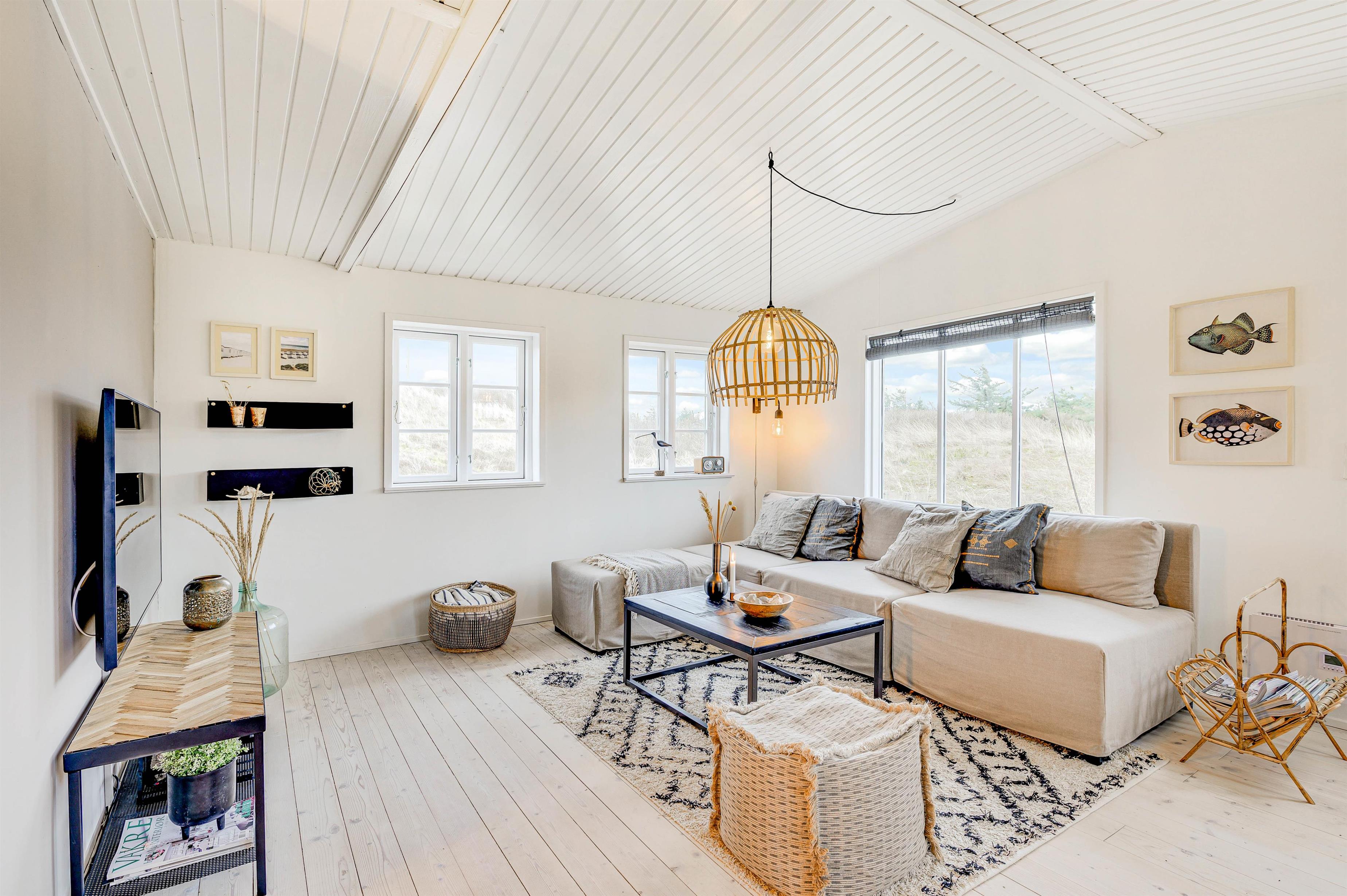 This traditional holiday home at Lærkedalen 26 creates an immediate holiday atmosphere upon entering. Thoughtful details and bright furnishings make the house cosy and provide ample space for a small family to enjoy a relaxing holiday, with your dog also warmly welcome. The separate kitchen is ready for preparing delicious meals. After washing up together, you can settle down comfortably in the living room sofa.