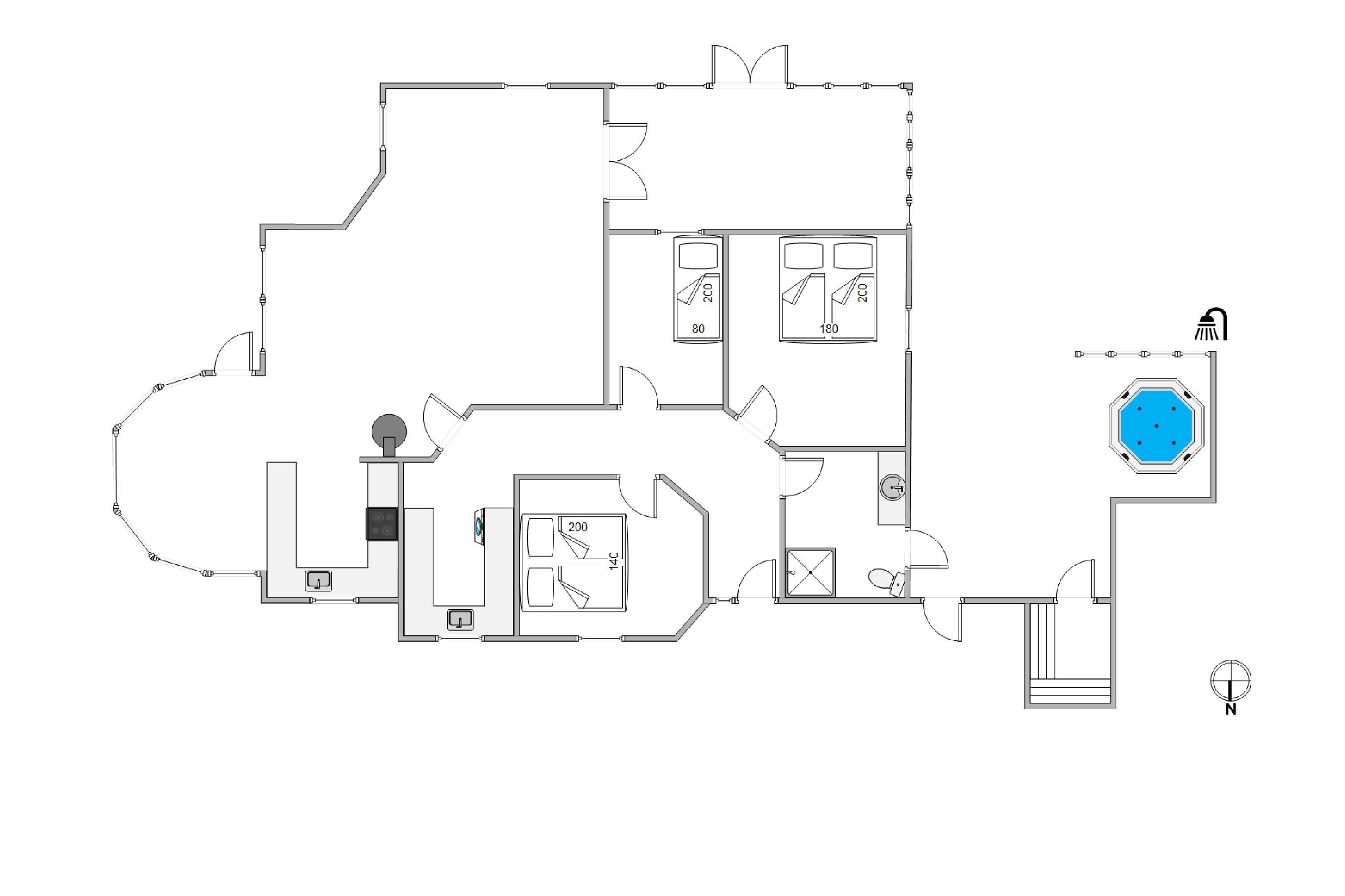 The heart of the holiday home is the large kitchen area, which combines the living room, dining area and kitchen into one space. Here you can gather while cooking, enjoying breathtaking views over the golf landscape. The kitchen is well-equipped with a fridge, dishwasher and microwave, plus a 150-litre freezer in the house.
