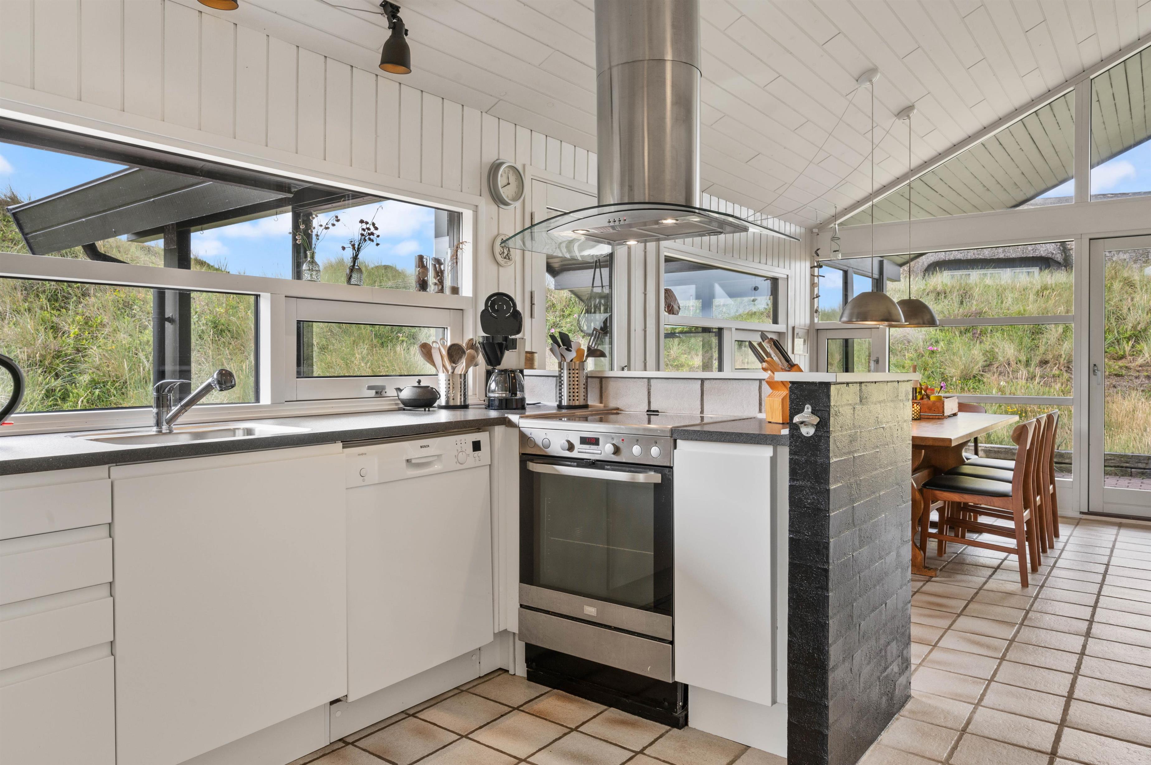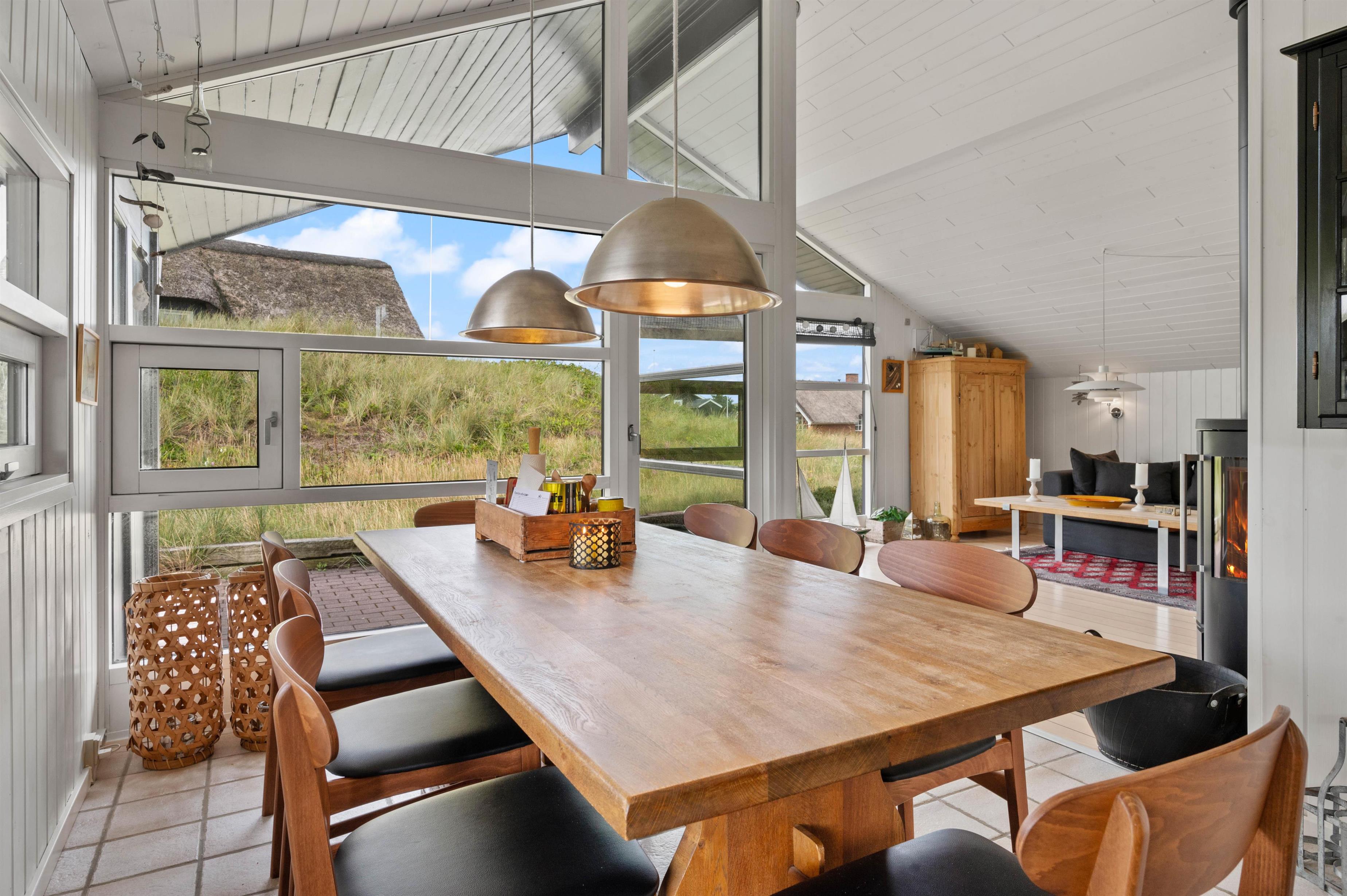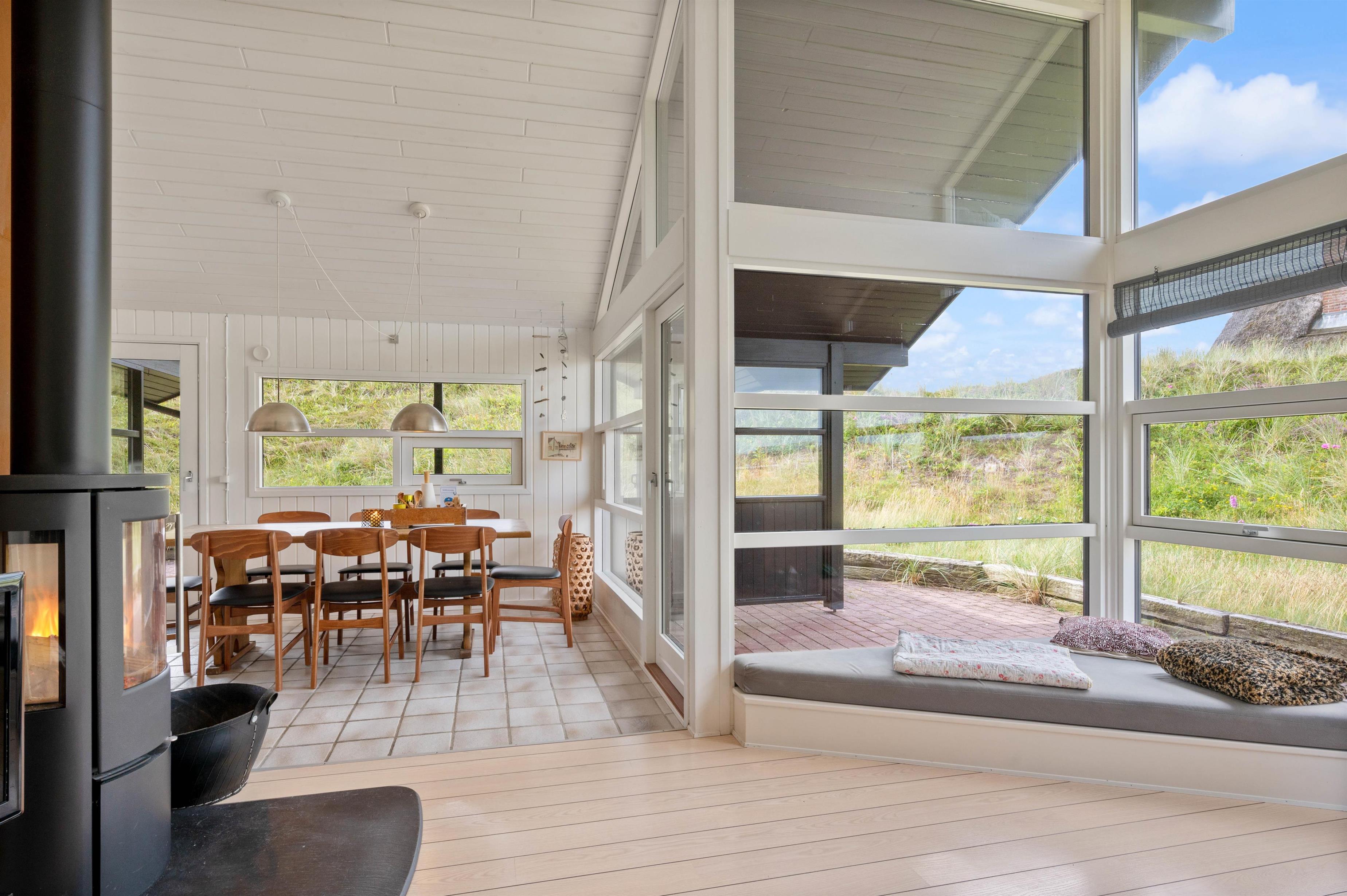 Why not start your holiday by settling into the living room corner and listening to the crackling of the wood-burning stove? The sofa spot is perhaps the best place in the entire holiday home. The large windows serve up beautiful views of the landscape, almost as if nature has been invited directly into your home.