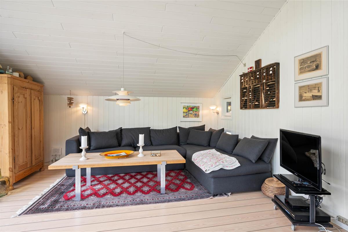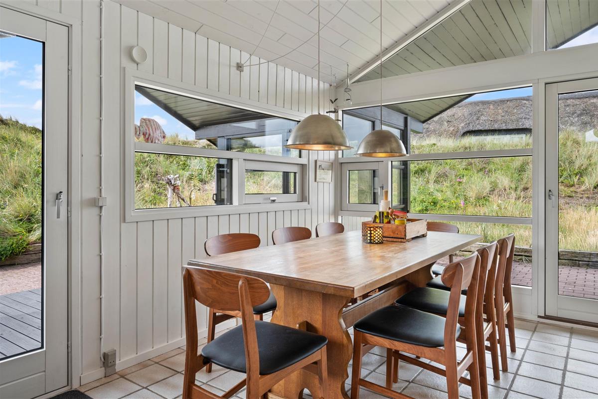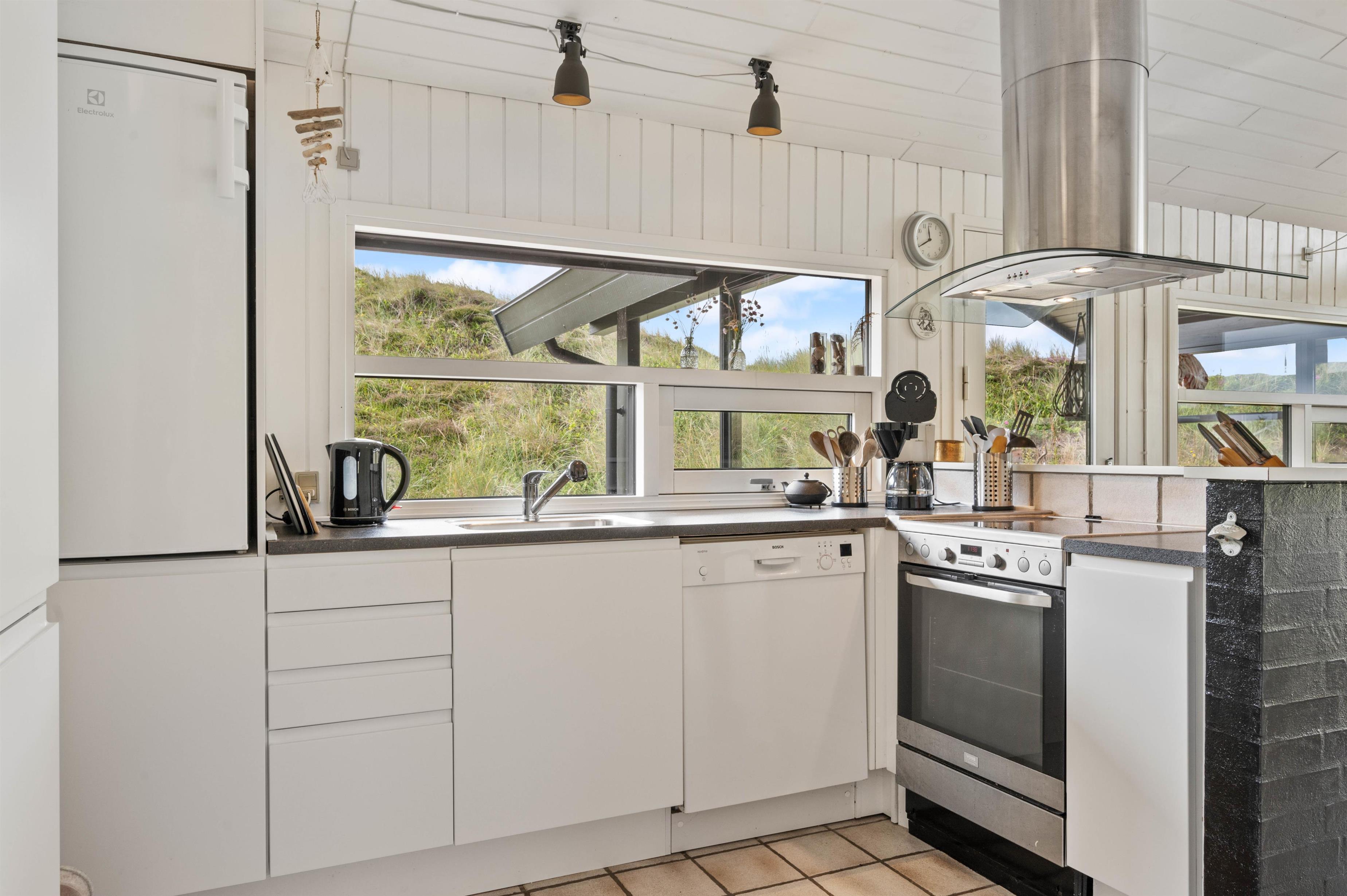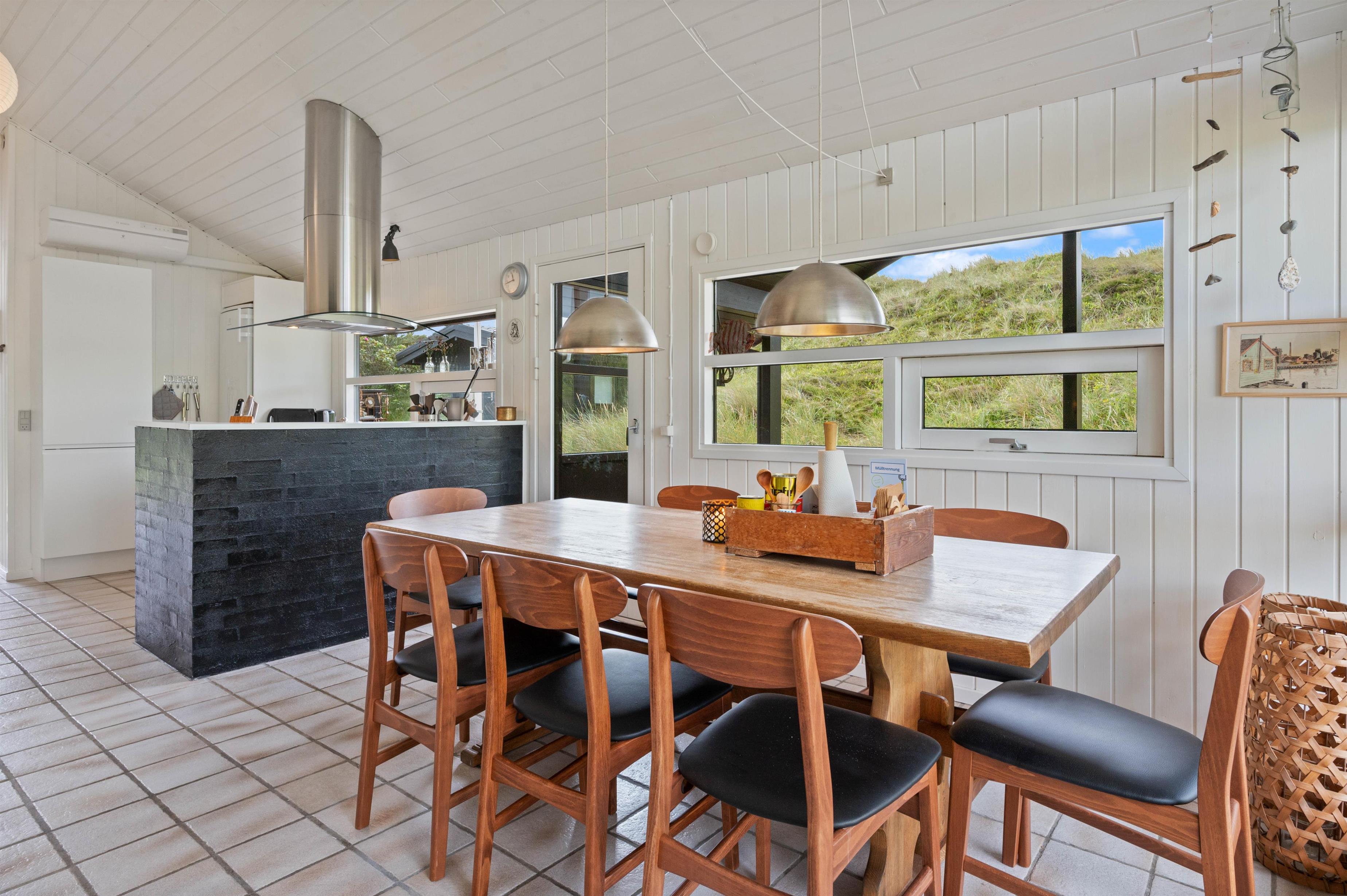 Why not start your holiday by settling into the living room corner and listening to the crackling of the wood-burning stove? The sofa spot is perhaps the best place in the entire holiday home. The large windows serve up beautiful views of the landscape, almost as if nature has been invited directly into your home.