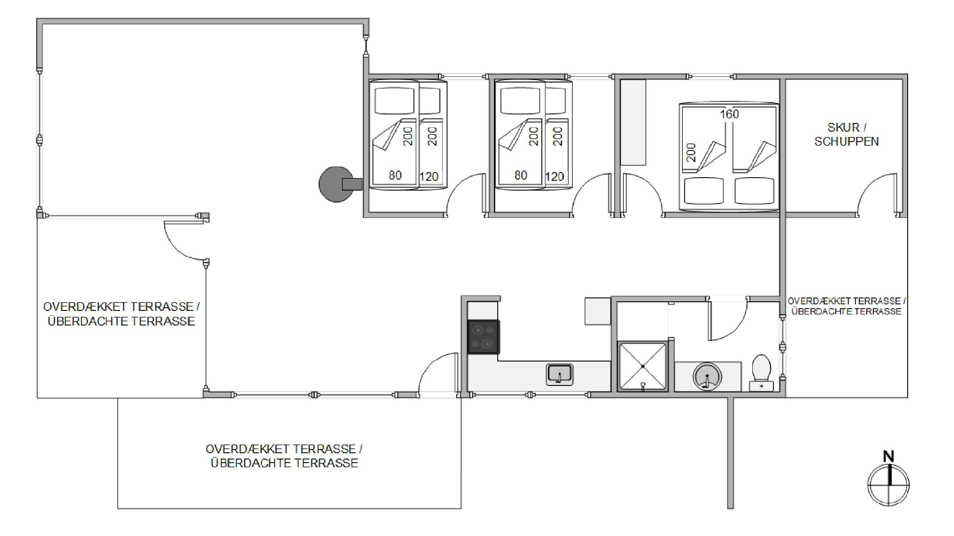 From the dining room, you have direct access to the welcoming, partially covered terrace where you can enjoy sunny days in a lounger or fire up the barbecue for a delicious dinner. There's even a small covered and sheltered morning terrace where you can enjoy freshly brewed coffee and warm breakfast bread. Shopping facilities are just 1.2 miles (2,000 metres) away, allowing you to stock up on fresh provisions throughout your stay.