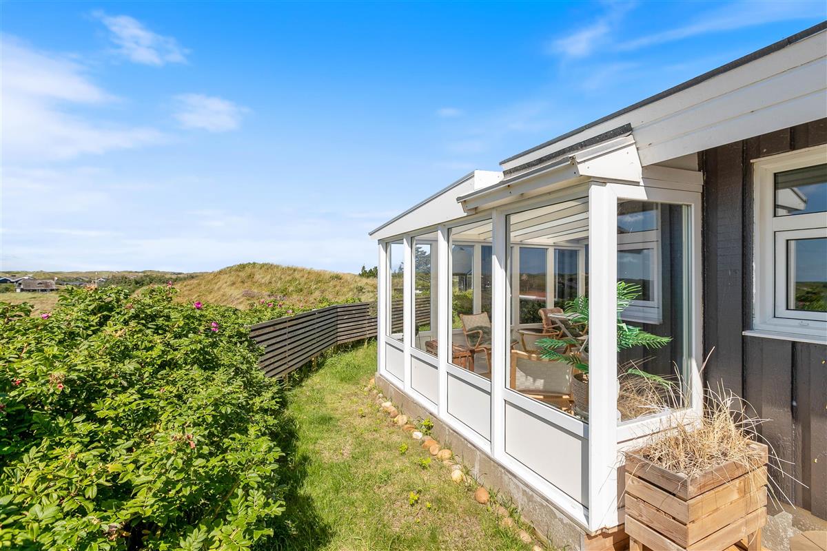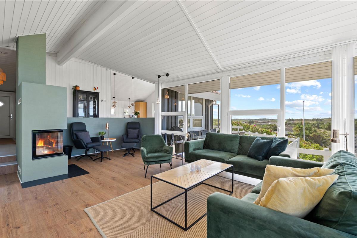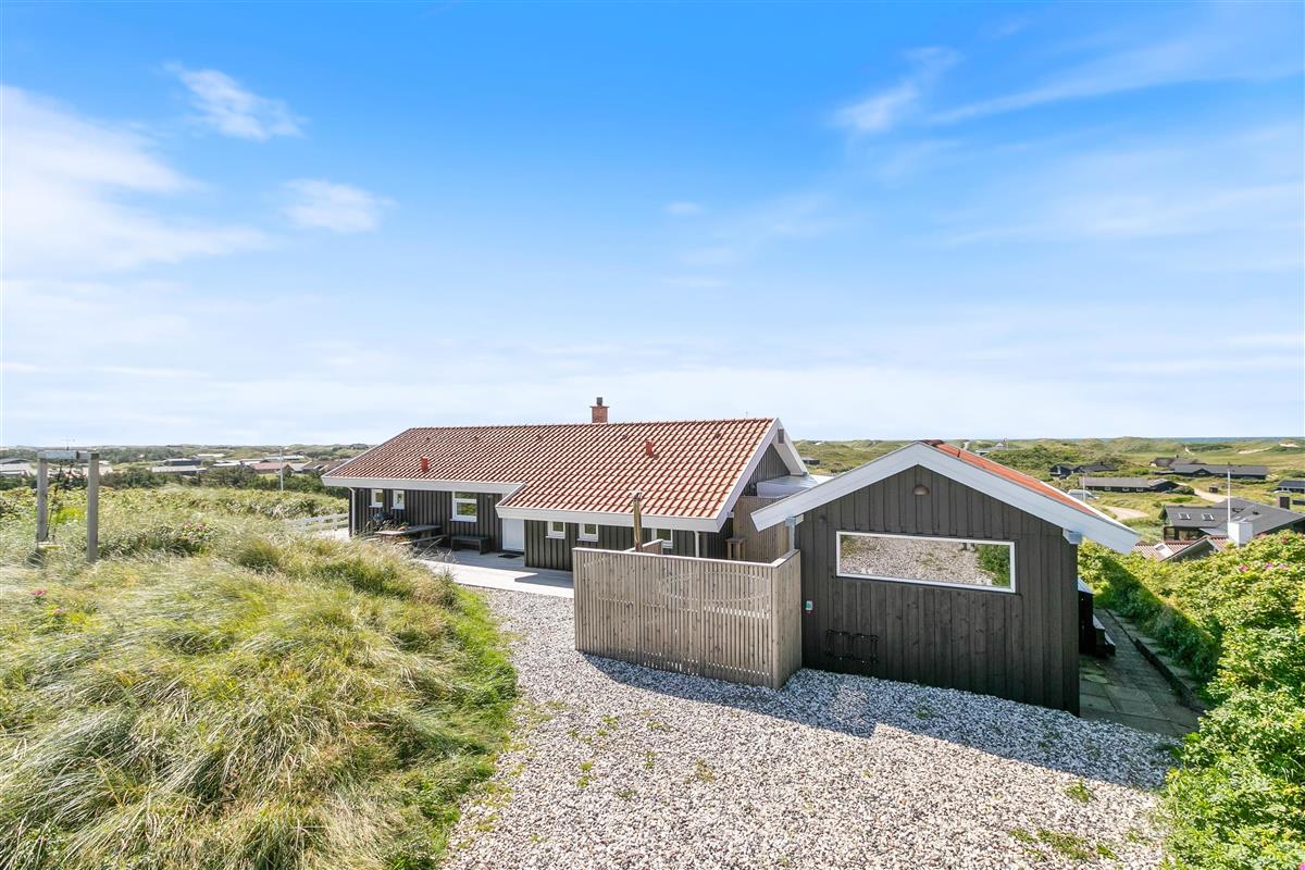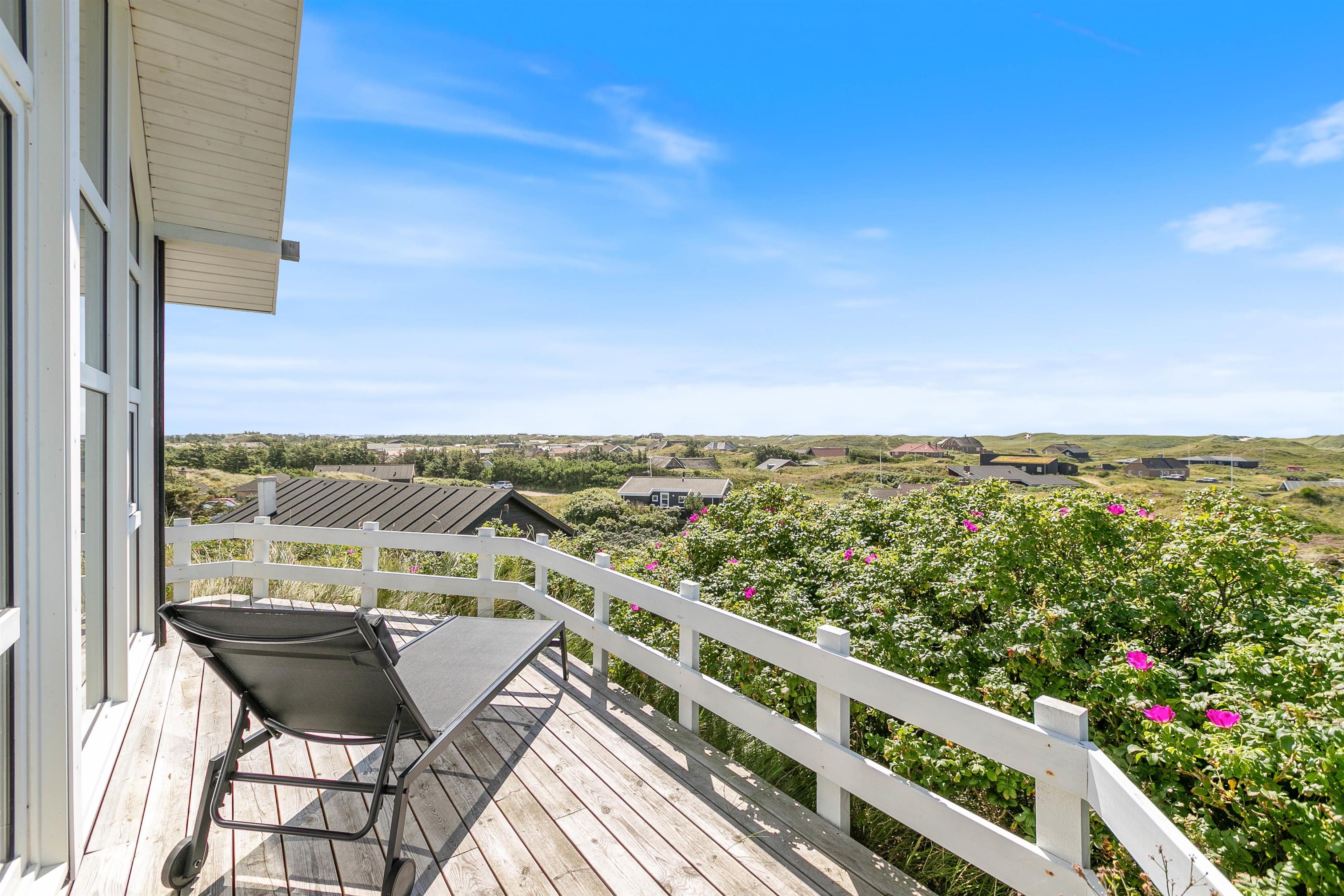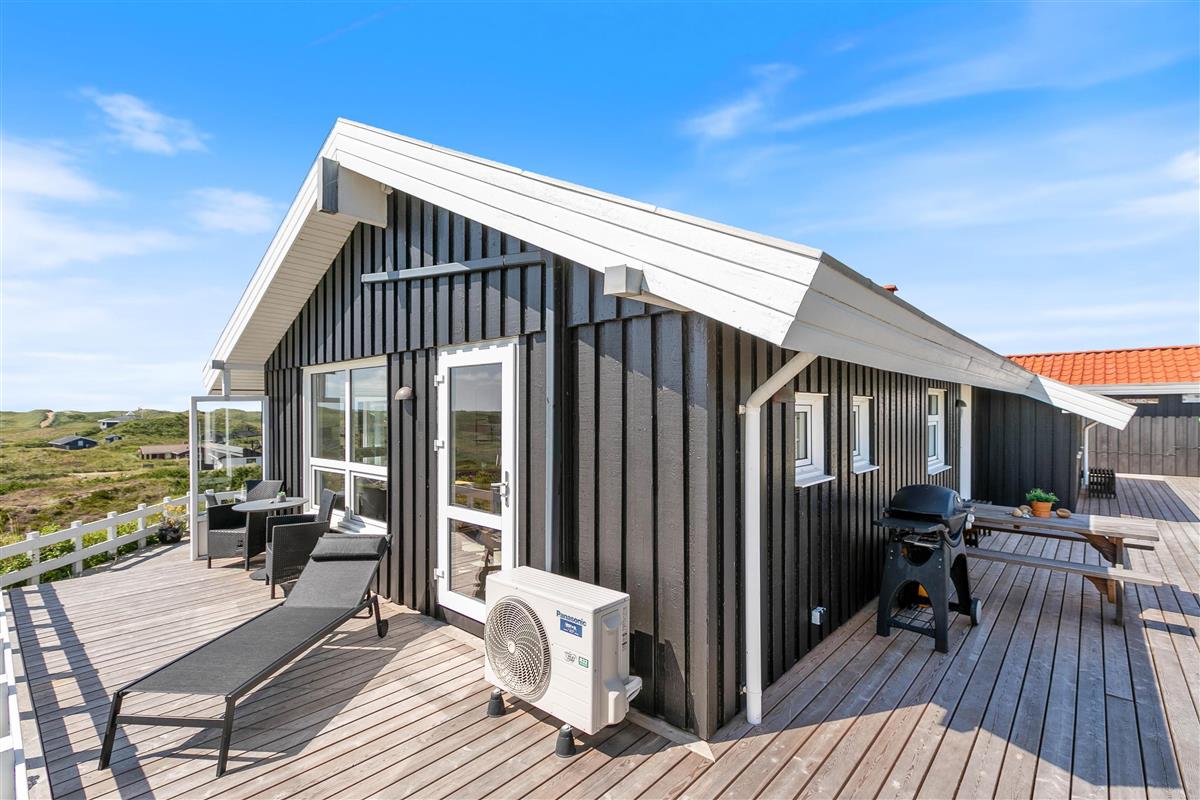 The approach to your holiday home at Klitdalen 25 is impressive in itself. Once at the top, you'll be immediately struck by the spectacular views. The terrace wraps around the house, offering beautiful vistas of Houvig from every angle, including views of the dunes and sea. You'll always find a sheltered spot to enjoy a delicious dinner prepared on the gas barbecue.