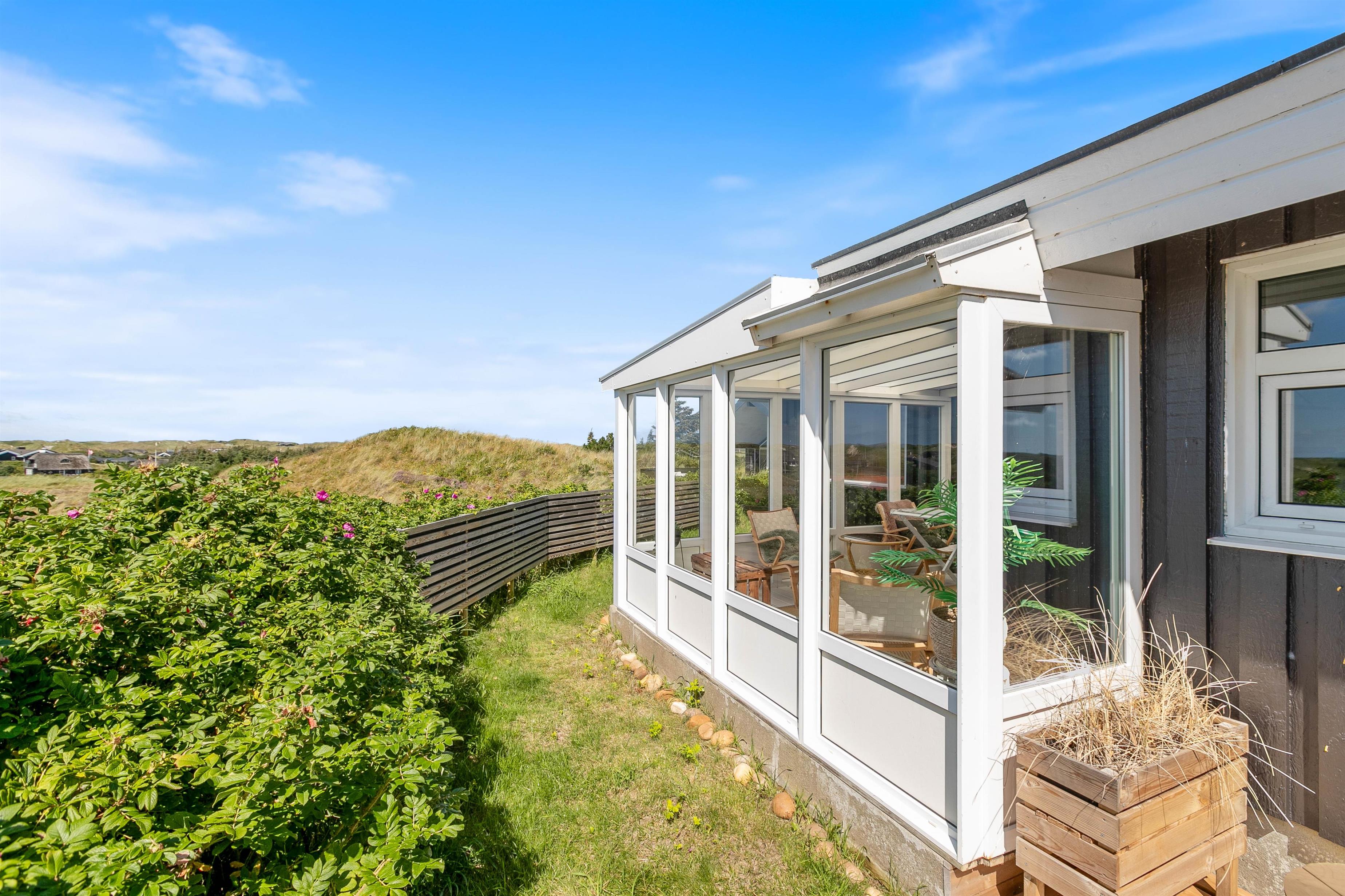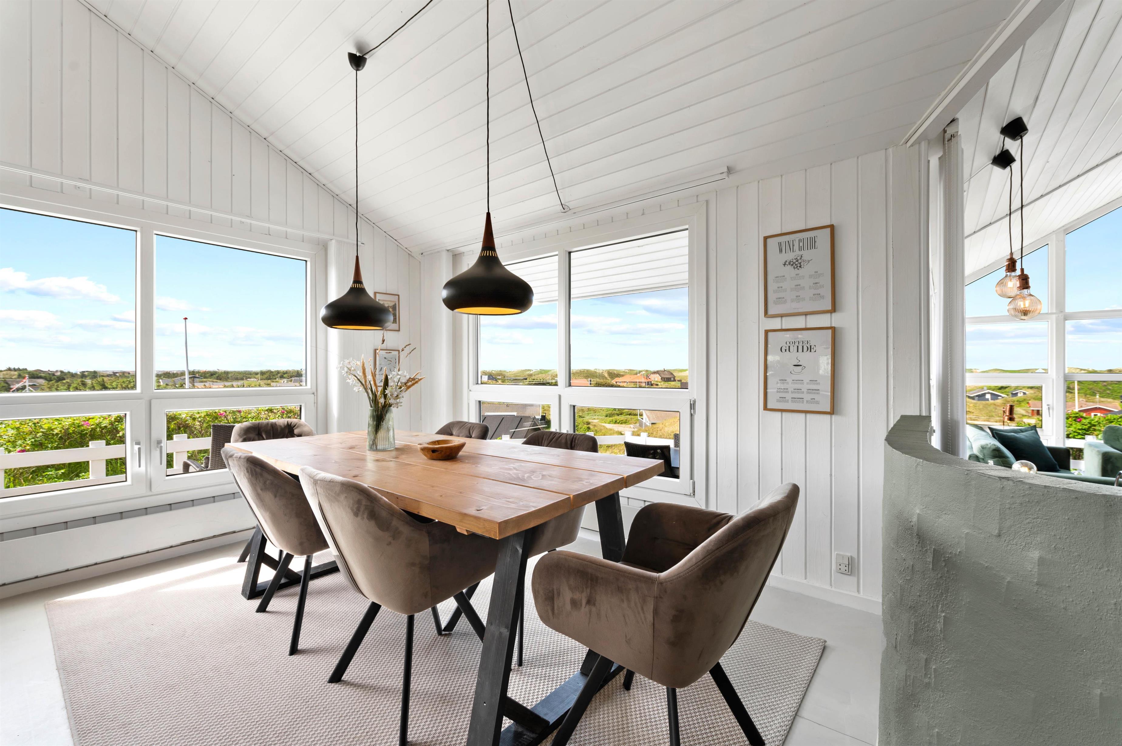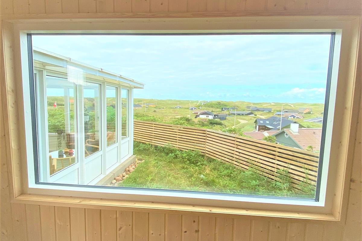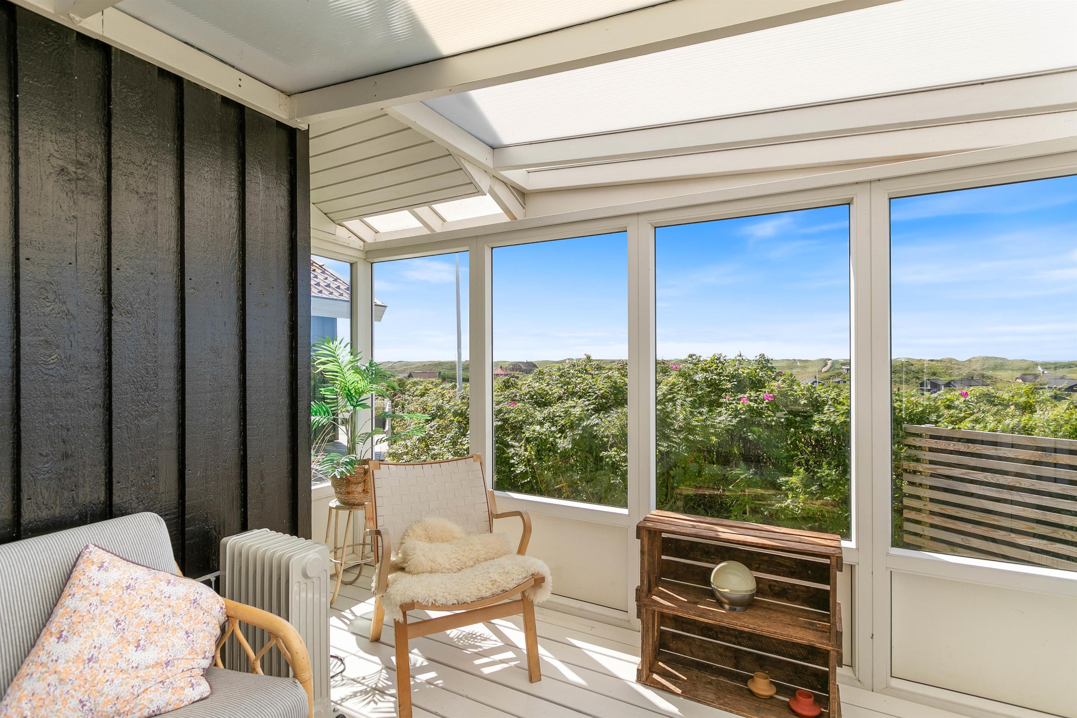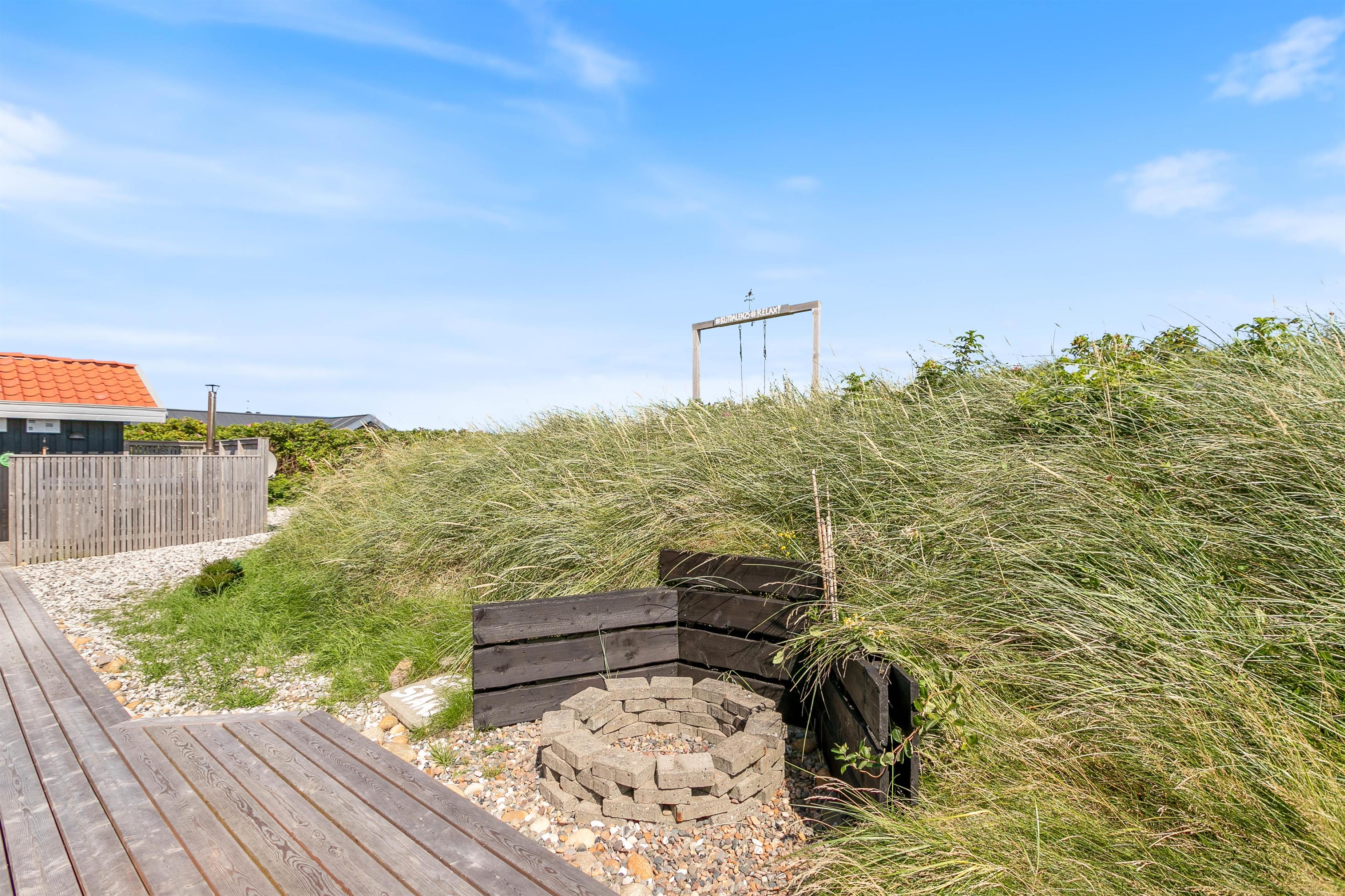 The approach to your holiday home at Klitdalen 25 is impressive in itself. Once at the top, you'll be immediately struck by the spectacular views. The terrace wraps around the house, offering beautiful vistas of Houvig from every angle, including views of the dunes and sea. You'll always find a sheltered spot to enjoy a delicious dinner prepared on the gas barbecue.
