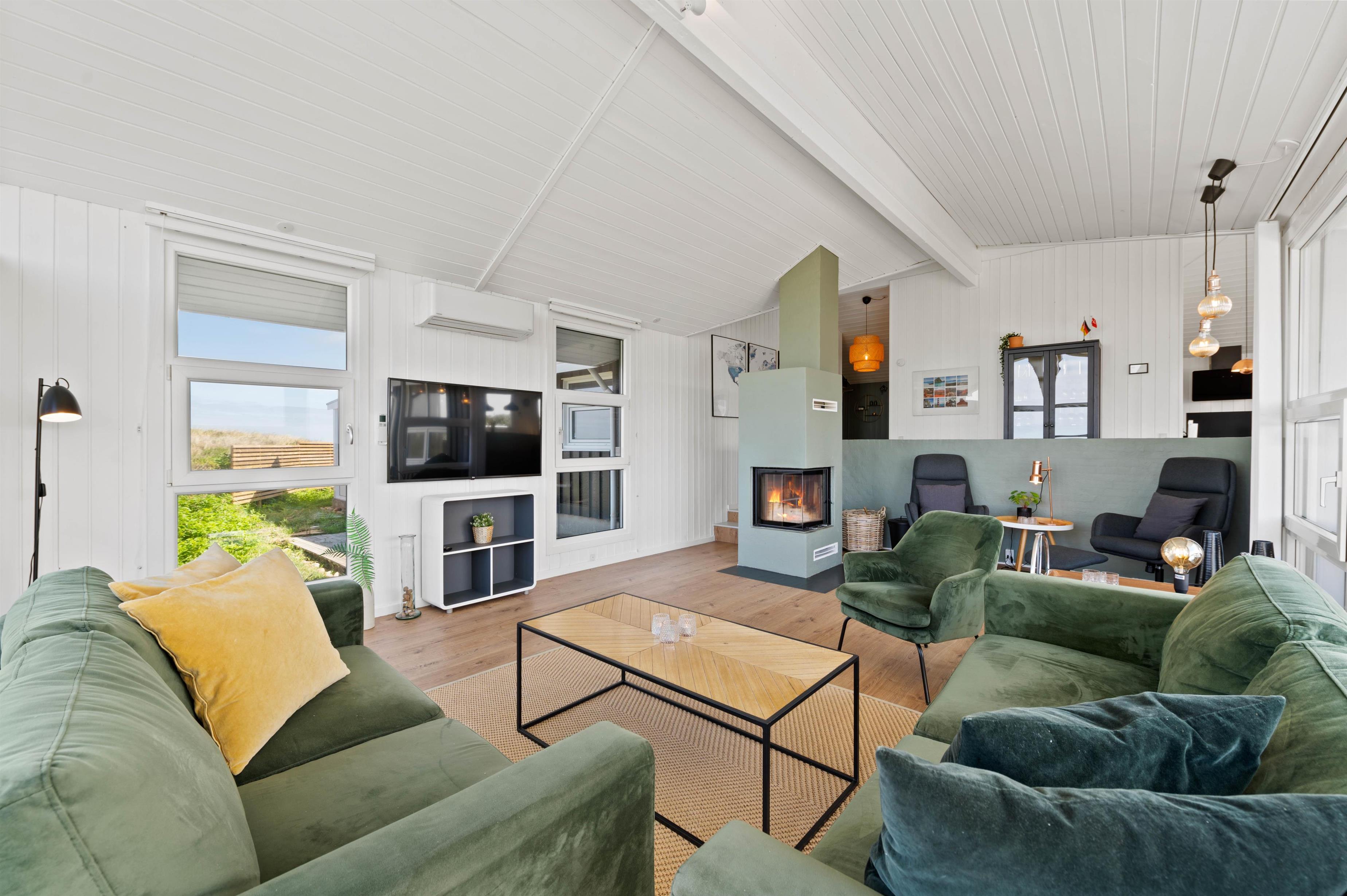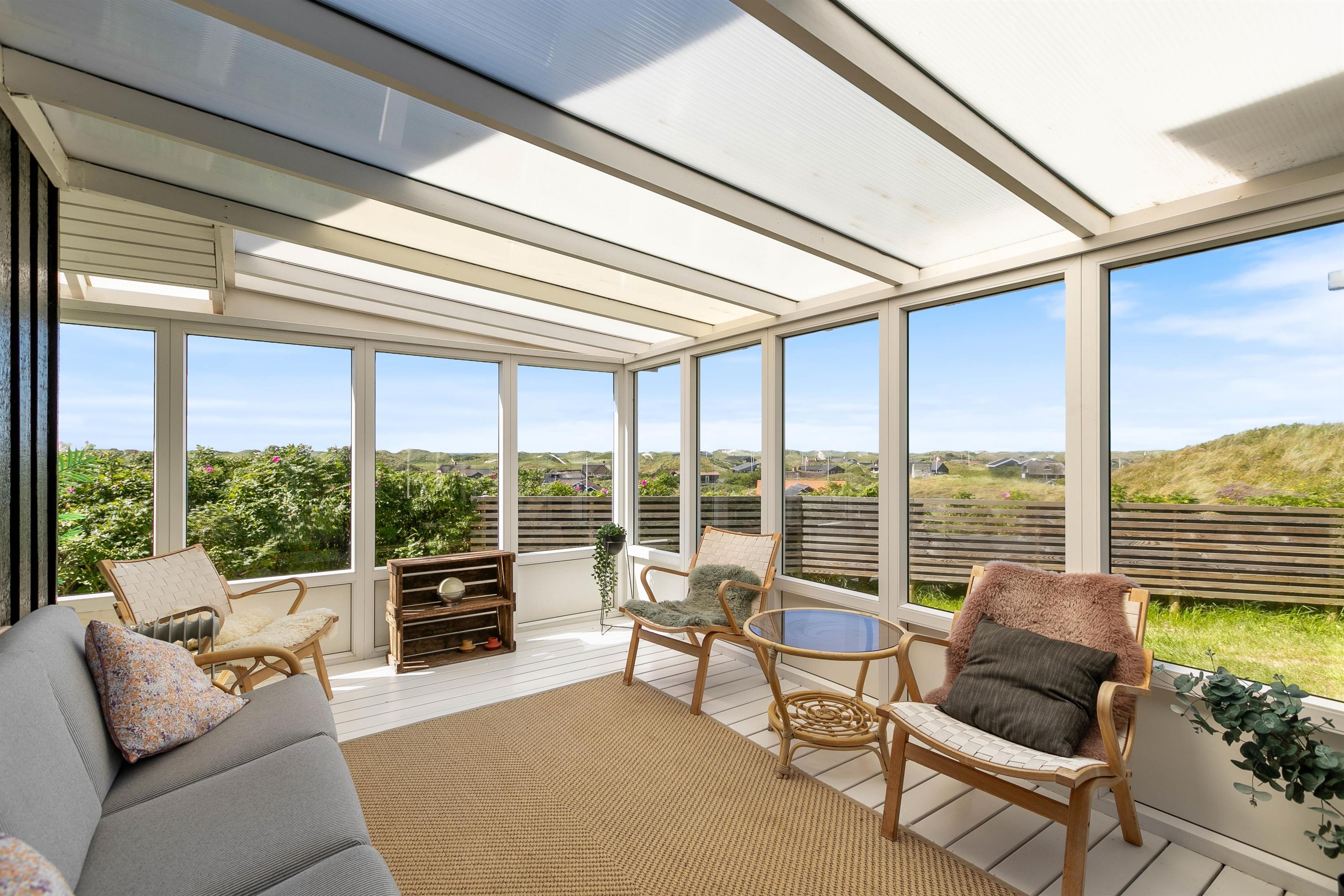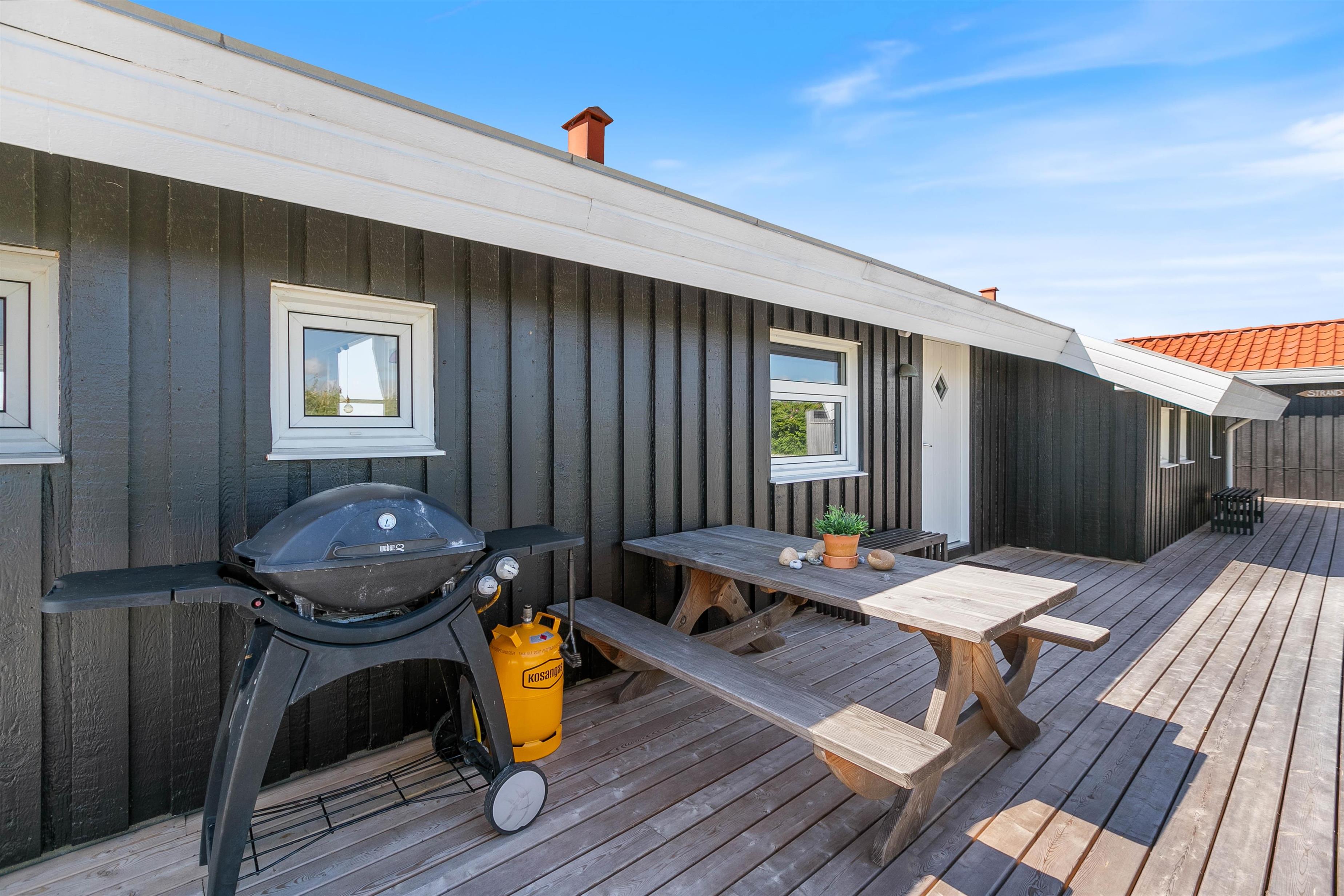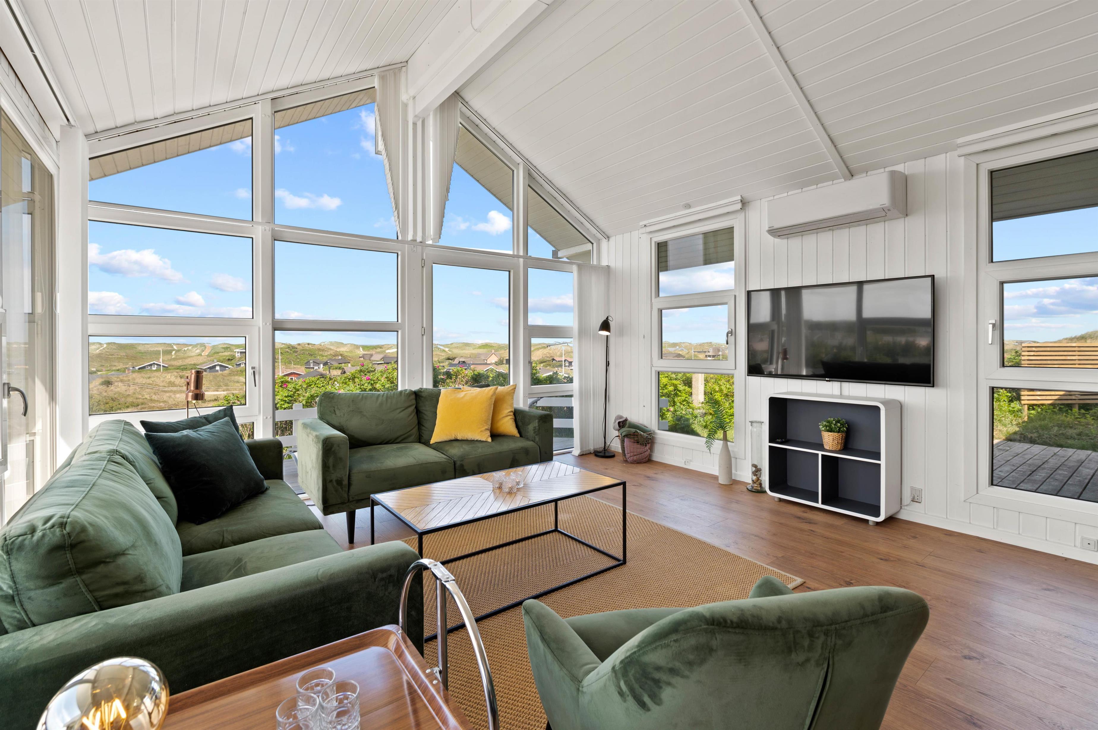 The approach to your holiday home at Klitdalen 25 is impressive in itself. Once at the top, you'll be immediately struck by the spectacular views. The terrace wraps around the house, offering beautiful vistas of Houvig from every angle, including views of the dunes and sea. You'll always find a sheltered spot to enjoy a delicious dinner prepared on the gas barbecue.