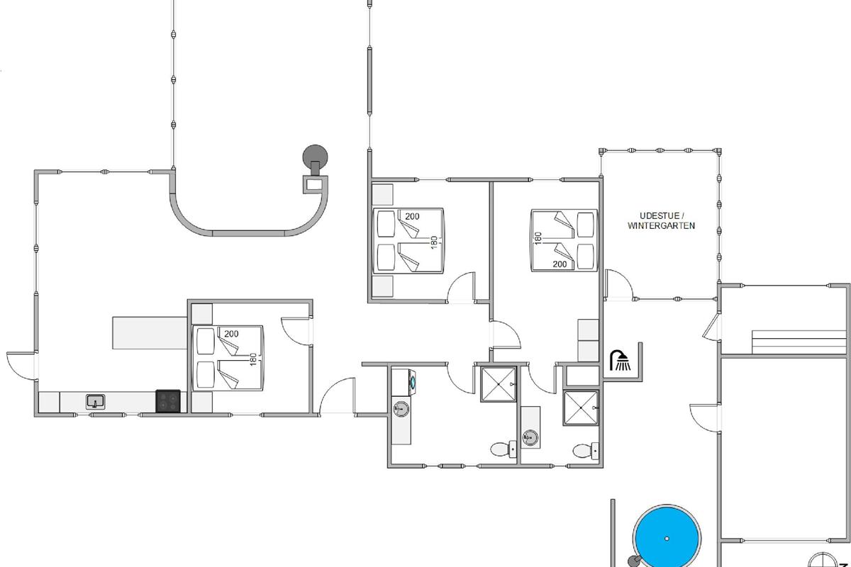 On cooler days, the conservatory provides a cosy retreat where you can relax with a good cup of coffee and an engaging book. As a special feature, the holiday home offers an outdoor sauna, hot tub, and outdoor shower, all privately positioned away from view, allowing you to fully enjoy your wellness retreat. The outdoor shower is available from April to November.