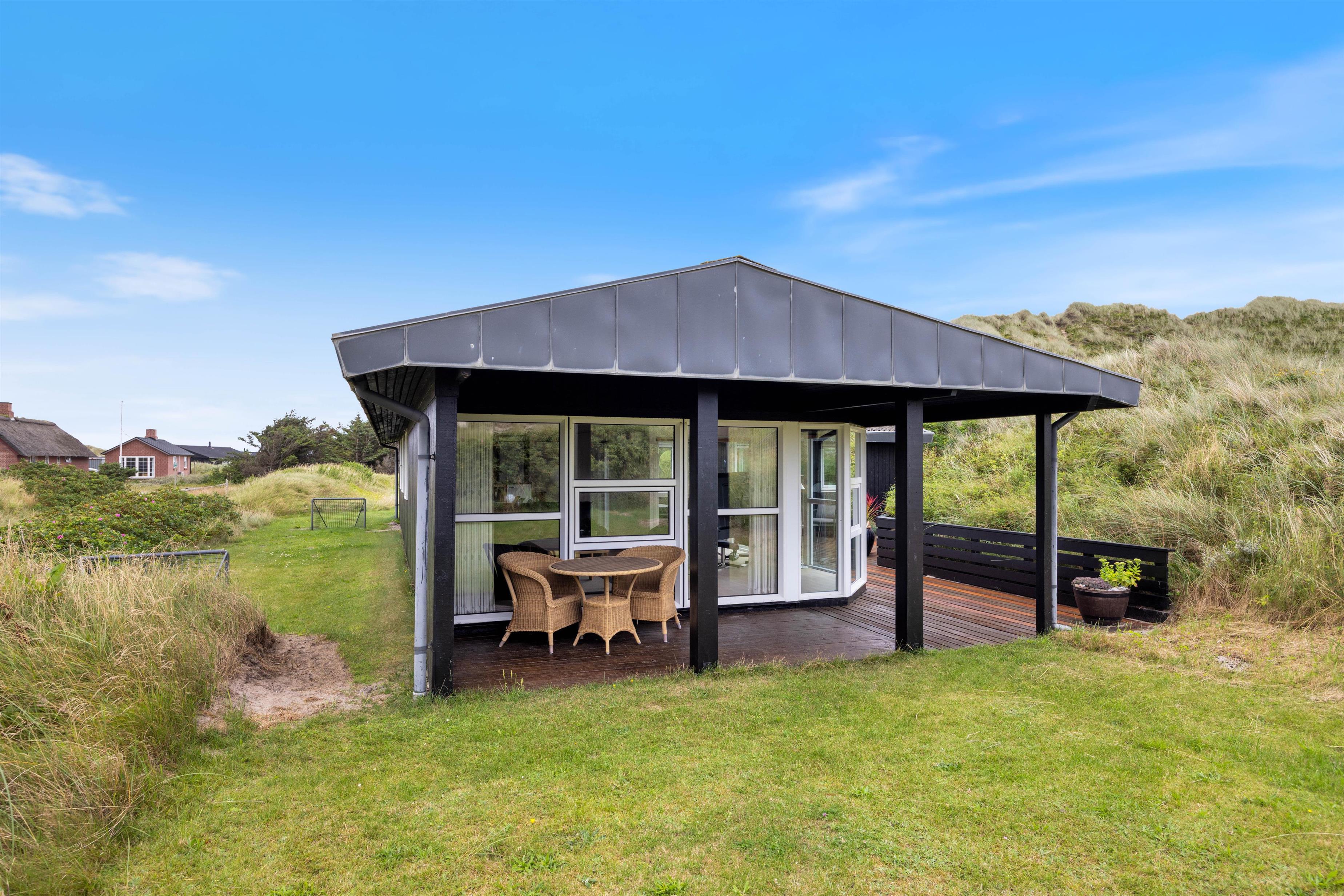 Die überdachte Terrasse mit gemütlichen Gartenmöbeln lädt zu geselligen Grillabenden ein. Lasst euch vom Panoramablick verzaubern, während ihr die Ruhe und Schönheit eines typischen Dünengrundstücks genießt. Die Landschaft rund um das Ferienhaus bietet unvergleichliche Möglichkeiten für ausgiebige Spaziergänge und Erkundungen. Hier könnt ihr durchatmen und die Seele baumeln lassen.