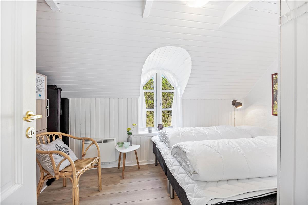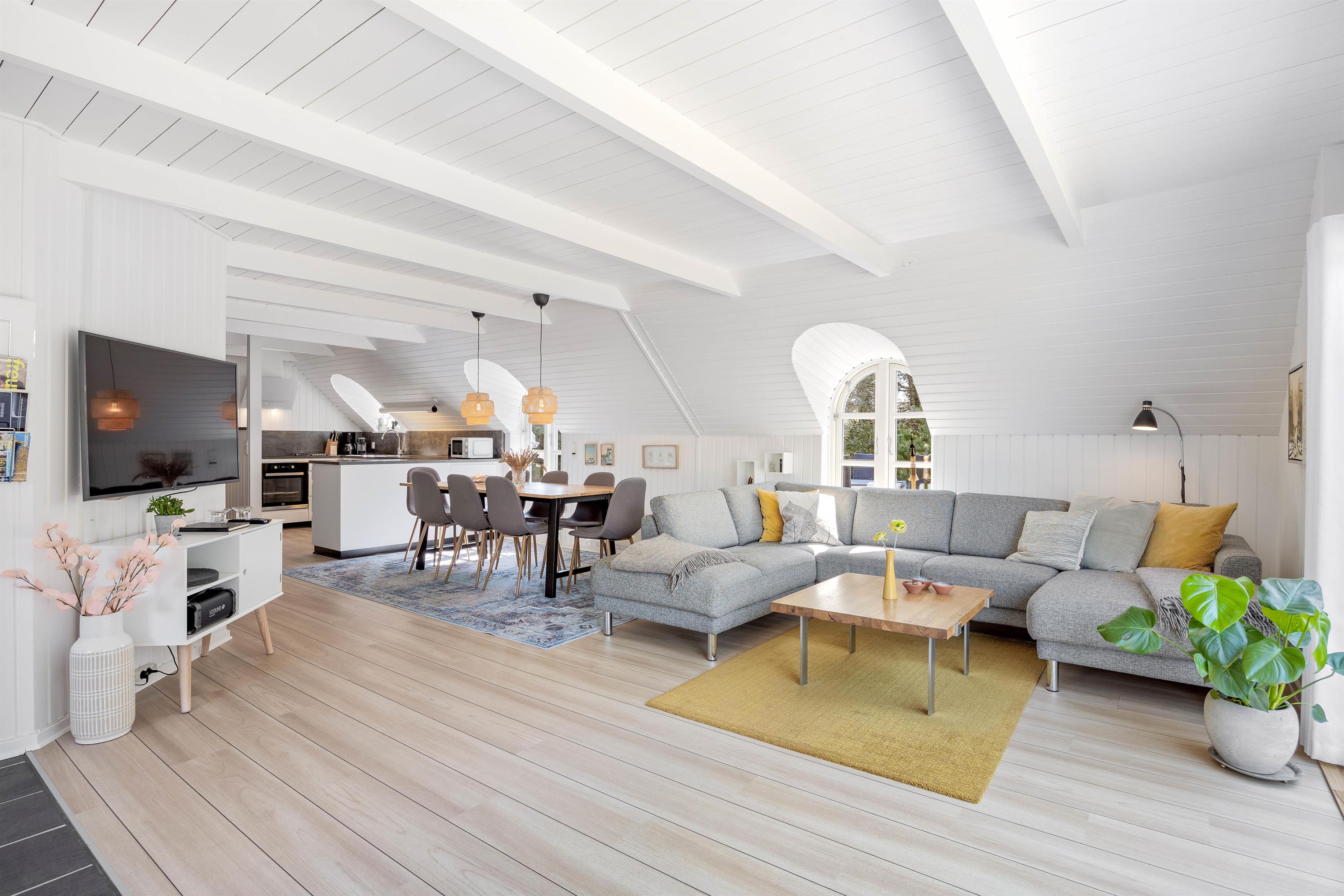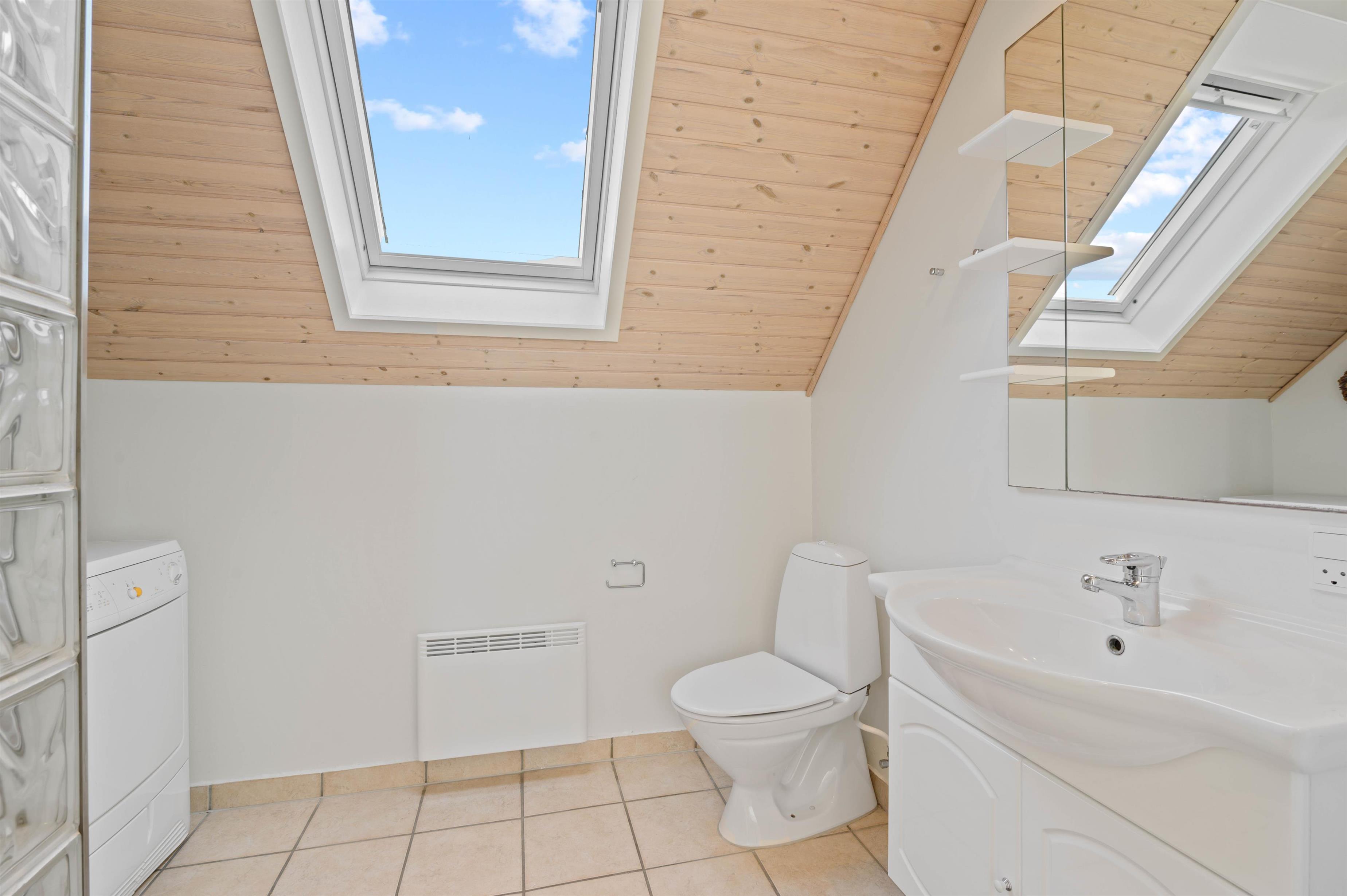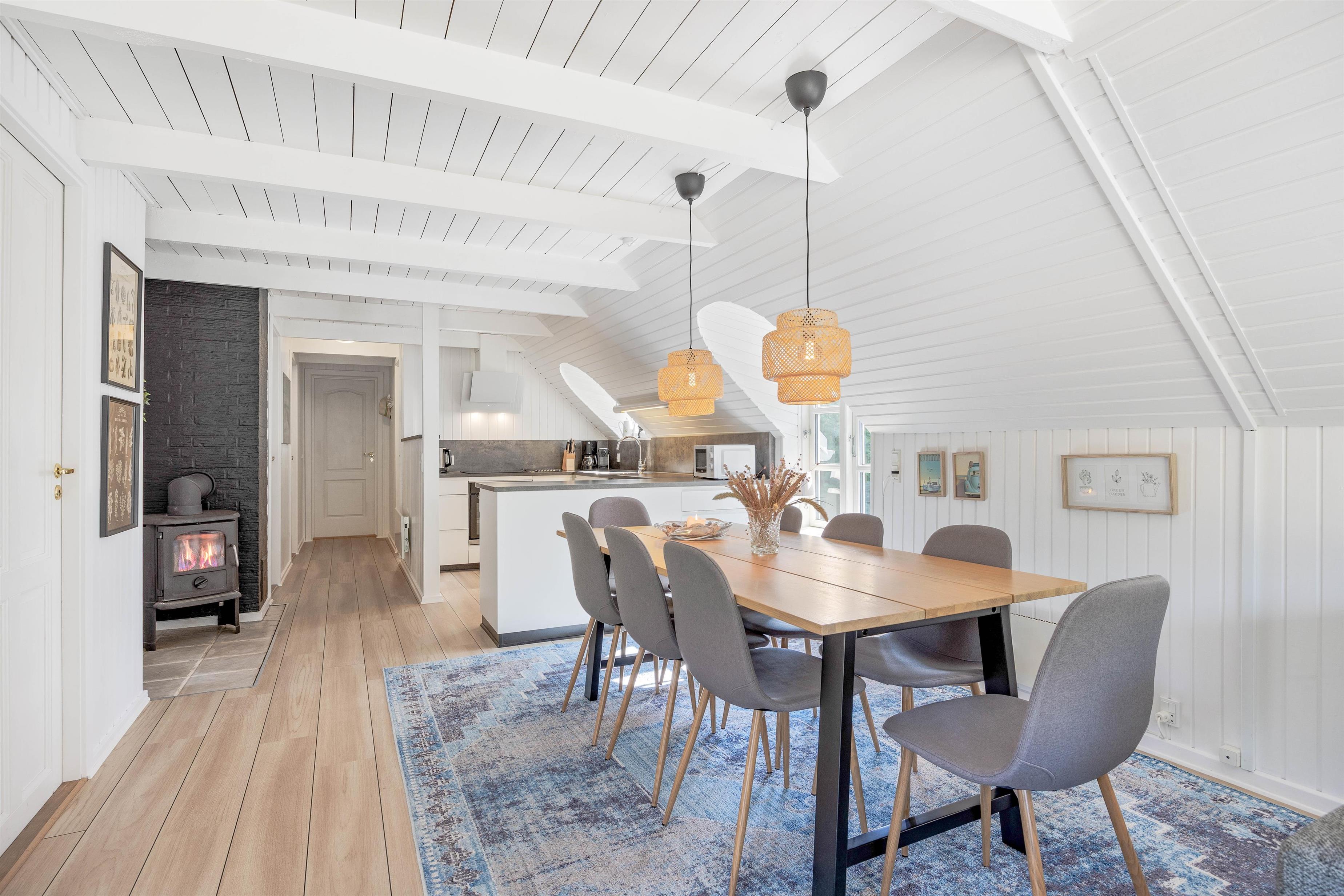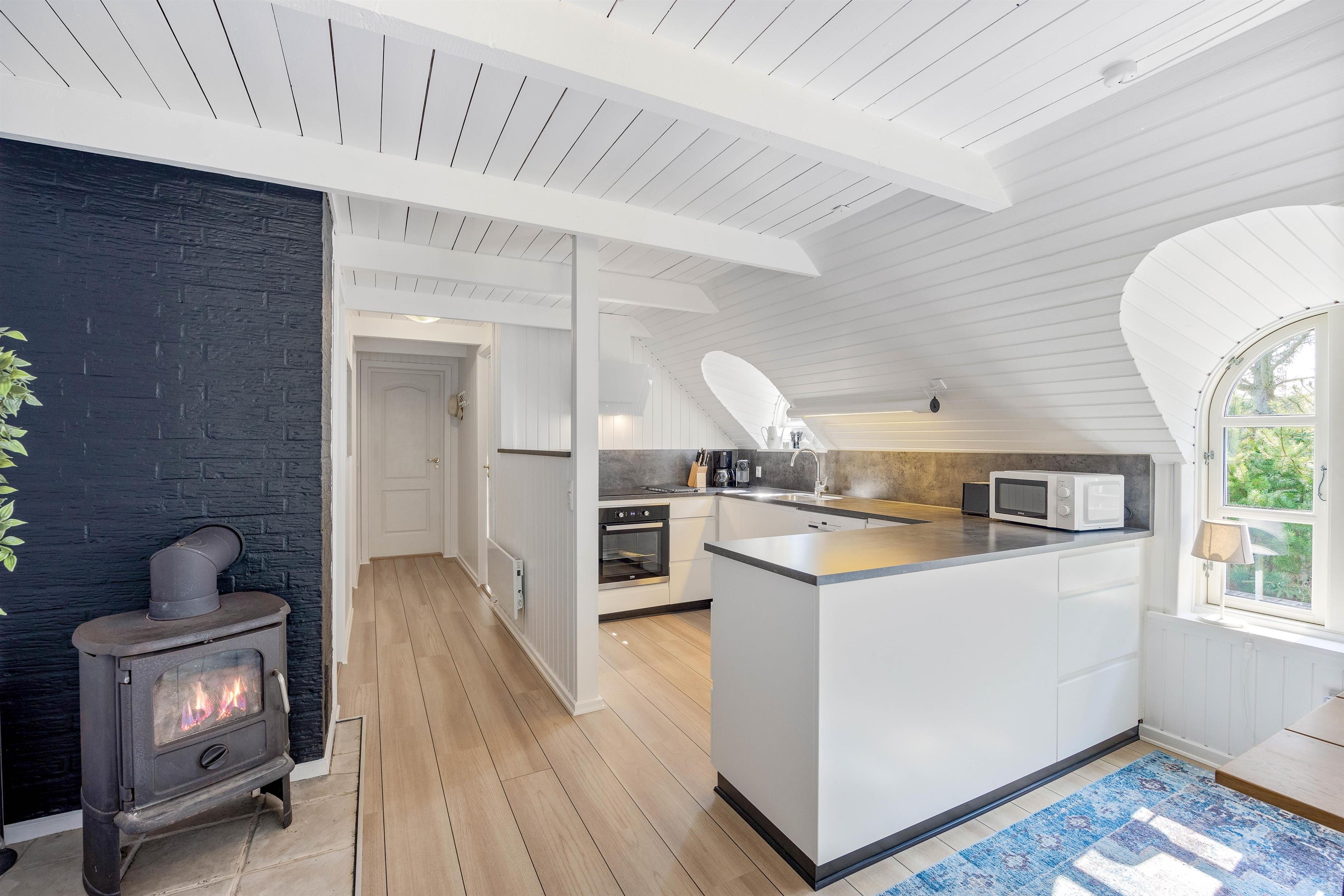 This excellent holiday home is located at Skovdalen 12, surrounded by a large terrace. The house enjoys a wonderfully peaceful position on a sheltered natural plot where you can enjoy your holiday in tranquility. The North Sea is just 500 metres from the holiday home.