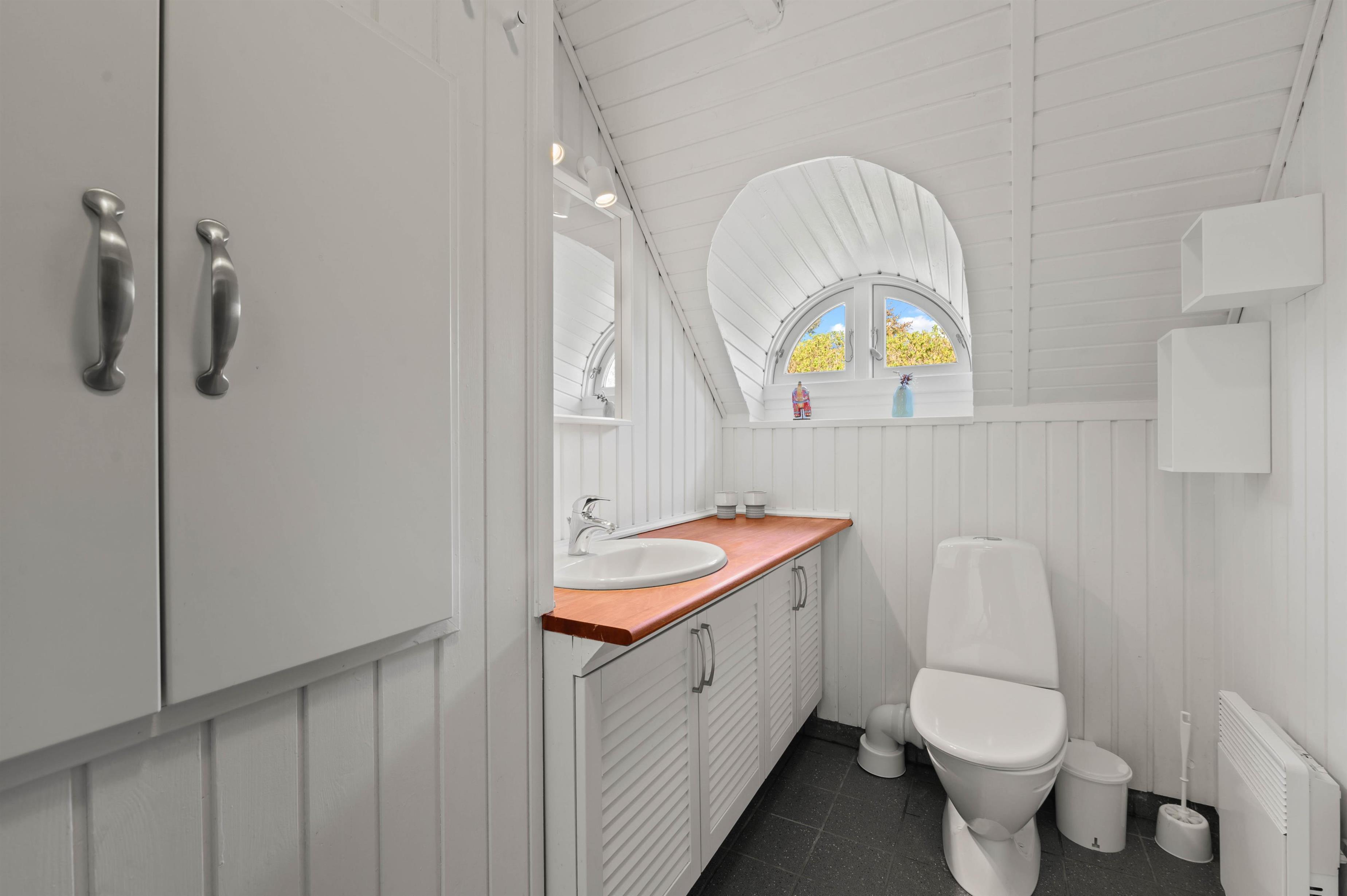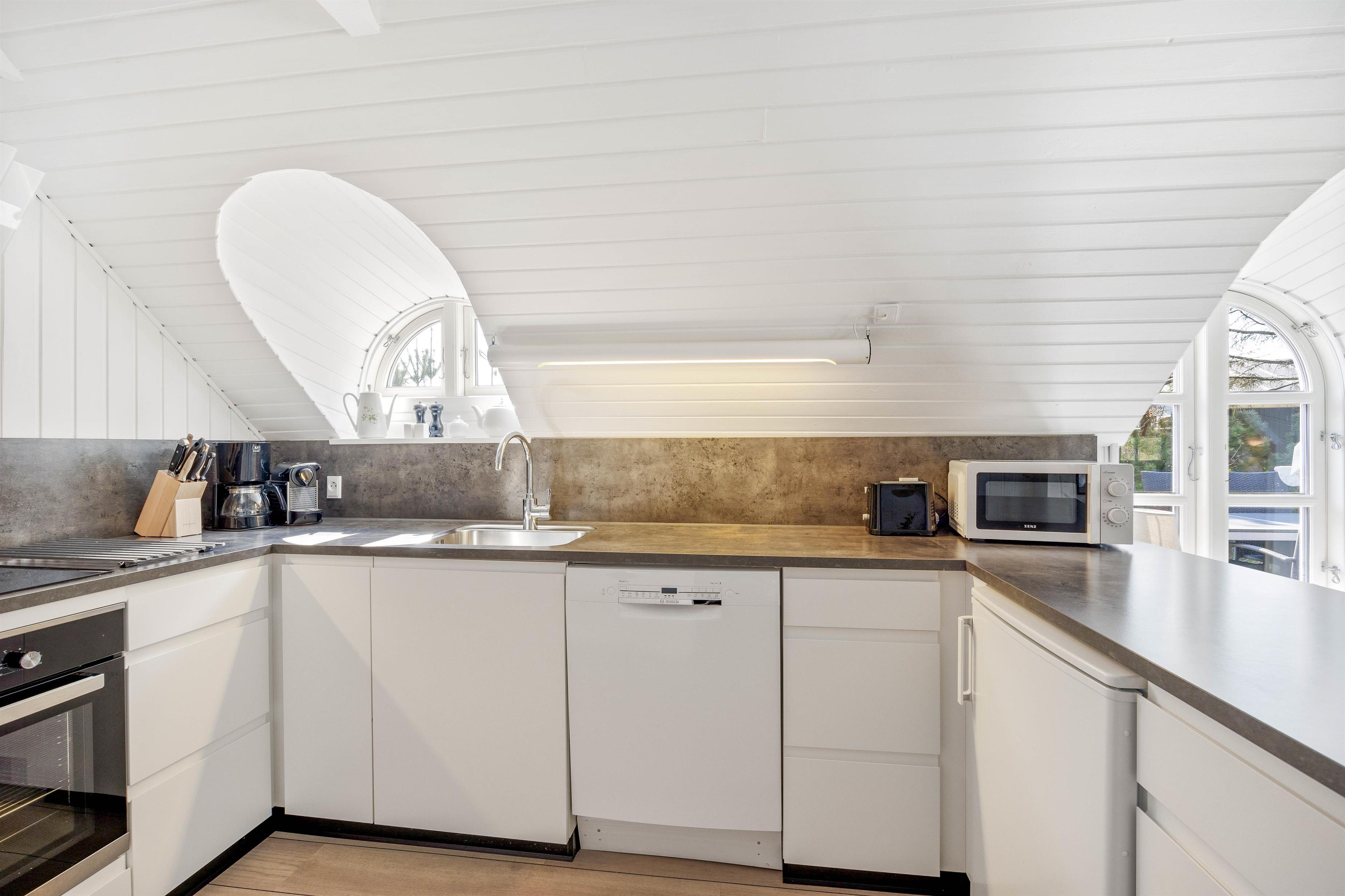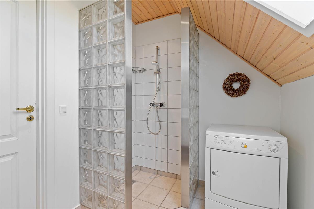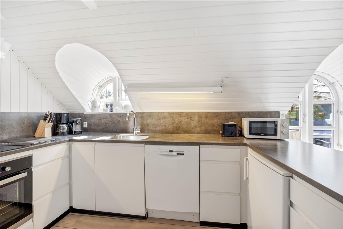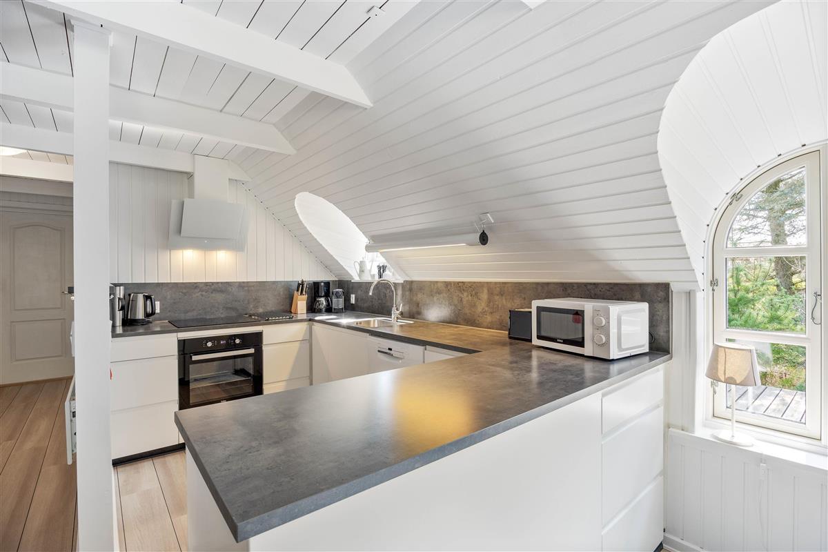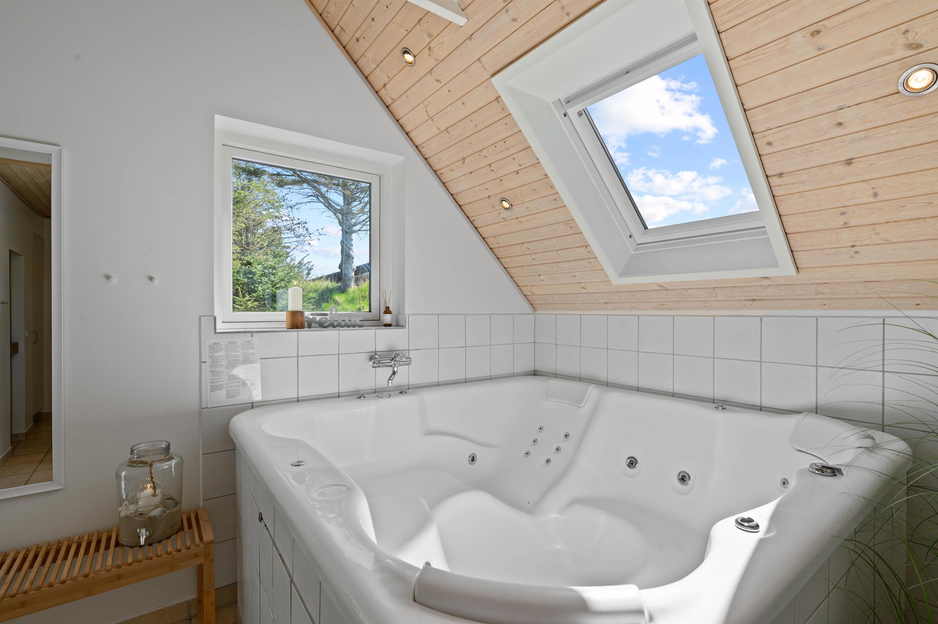 This excellent holiday home is located at Skovdalen 12, surrounded by a large terrace. The house enjoys a wonderfully peaceful position on a sheltered natural plot where you can enjoy your holiday in tranquility. The North Sea is just 500 metres from the holiday home.