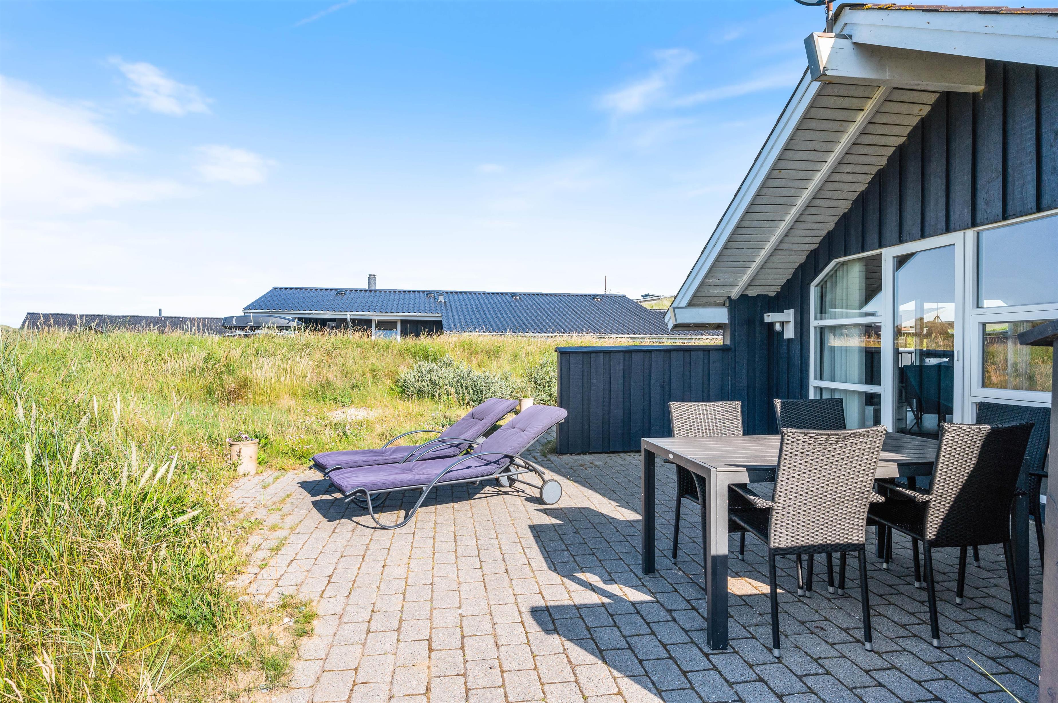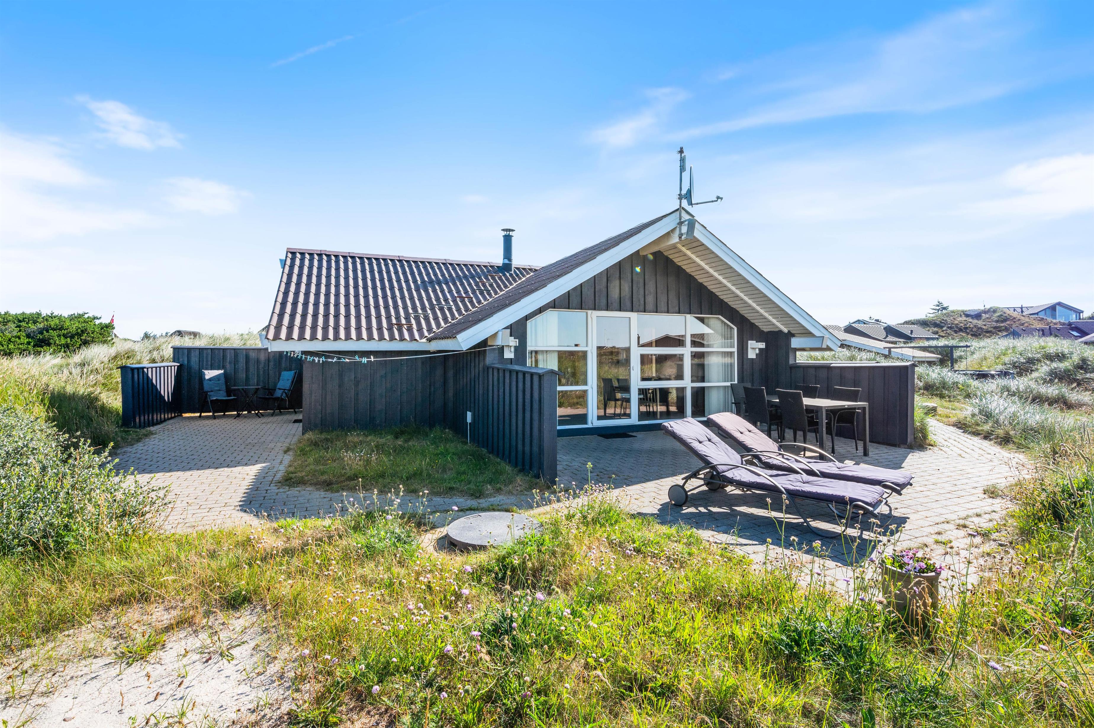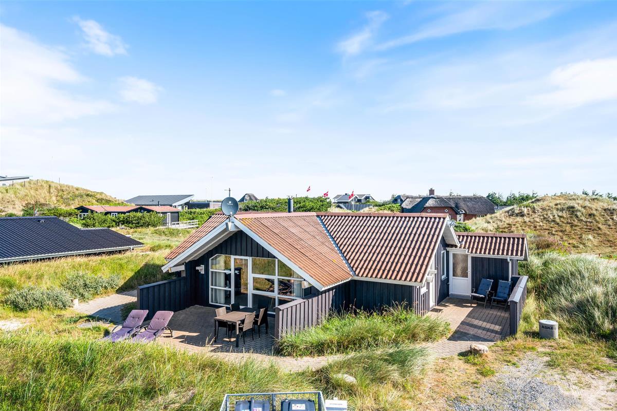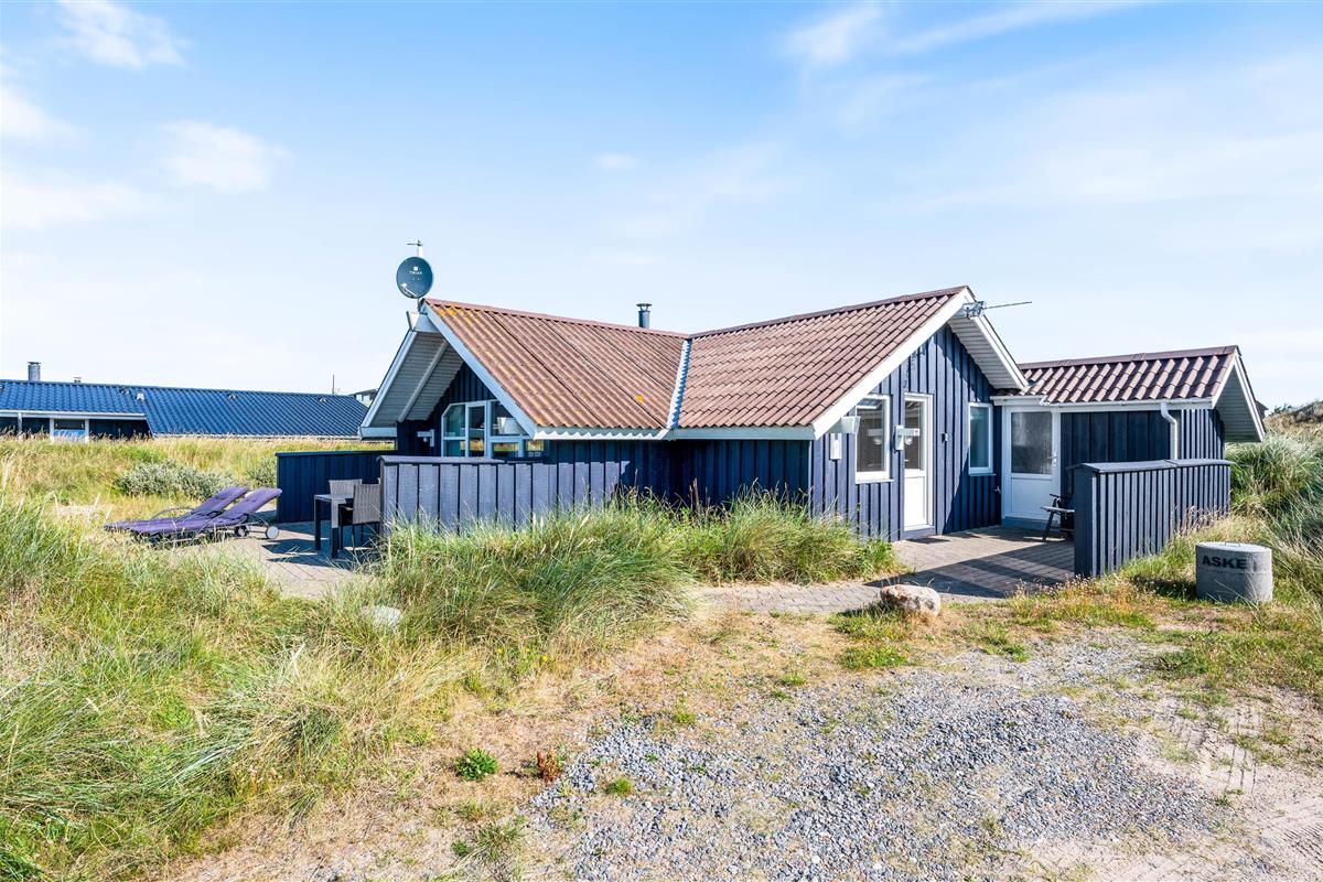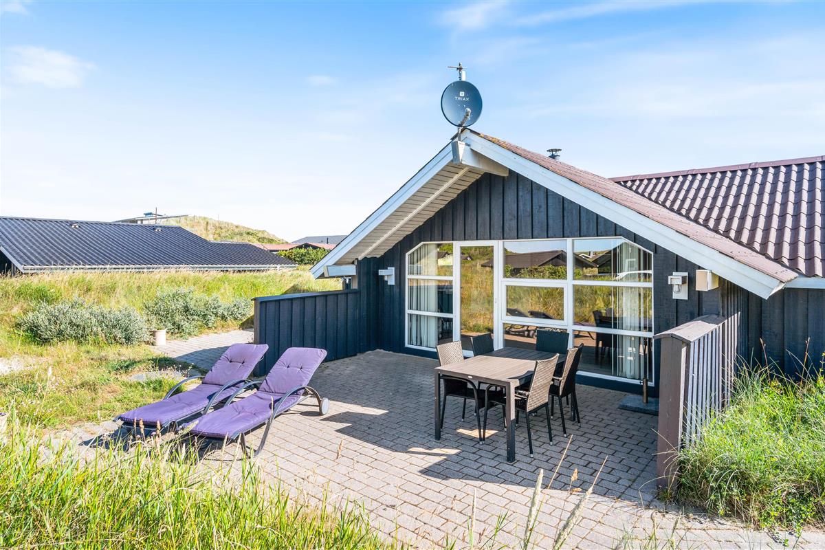 The 1,200-square-metre natural plot is beautifully situated in the Houvig dunes. The beach is easily accessible on foot, and the journey there through the dune paths is an experience in itself. At the holiday home, you can relax on the terrace, sunbathing or reading an engaging book while the fresh North Sea breeze carries the salty air your way.