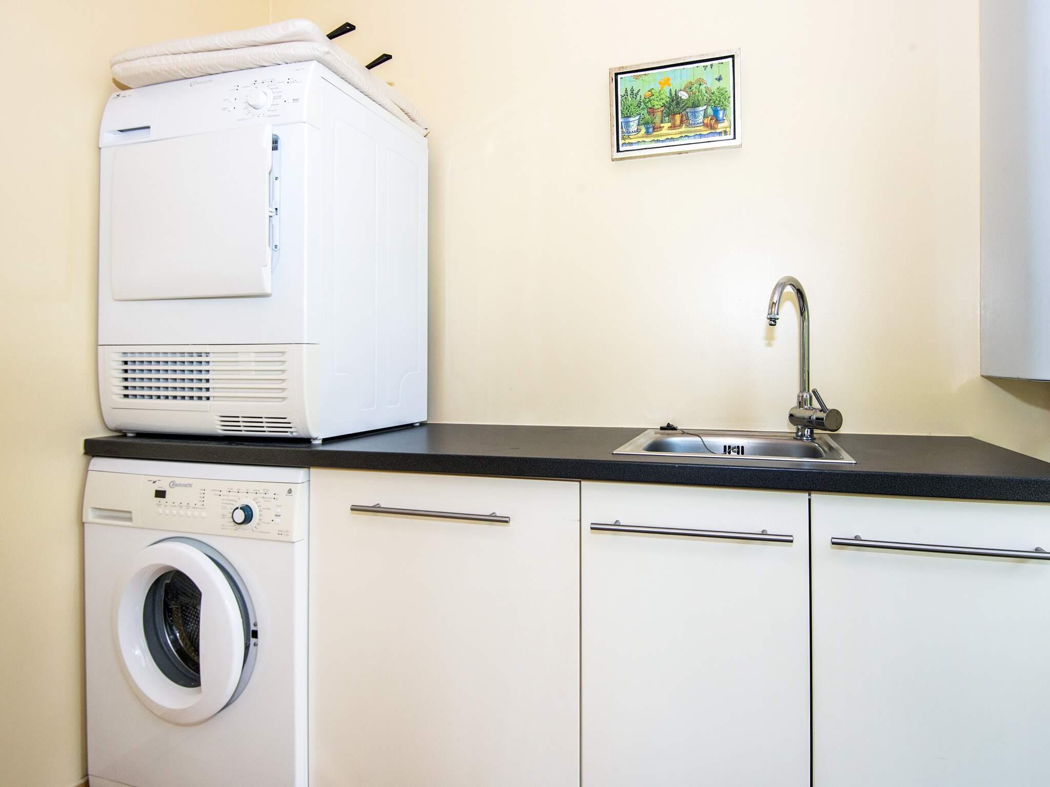Off. Küche: E-Herd, Kühl-Gefrier-Kombi, Mikrow., Abzugsh., Kaffeem., Spülm., Waschm, Trockner