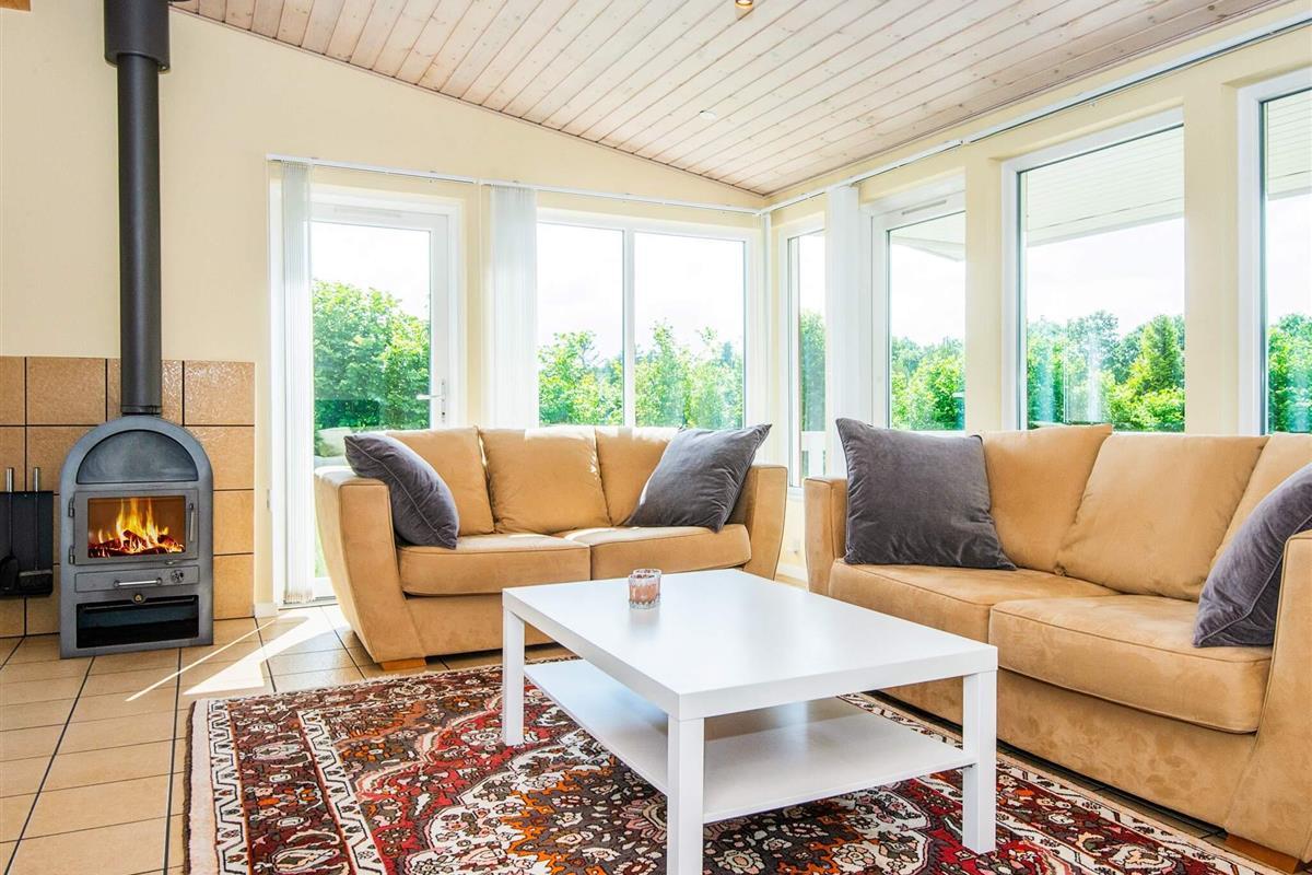 Ferienhaus in der naturschönen und familienfreundlichen Umgebung bei Hovborg. Das Haus ist hell und geschmackvoll eingerichtet mit komfortablen Möbeln und guten Betten. Im schön eingerichteten Wohnzimmer können Sie den Holzofen, Fernseher und DVD-Spieler nutzen. Bad mit Whirlpool.