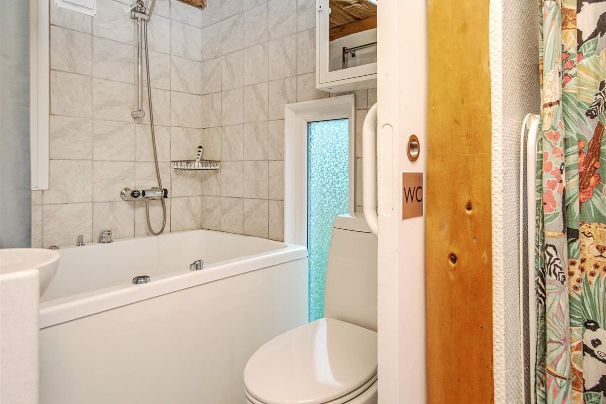 Ferienhaus mit Whirlpool im Bad und attraktiver Lage, in der malerischen und familienfreundlichen Gegend bei Hovborg. Das Ferienhaus ist zweckmäßig und wohnlich eingerichtet. Es hat eine helle Wohnküche. Ein schöner, großer Whirlpool sorgt für optimale Entspannung. Die Kojen im Etagenbett in dem einen Schlafzimmer sind nur 184 cm lang.