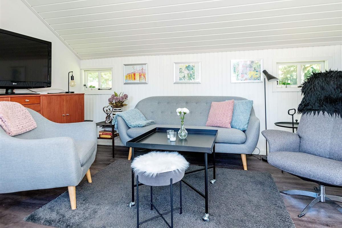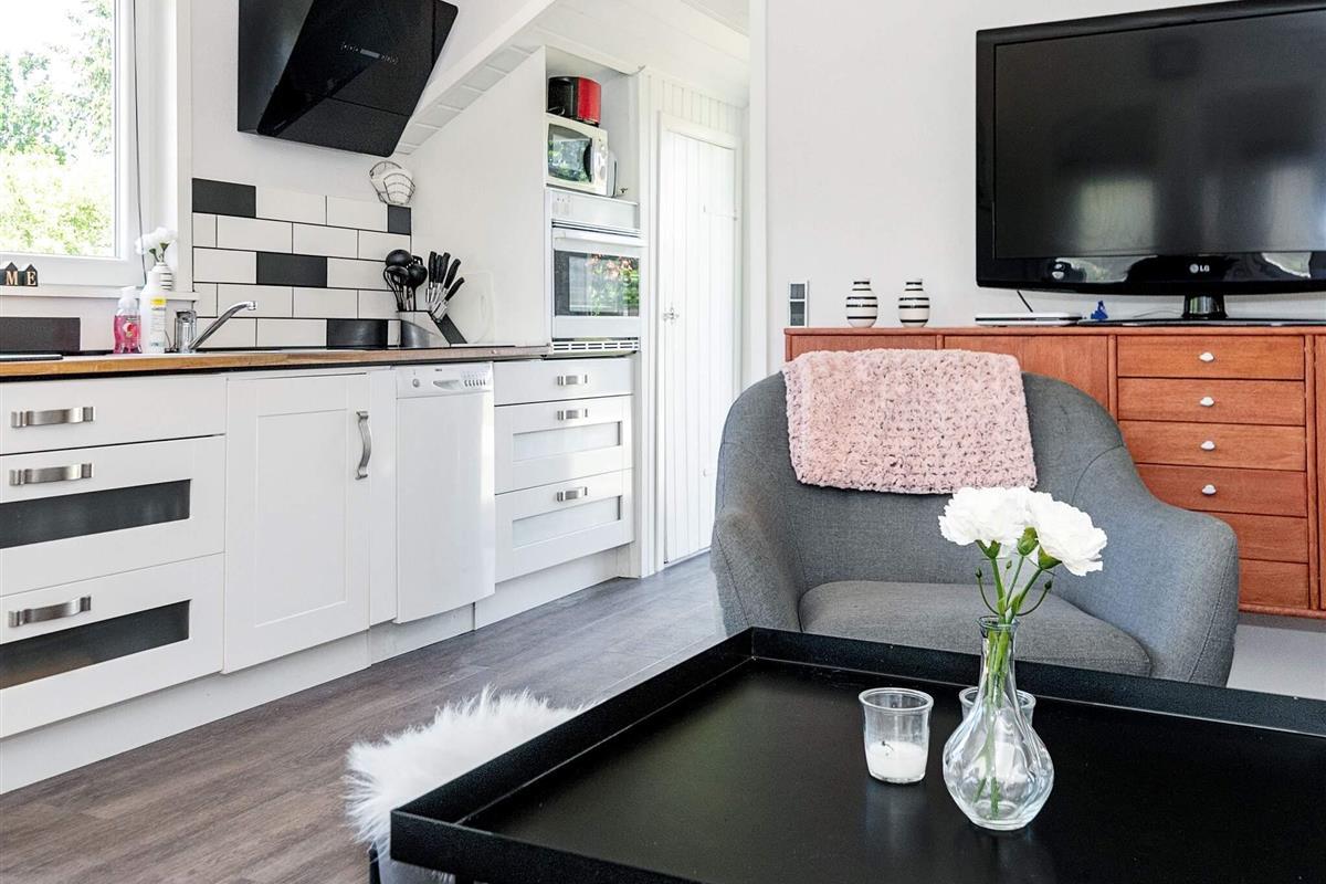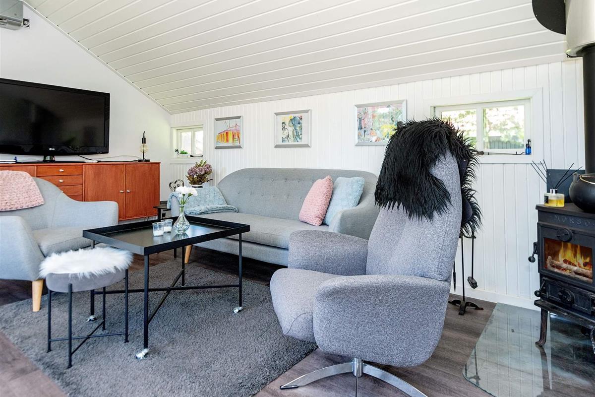 Und: Terrasse, E-Heiz., Luft-Luft-Wärmepumpe, Naturgrundst. m. Bäumen 400 m2, gemütliche Möblierung, Ferienhausgebiet, Nichtraucherhaus