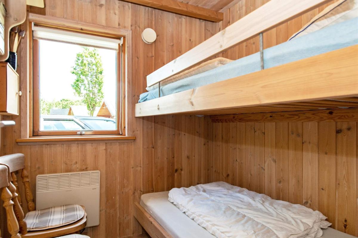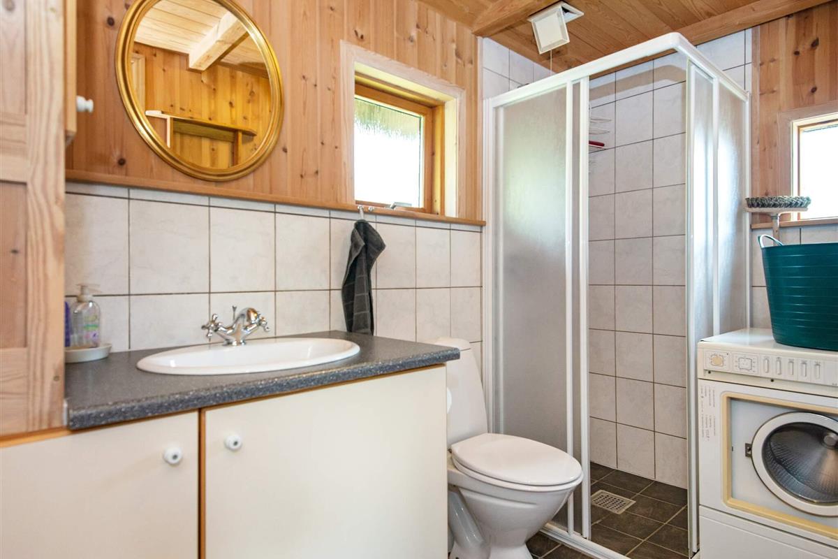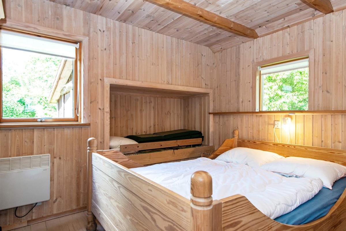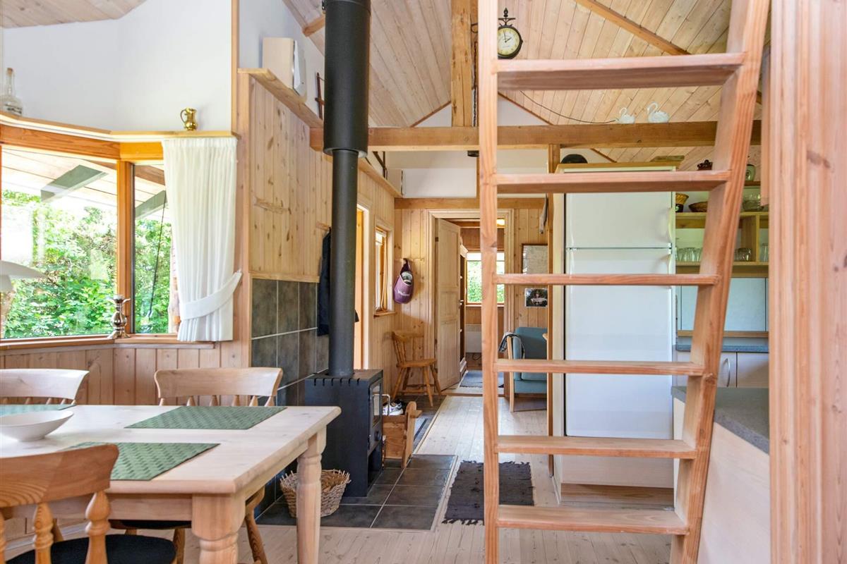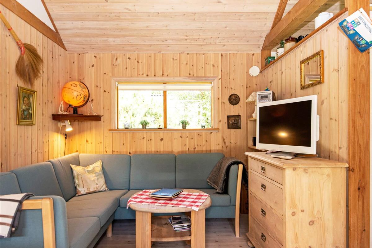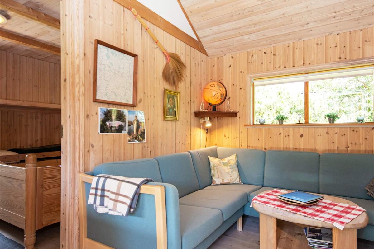 Im Inneren bietet das Haus einen hellen und geräumigen Wohnbereich mit einem großen Ecksofa, der nahtlos in die offene Küche und den Essbereich übergeht – ideal für gemeinsame Mahlzeiten und geselliges Beisammensein mit der Familie. Es gibt zwei Schlafzimmer: eines mit einem Doppelbett und einer kleinen Nische für ein Kind und ein zweites mit einem Etagenbett. Der Dachboden (Hems) bietet zwei zusätzliche Schlafplätze, während das Badezimmer für zusätzlichen Komfort mit einer Fußbodenheizung ausgestattet ist.