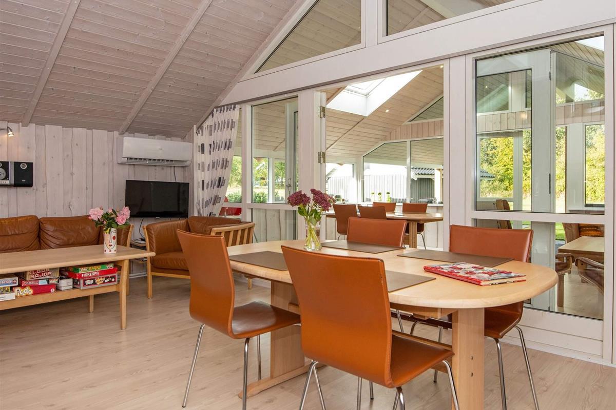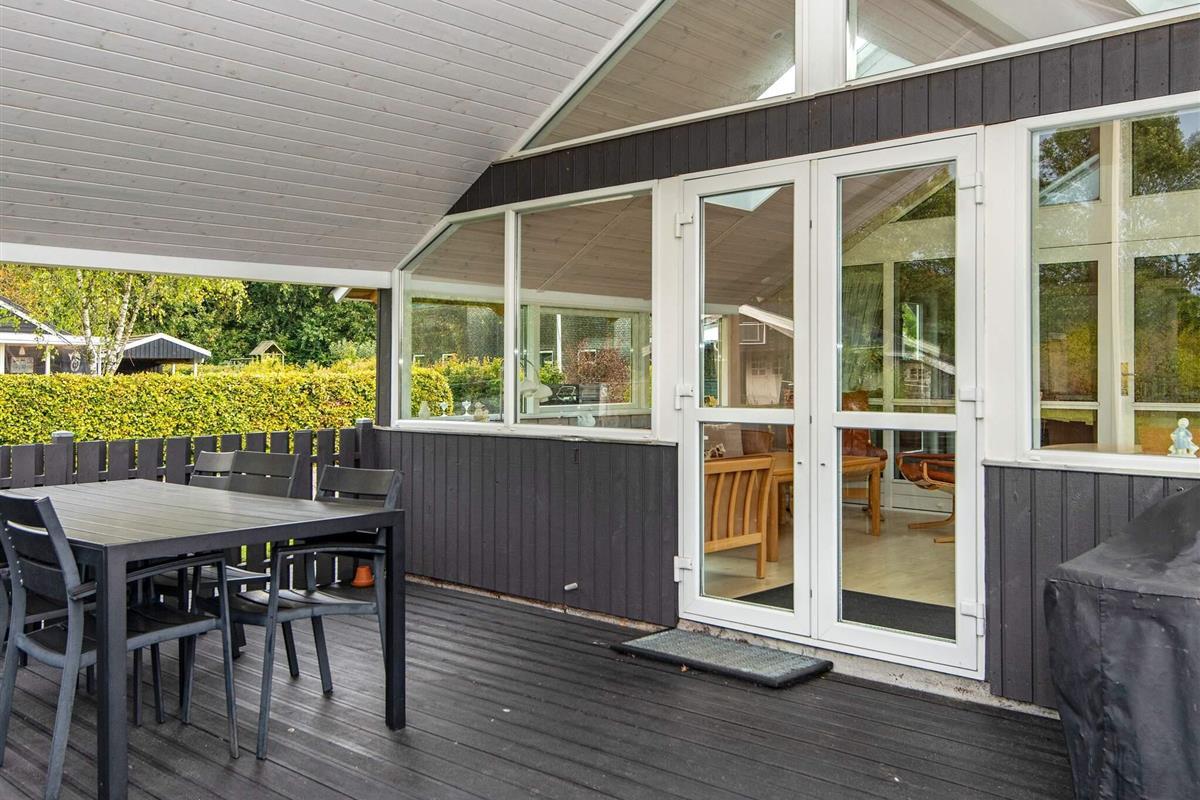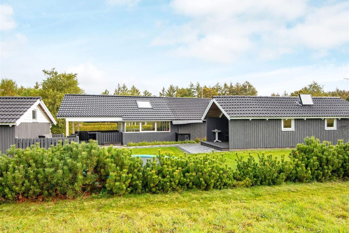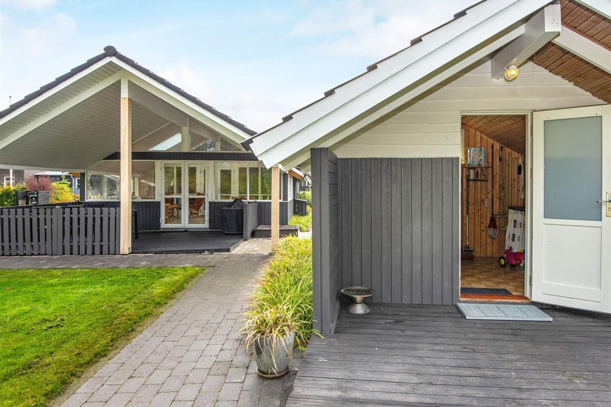 Im schönen und familienfreundlichen Gebiet Hovborg liegt dieses Ferienhaus, das ideal für Familien ist. Es verfügt u.a. über eine Glasveranda, ein Wohnzimmer, eine offene Küche, drei Schlafräume und ein Badezimmer mit Whirlpool. Im zugehörigen Annex finden Sie eine Teeküche, zwei Schlafplätze und ein Bad mit Dusche. Desweiteren gibt es ein kleines Gebäude auf dem Grundstück, in dem die Waschmaschine und der Trockner untergebracht sind. Am Verandagiebel wurde eine Markise angebracht.