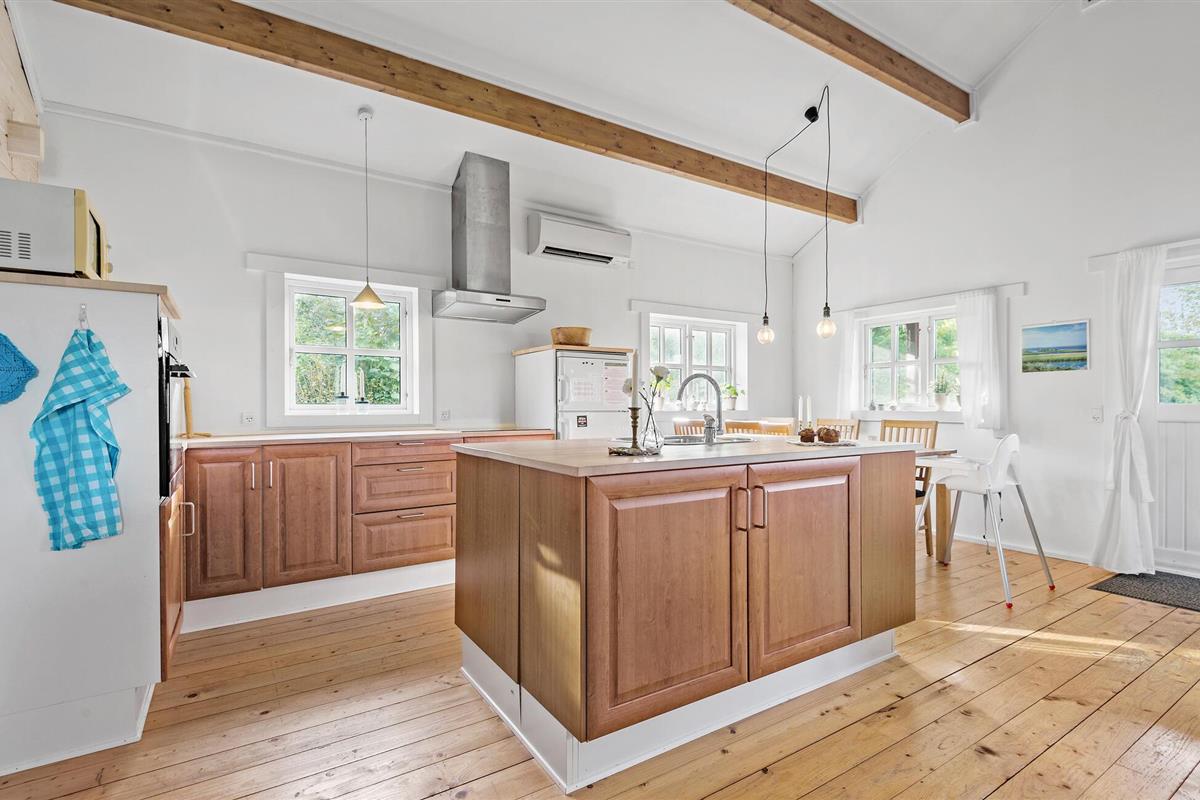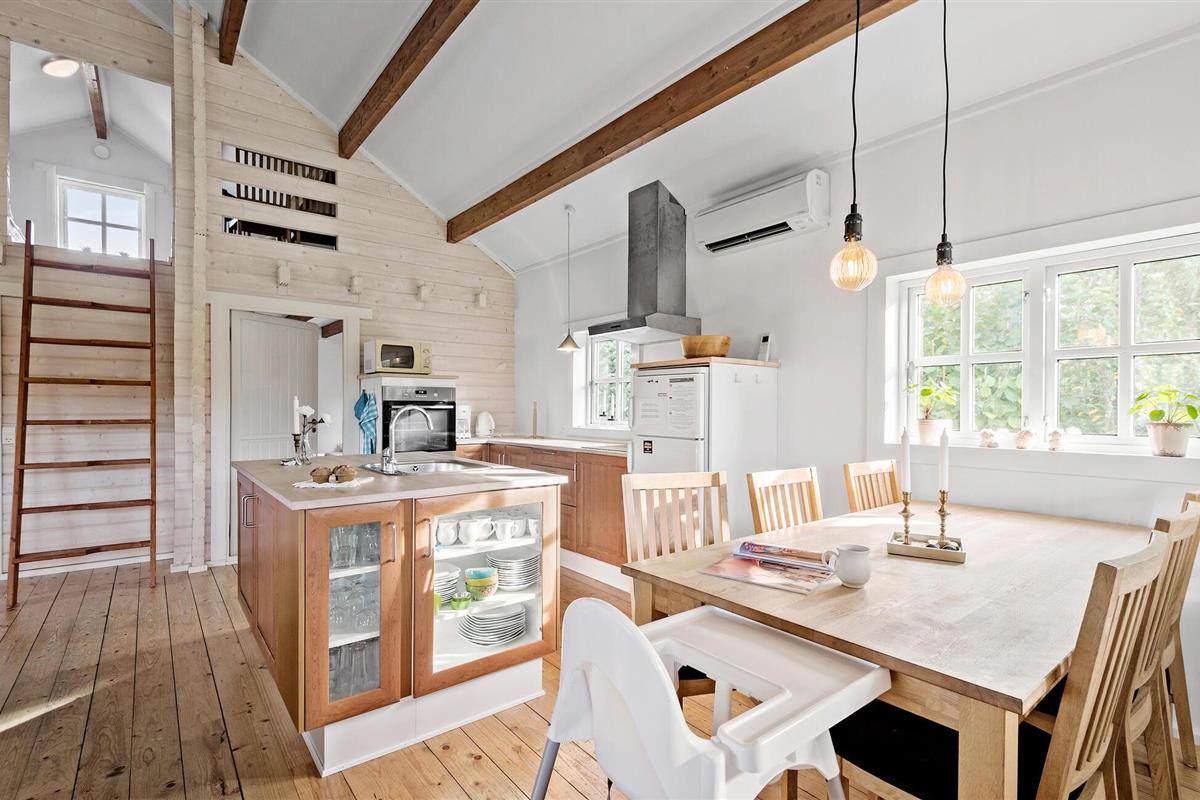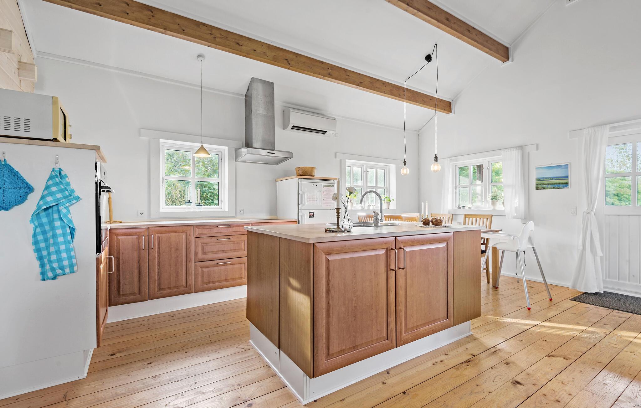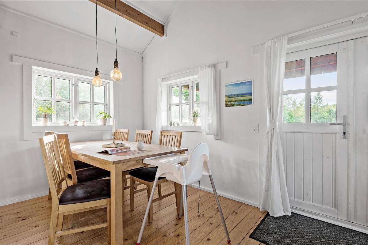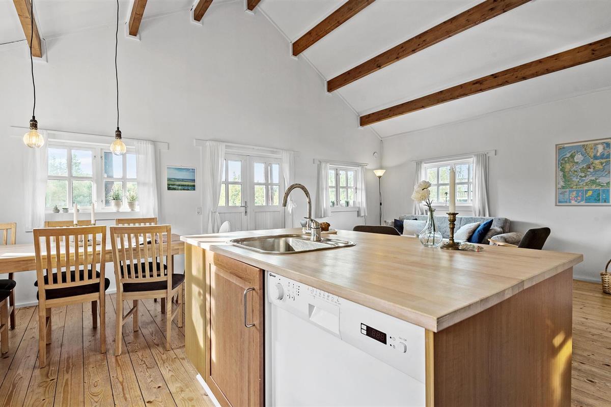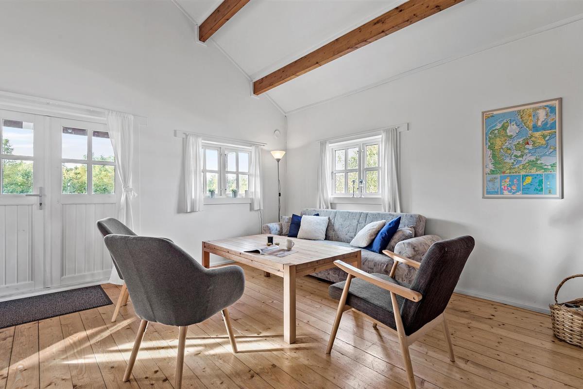 Beleef een rustige vakantie in dit gezellige vakantiehuis in Hovborg. Stap binnen in de lichte woonkamer, die een gezellige sfeer creëert met zijn hoge plafonds en houten balken. Maak het jezelf gemakkelijk op de gezellige bank en geniet van ontspannende uren met een goed boek of een spannende film. Bereid je favoriete gerechten in de open, goed uitgeruste keuken en geniet ervan aan de eettafel met uitzicht op de liefdevol onderhouden tuin.