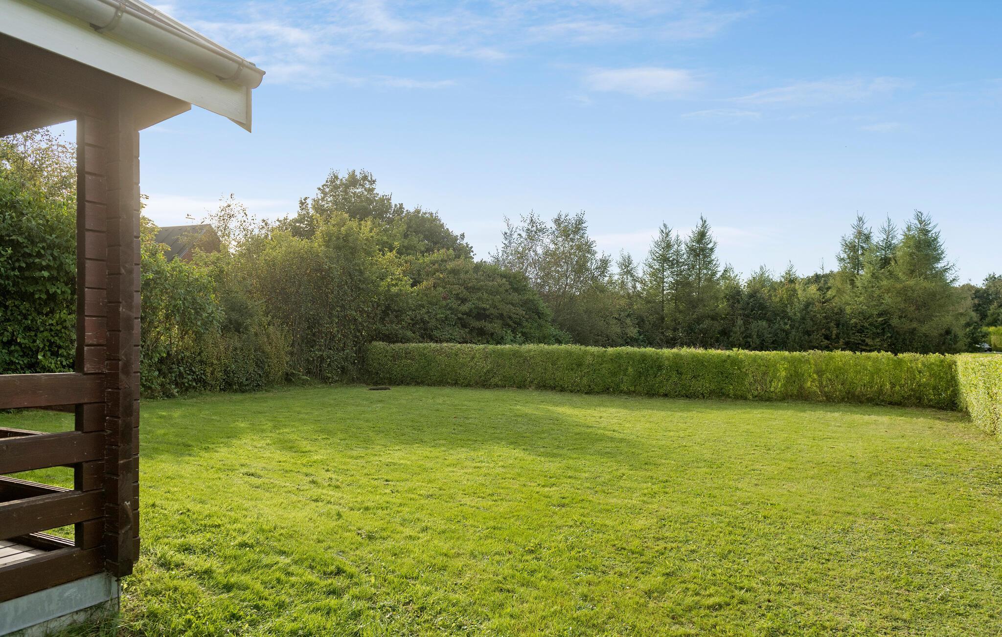 Geniet van een gezellig houten vakantiehuis in Hovborg met tuin, veranda en nabij Legoland.
