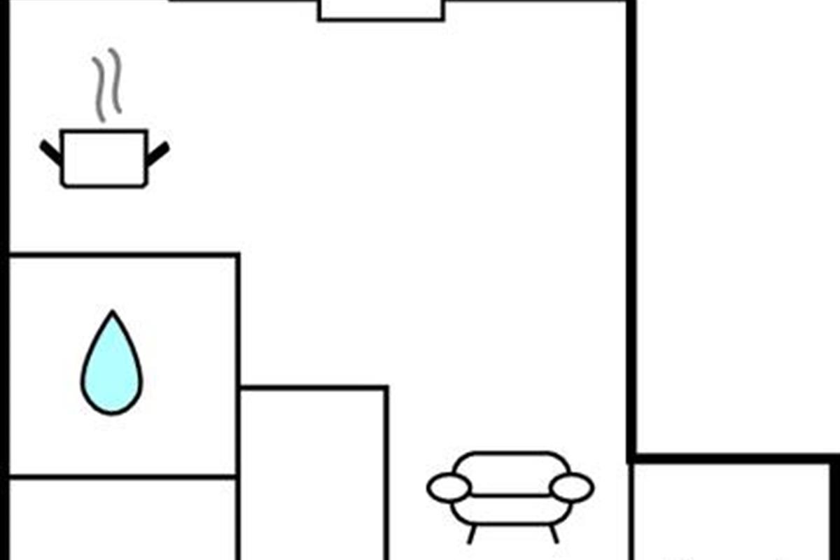 Woonkamer met open keuken 30m2 - 2 Slaapplaatsen. (Opklapbed(den) of matras(sen)).