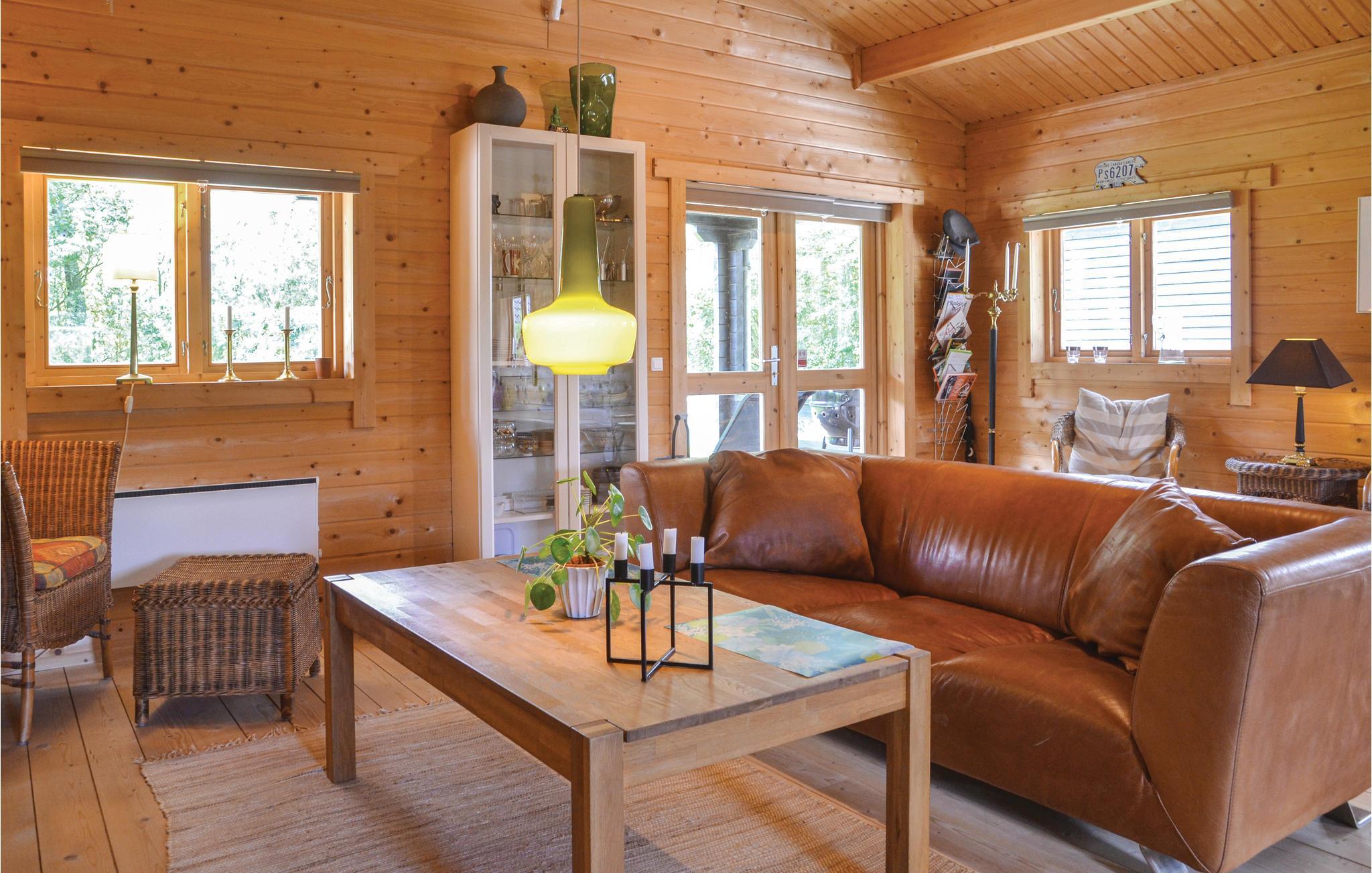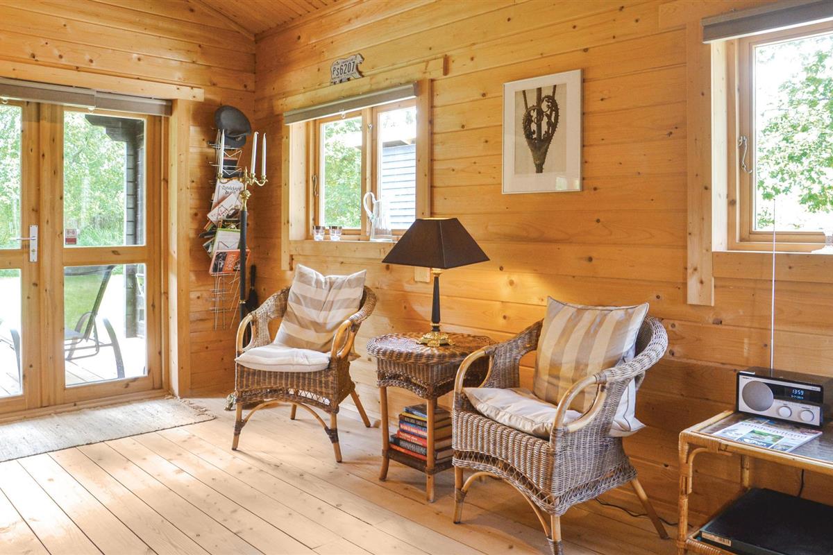 Een goed onderhouden en zeer gezellig vakantiehuis, gelegen nabij goede vismogelijkheden. Het huis is voorzien van twee mooie slaapkamers, een badkamer en een ruime keuken-woonkamer met eethoek. Vanuit deze mooie kamer, die een open daknok heeft en een gezellige houtkachel, heeft u toegang tot het rustige, deels overdekte terras waar u kunt genieten van de zonnige zomerdagen. Het huis ligt op een groot dubbel perceel, dus er zijn volop mogelijkheden voor buitenactiviteiten.