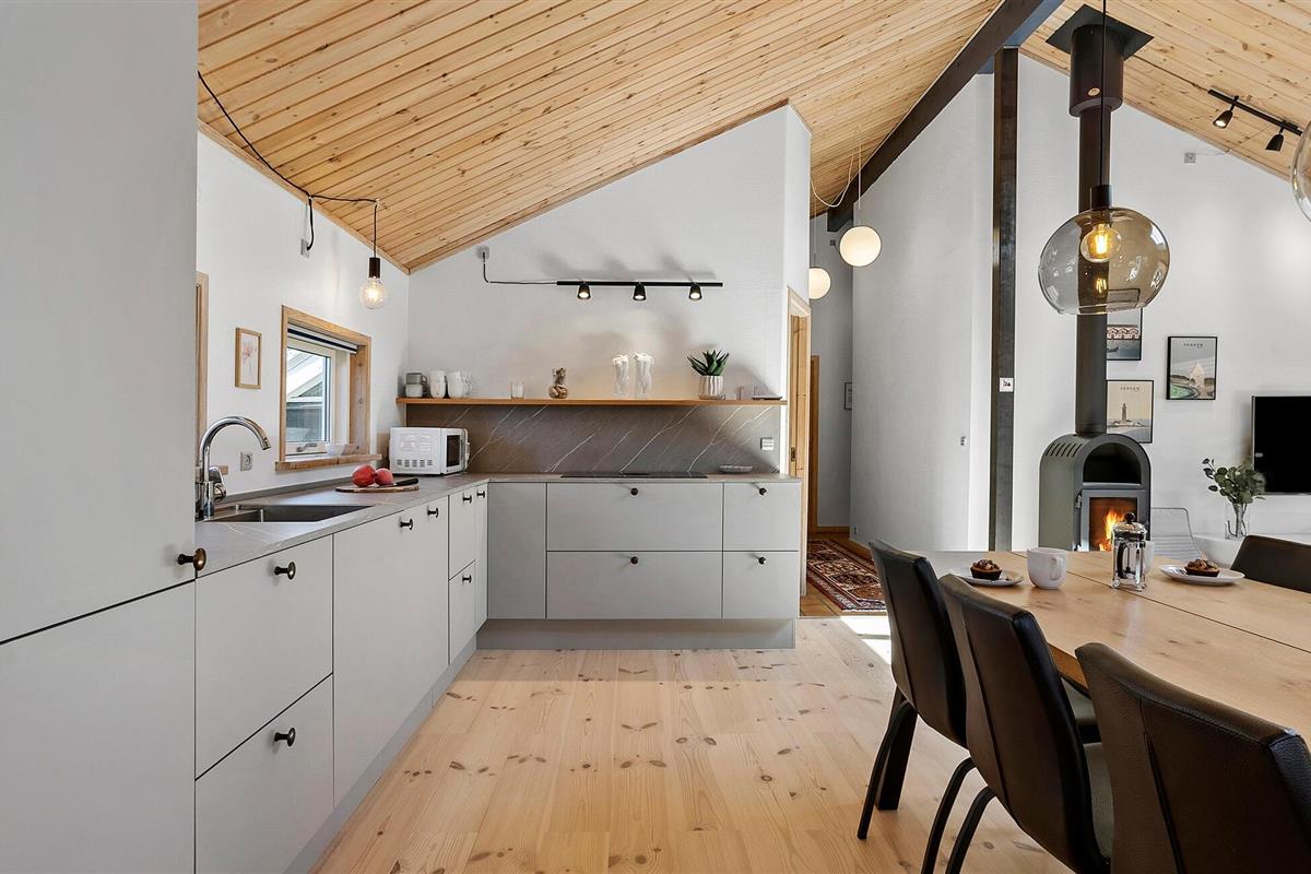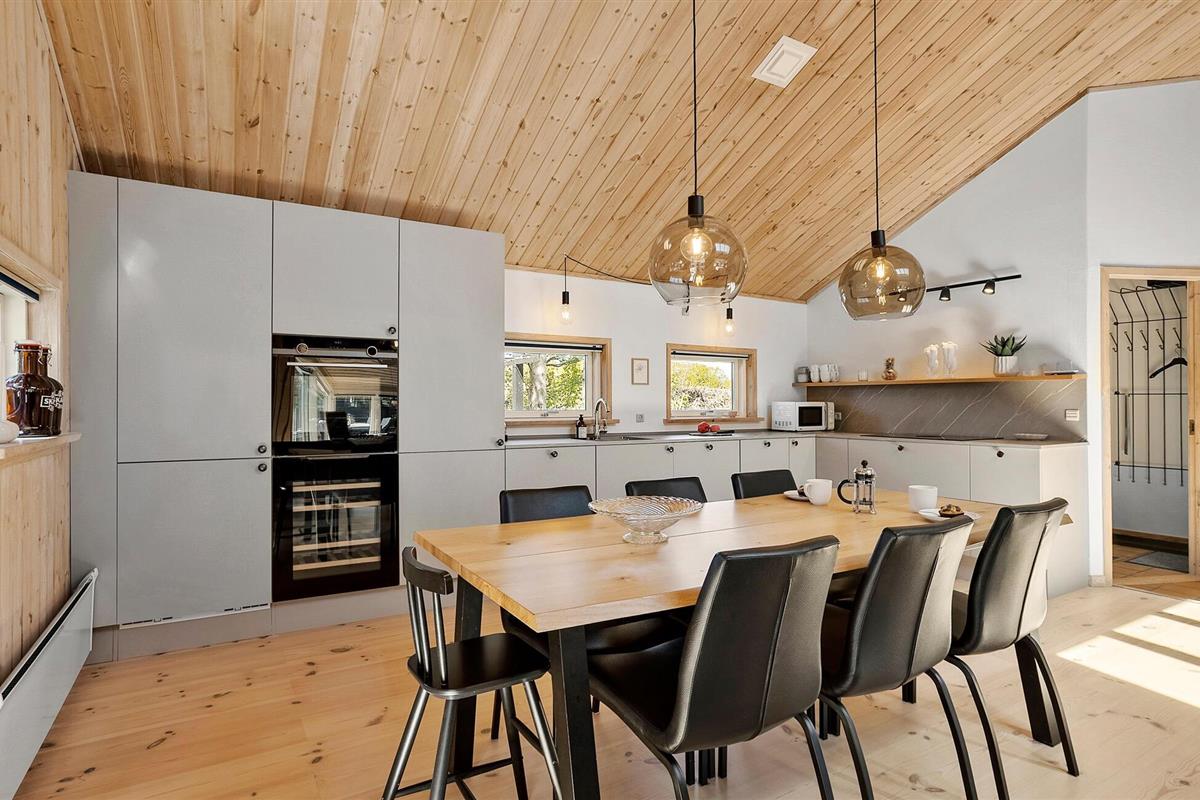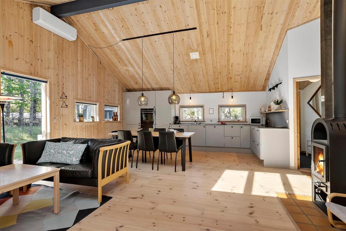 Houten lambrisering en smaakvolle meubels zorgen voor een gezellige sfeer in dit ruime vakantiehuis. Bereid heerlijke maaltijden met verse producten van de boerderijwinkel en vier ze samen aan de stijlvolle eettafel. Trakteer jezelf na lange wandelingen in de frisse zeelucht op een paar aangename momenten in de sauna, ontspan met een filmavond in de gezellige woonkamer of geniet van een kopje thee in de serre en laat je blik dwalen over het groen.