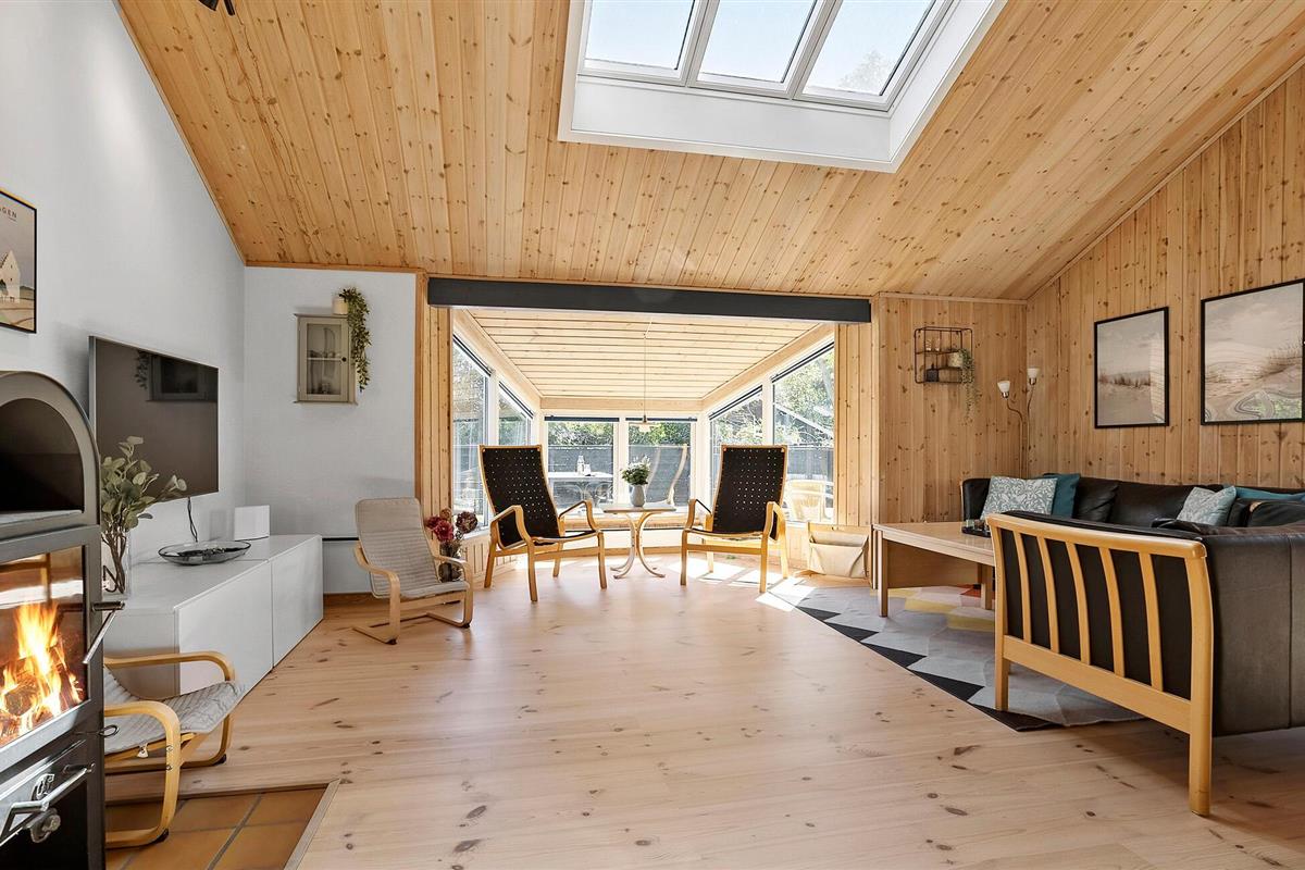 Ontspan in een ruim vakantiehuis met sauna en groene tuin bij Hulsig Strand, Denemarken.