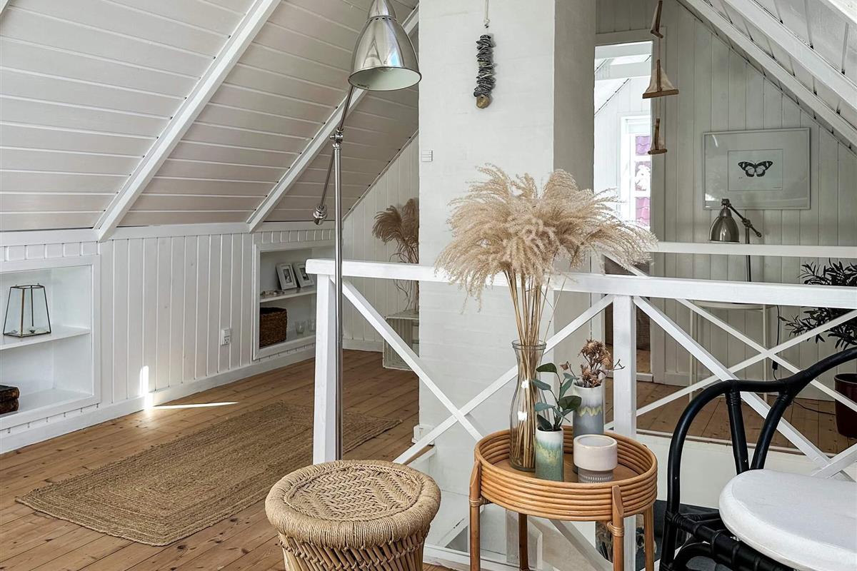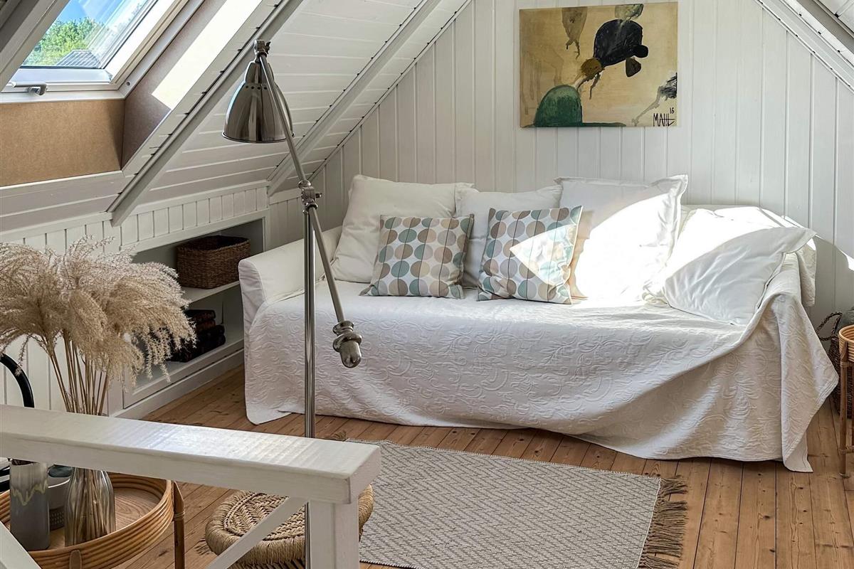 Über eine Holztreppe mitten im Raum gelangen Sie hinauf ins Dachgeschoss mit einer offenen Galerie mit doppelter Schlafcouch sowie einem separaten Schlafzimmer mit Doppelbett.