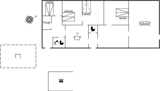 De vakantiewoning is gelegen op een 3000 m² groot aangelegde tuin. De grond is omheind. Afstand tot de zee 2700 m. Dichtstbijzijnde winkel 4600 m. Er is een golfbaan op een afstand van 2200 m. Bij de vakantiewoning hoort terras. Daarnaast is er een overdekt terras. Schommel. Zandbak. Barbecue. Carport ter beschikking. Parkeerplaats bij het huis.