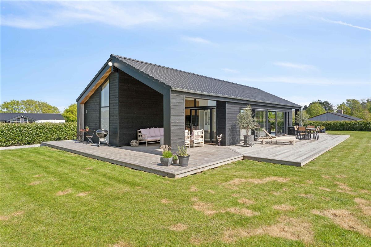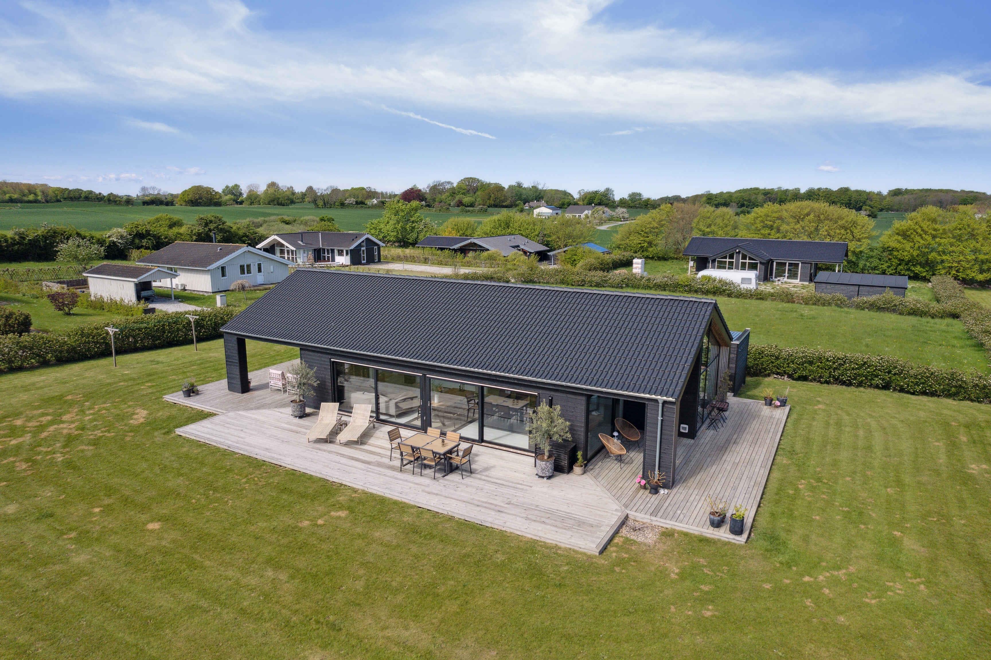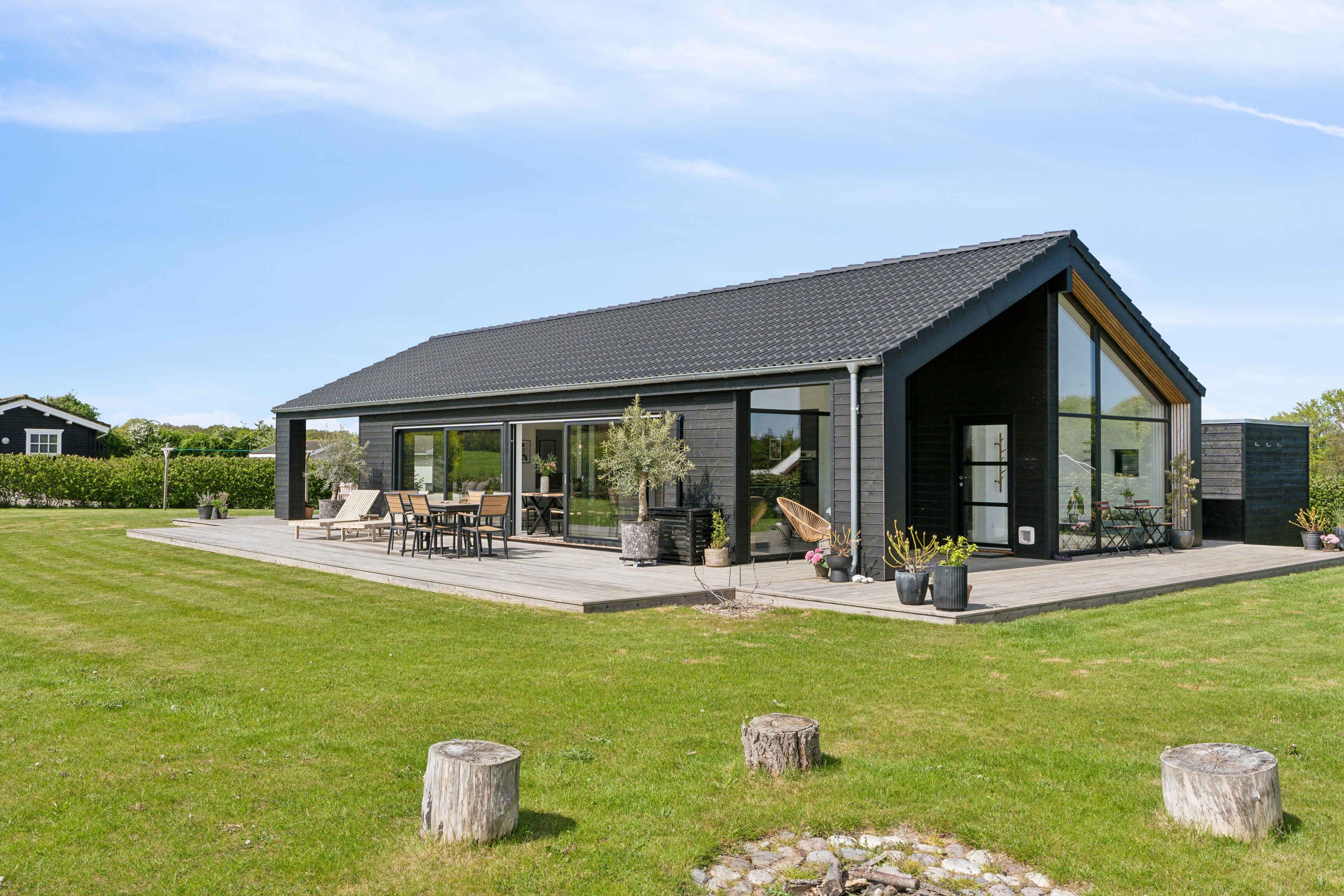 Modern vakantiehuis op Langeland met privéterras, dichtbij strand en golfbaan, ideaal voor rust en activiteiten.
