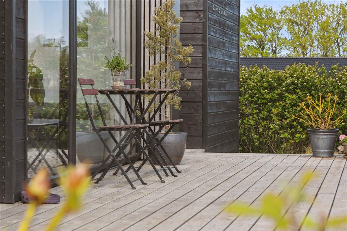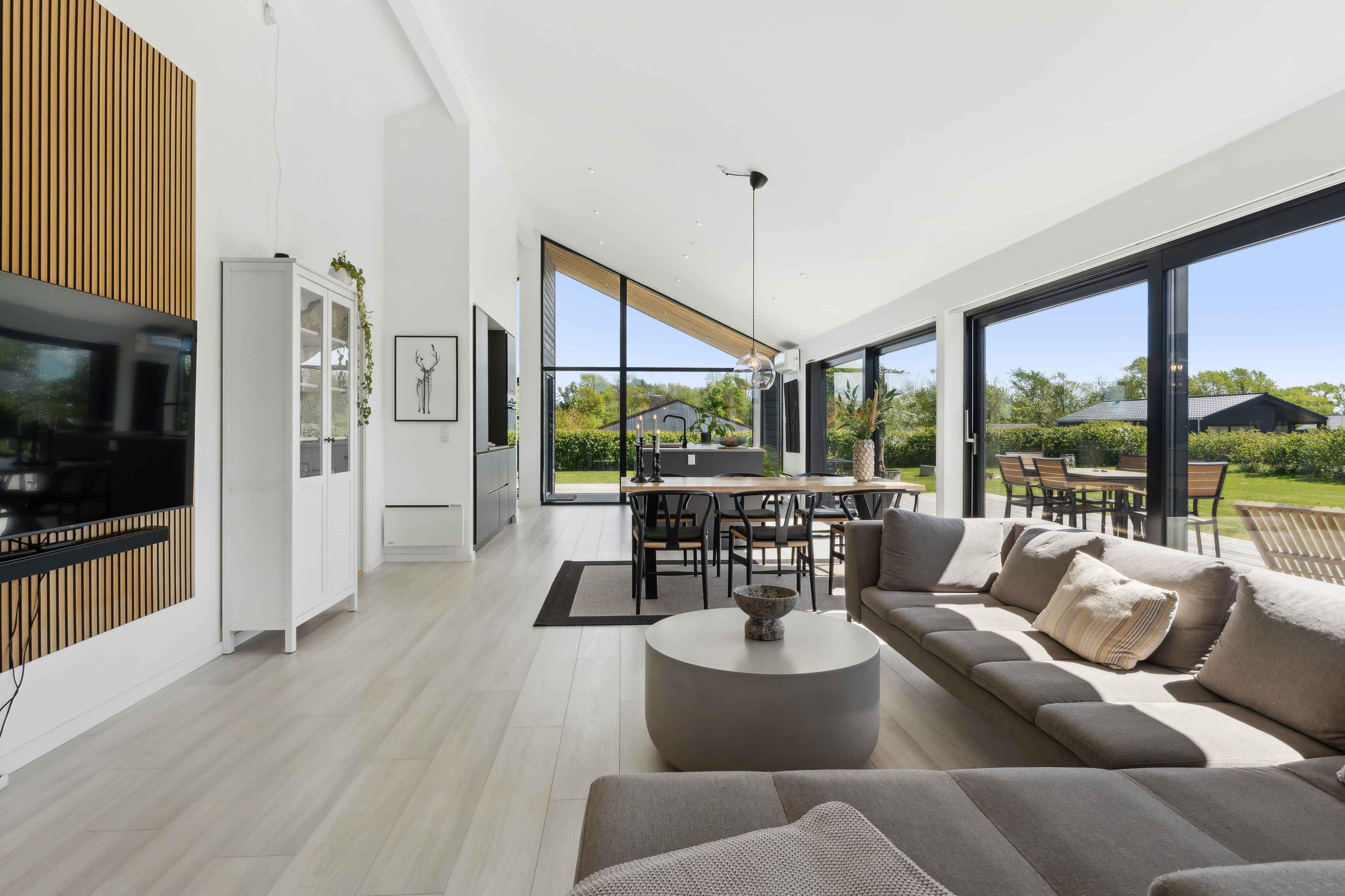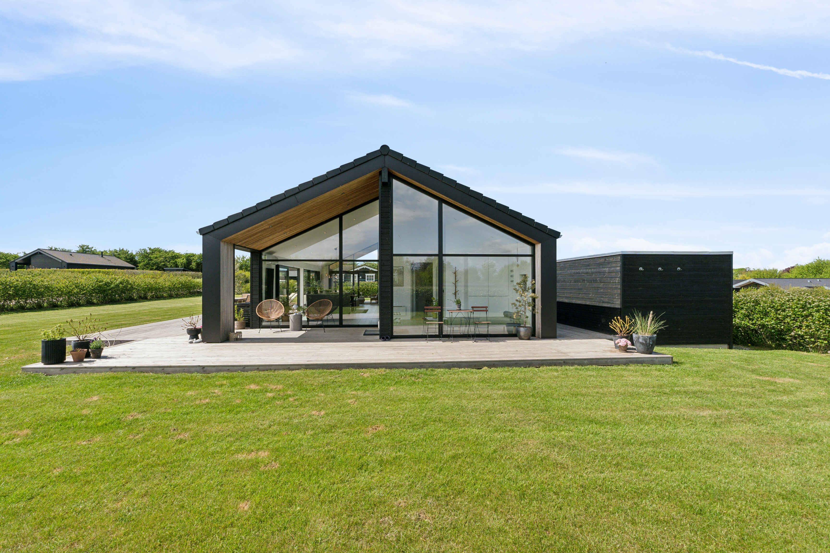 Modern vakantiehuis op Langeland met privéterras, dichtbij strand en golfbaan, ideaal voor rust en activiteiten.