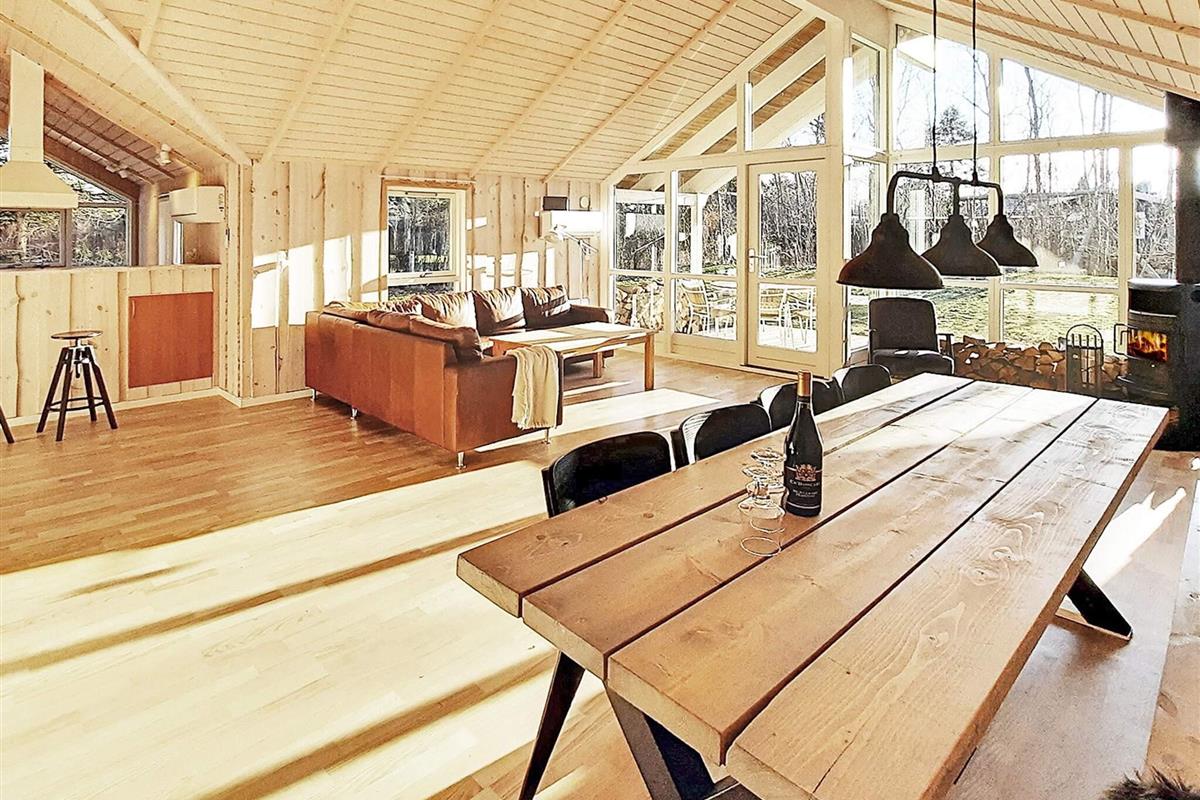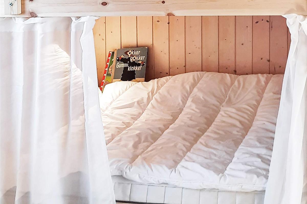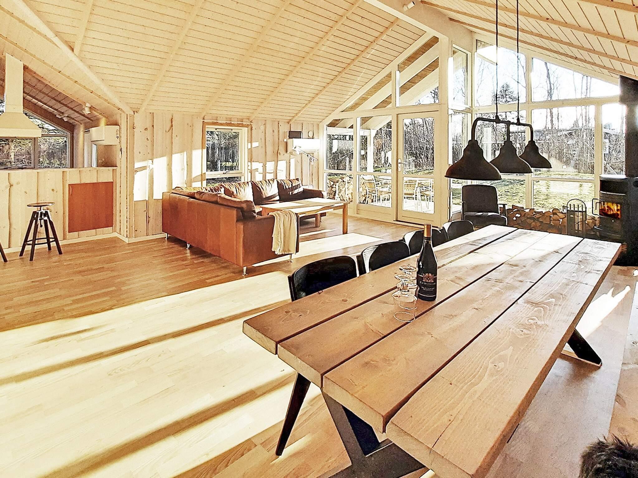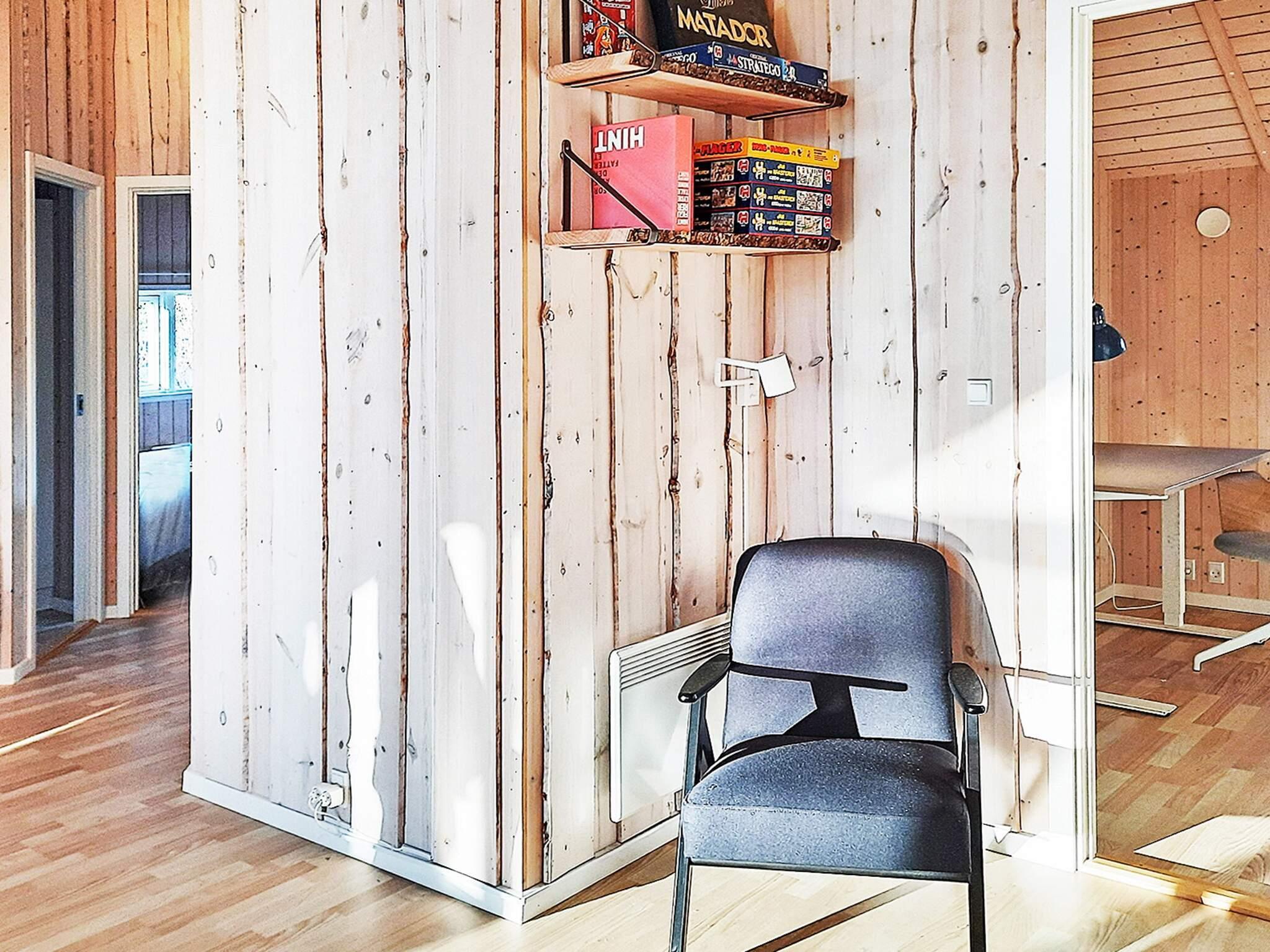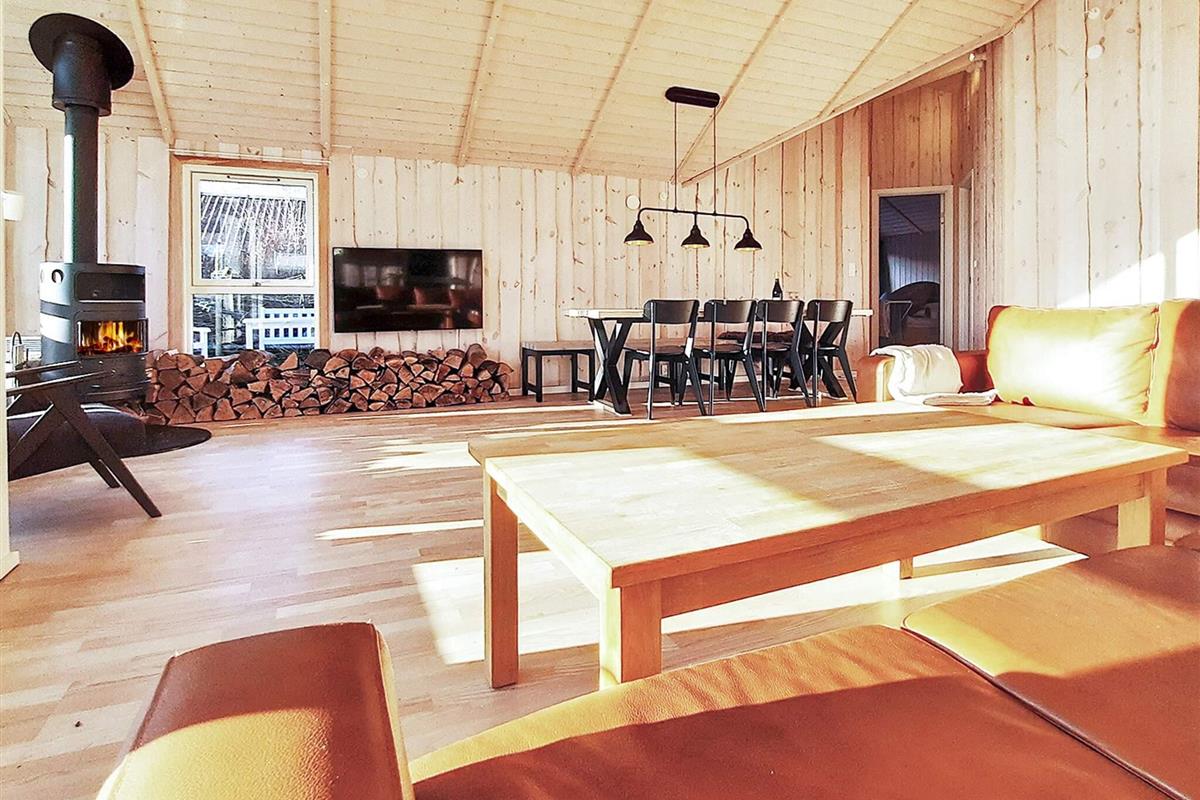 Innen offener Küchen-/Wohnbereich mit Ess- und Sitzecke für das Familienleben sowie Holzofen für kühlere Abende. Gute Küchenausstattung zum Kochen und Backen. Zur zeitgemäßen Ausstattung gehören auch WLAN und Smart-TV mit airplay sowie Chromecast zum Streamen Ihrer eigenen TV-Dienste. Für den Musikgenuss gibt es Bluetooth Lautsprecher. Im Haus zudem großes Badezimmer mit angenehmer Fußbodenheizung sowie Zugang zu Whirlpool und Sauna für erholsame Stunden. Es gibt zwei identische Schlafzimmer mit jeweils einem breiten Doppelbett und Schrankplatz. Drittes Schlafzimmer mit Etagenbett sowie höhenverstellbarem Schreibtisch mit bequemem Bürostuhl als Arbeitsplatz falls nötig. Im Haus findet man zudem eine Auswahl an Brettspielen und Puzzle für die ganze Familie. Die Einrichtung des Hauses ist durchgehend modern.