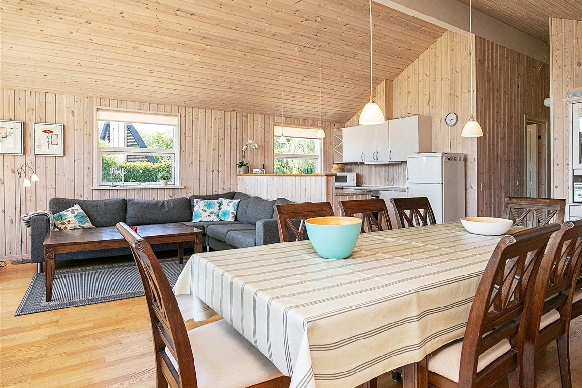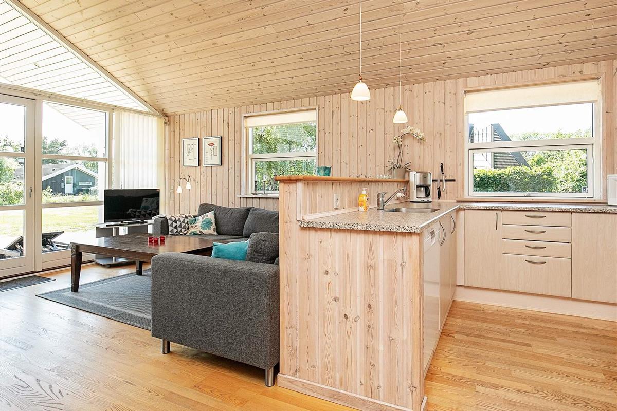 Schönes Ferienhaus mit offener Küche, 400 m von einem kinderfreundlichen Sandstrand entfernt, in einer Sackgasse, in ruhiger Lage. Das Haus bietet eine große, teilweise überdachte Terrasse, die zu entspannenden Stunden im Freien einlädt. Entspannen können Sie natürlich auch im Whirlpool oder der Sauna des Hauses. Zur weiteren Ausstattung gehören u.a. das kostenlose WLAN sowie ein Fernseher, der auch deutsche Sender empfängt.