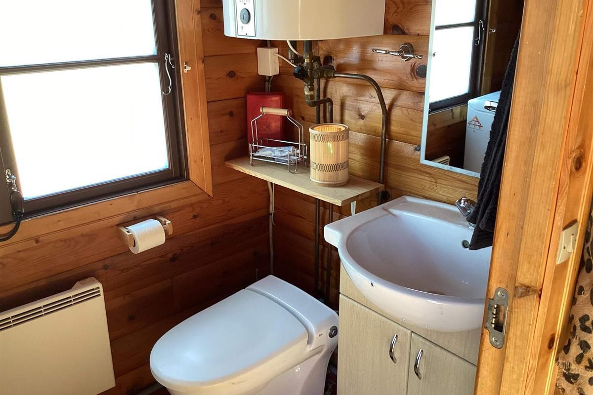 Das Wohnzimmer ist mit einem Holzofen, einer Stereoanlage und Apple TV ausgestattet und bietet eine entspannende Atmosphäre für Ihre Auszeit. Die Schlafplätze bestehen aus zwei Doppelbetten und zwei Kojen im Etagenbett und bieten somit ausreichend Platz für Familien oder Gruppen.