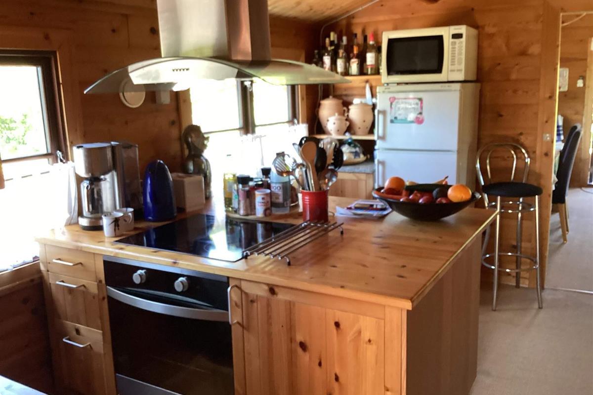 Die gut ausgestattete Küche des Ferienhauses, mit Backofen, Mikrowelle, Geschirrspüler und Kaffeemaschine, macht die Zubereitung von Mahlzeiten zum Kinderspiel. Das Badezimmer ist mit einer Dusche und einer Waschmaschine ausgestattet, um den Aufenthalt so angenehm wie möglich zu gestalten. Die elektrische Heizung und die Luft/Luft-Wärmepumpe sorgen dafür, dass Sie es zu jeder Jahreszeit warm und gemütlich haben.