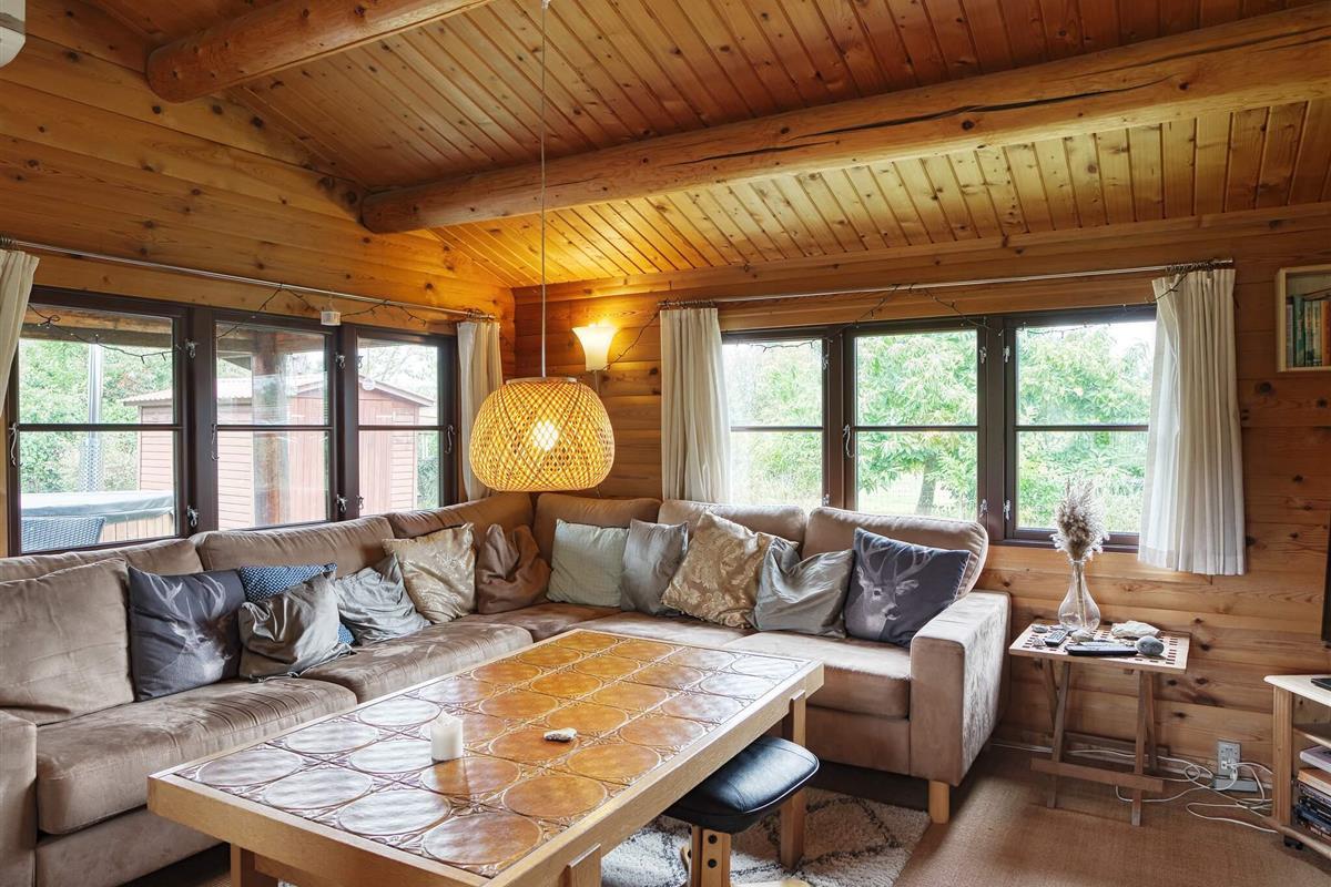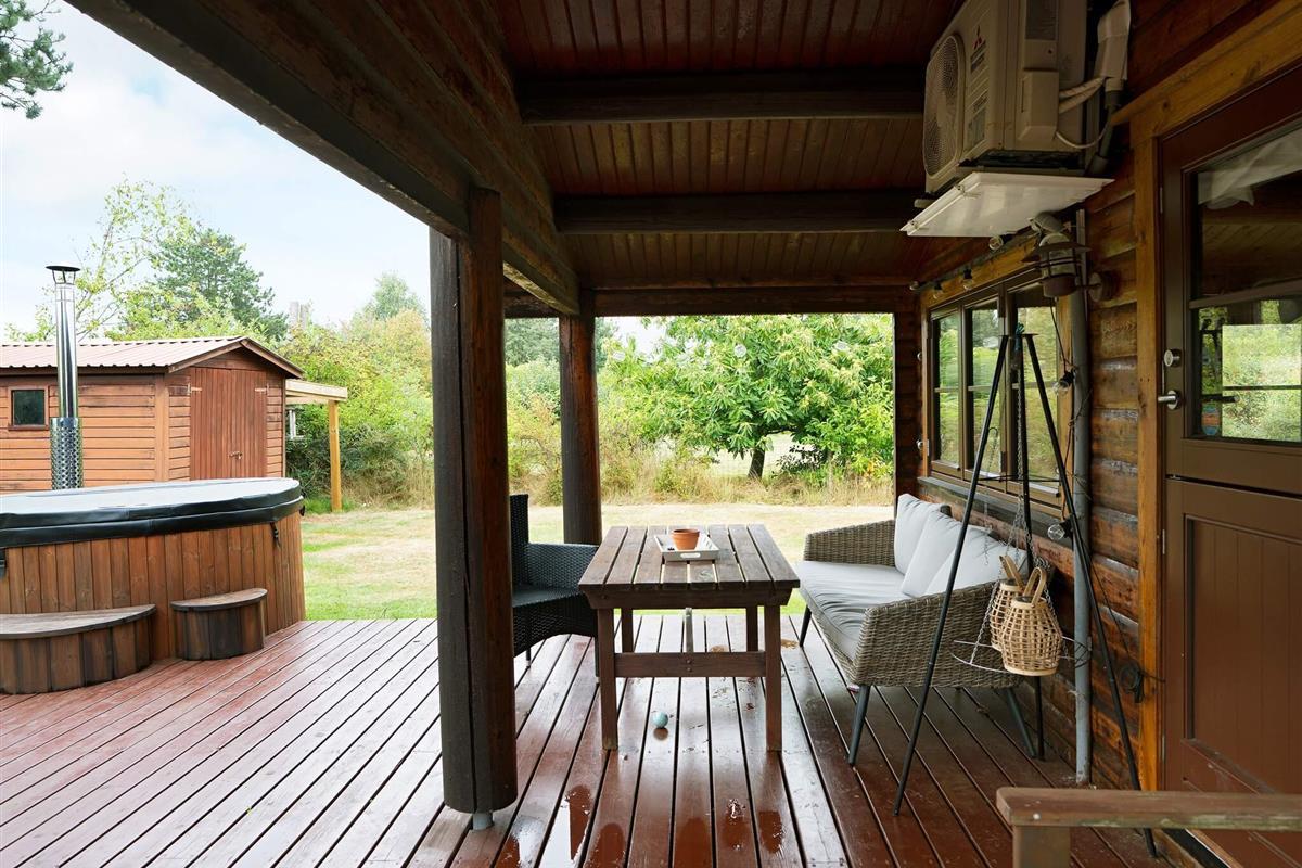 Das Ferienhaus wird von einem 800 m² großen Garten umgeben, der auf drei Seiten mit Terrassen, Gartenmöbeln, einem Holzkohlegrill und einer Feuerstelle ausgestattet ist - ideal für lange Sommerabende im Freien. Auf einer der Terrassen befindet sich ein Badezuber, der das Leben im Freien mit Badespaß verbindet.