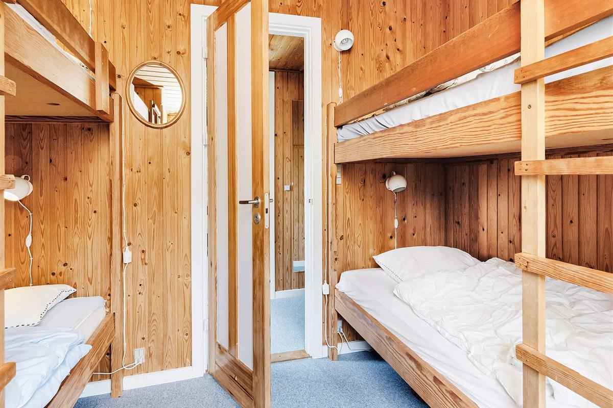 Dieses helle Ferienhaus liegt einem großen, gut abgeschirmten Grundstück, wo Sie in Ruhe ein Sonnenbad genießen können. Für Kleinkinder steht draußen ein Sandkasten bereit. Im Haus offener Küchen-/Wohnbereich für das Familienleben. Zudem drei Schlafzimmer; eines mit einem 140x200 cm Doppelbett, die anderen mit Kojen in Etagenbetten (190x70 cm).