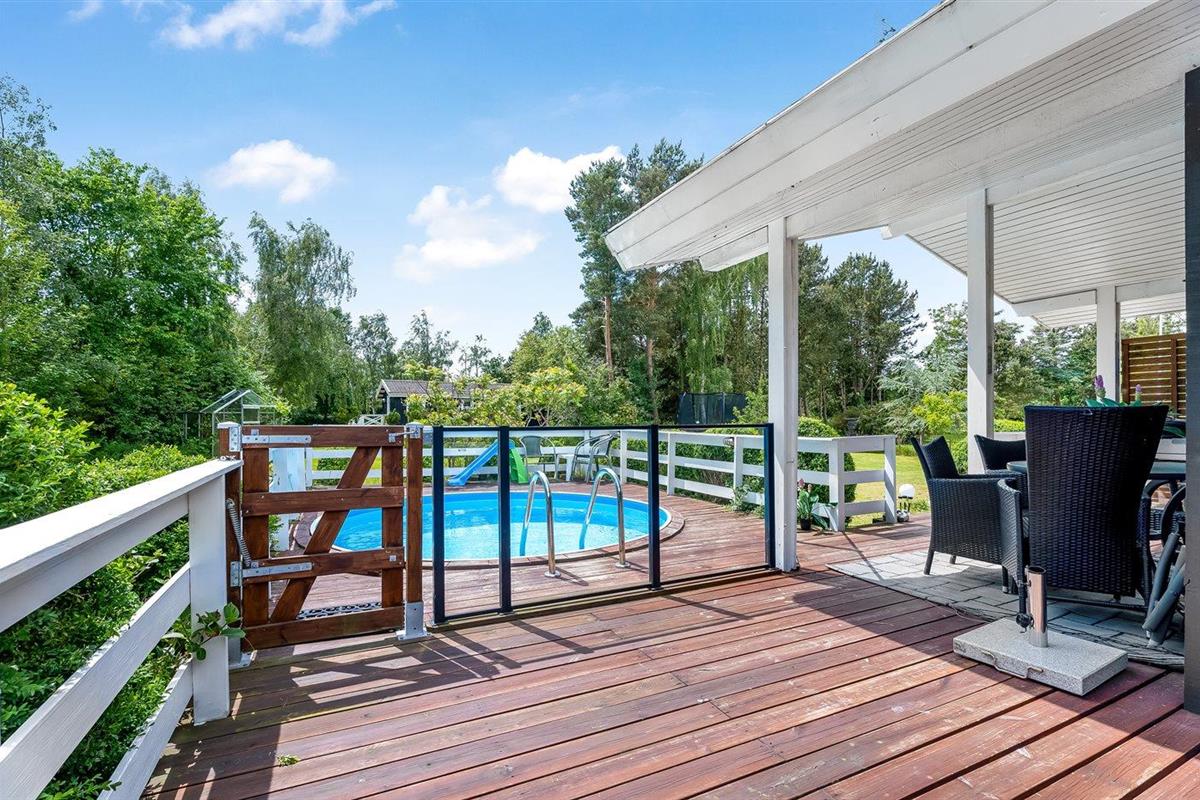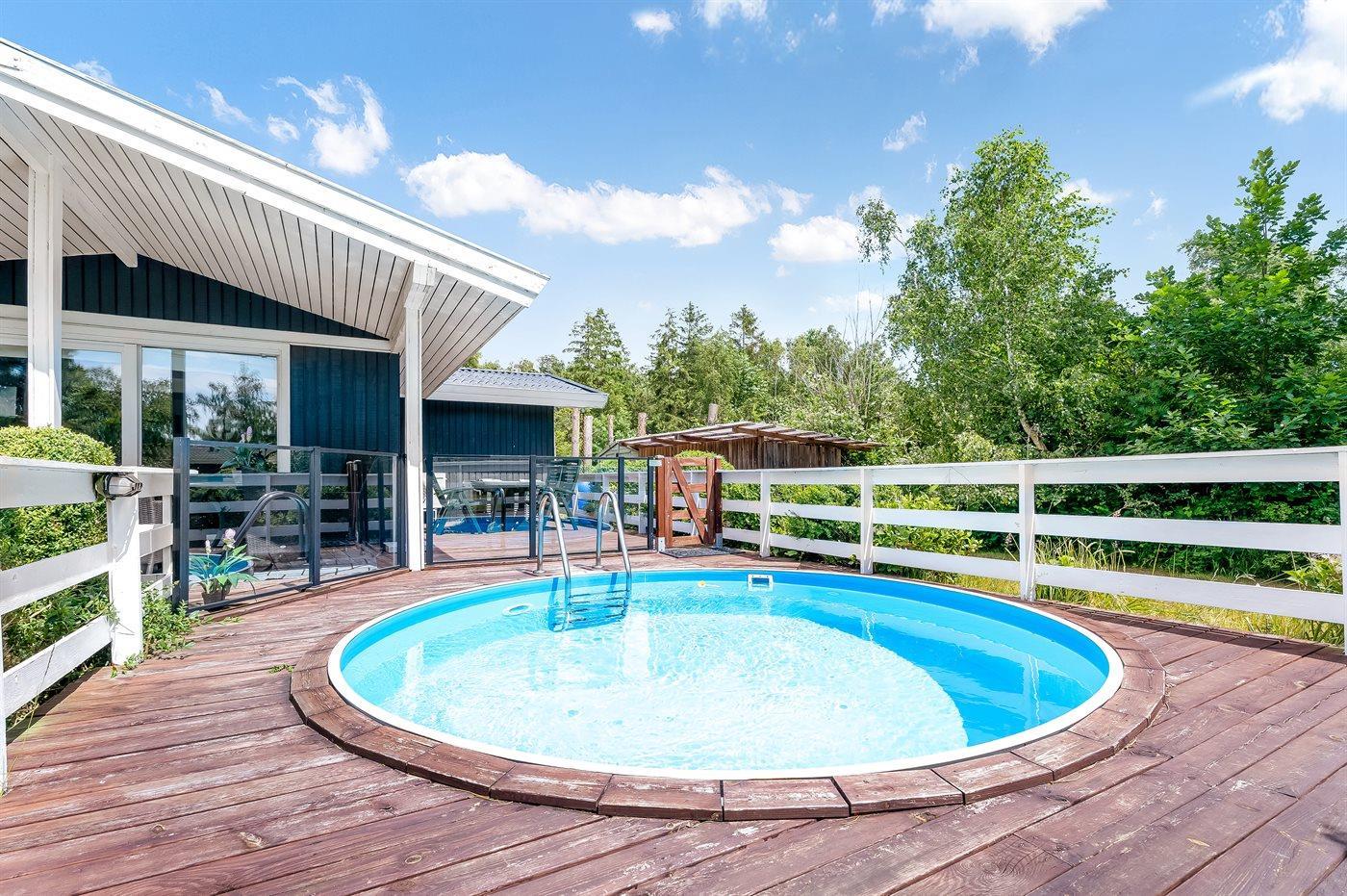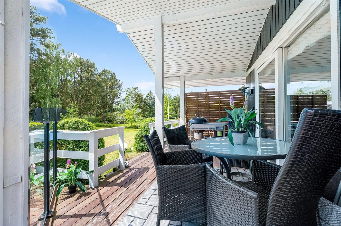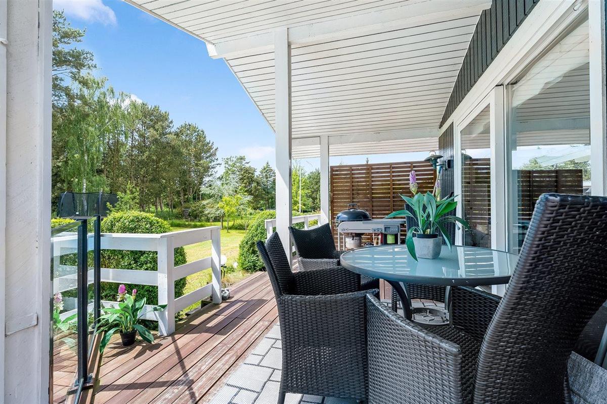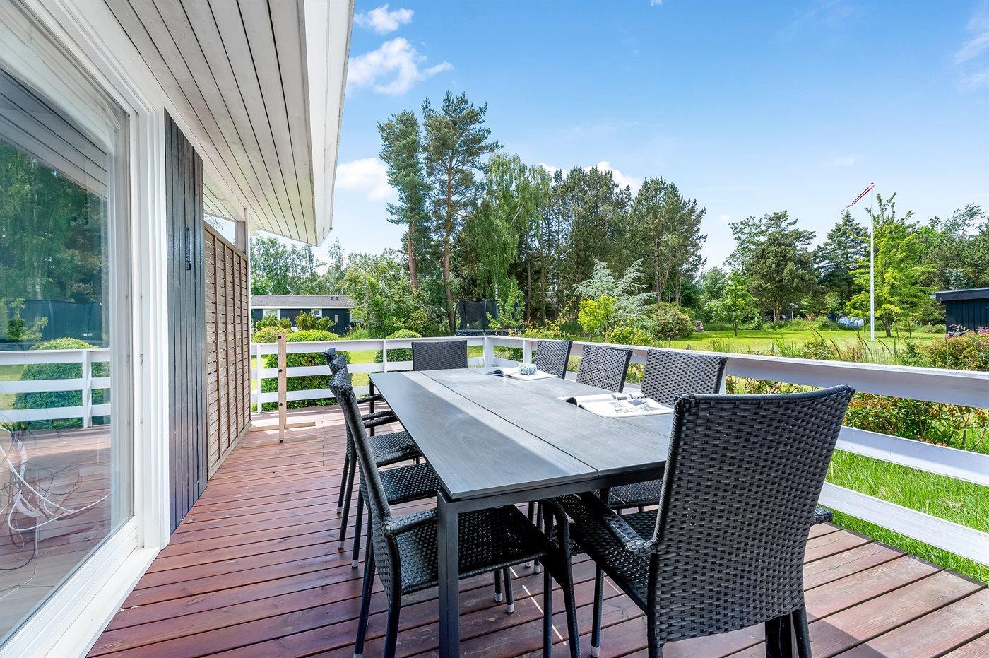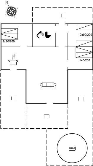 De vakantiewoning is gelegen op een 1100 m² groot aangelegde tuin. Afstand tot de zee 670 m. Dichtstbijzijnde winkel 2200 m. Bij de vakantiewoning hoort 50 m² terras. Daarnaast is er een 15 m² groot overdekt terras. Trampoline. Er is een grote Weber houtskoolgrill. Parkeerplaats bij het huis.