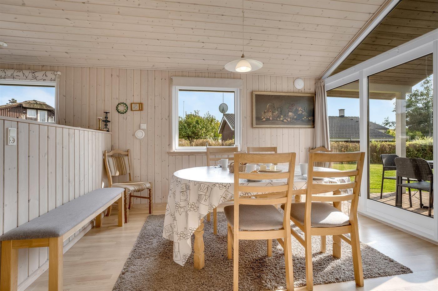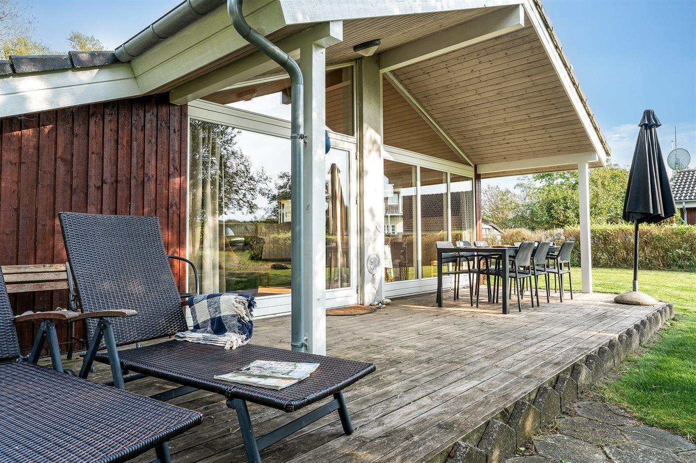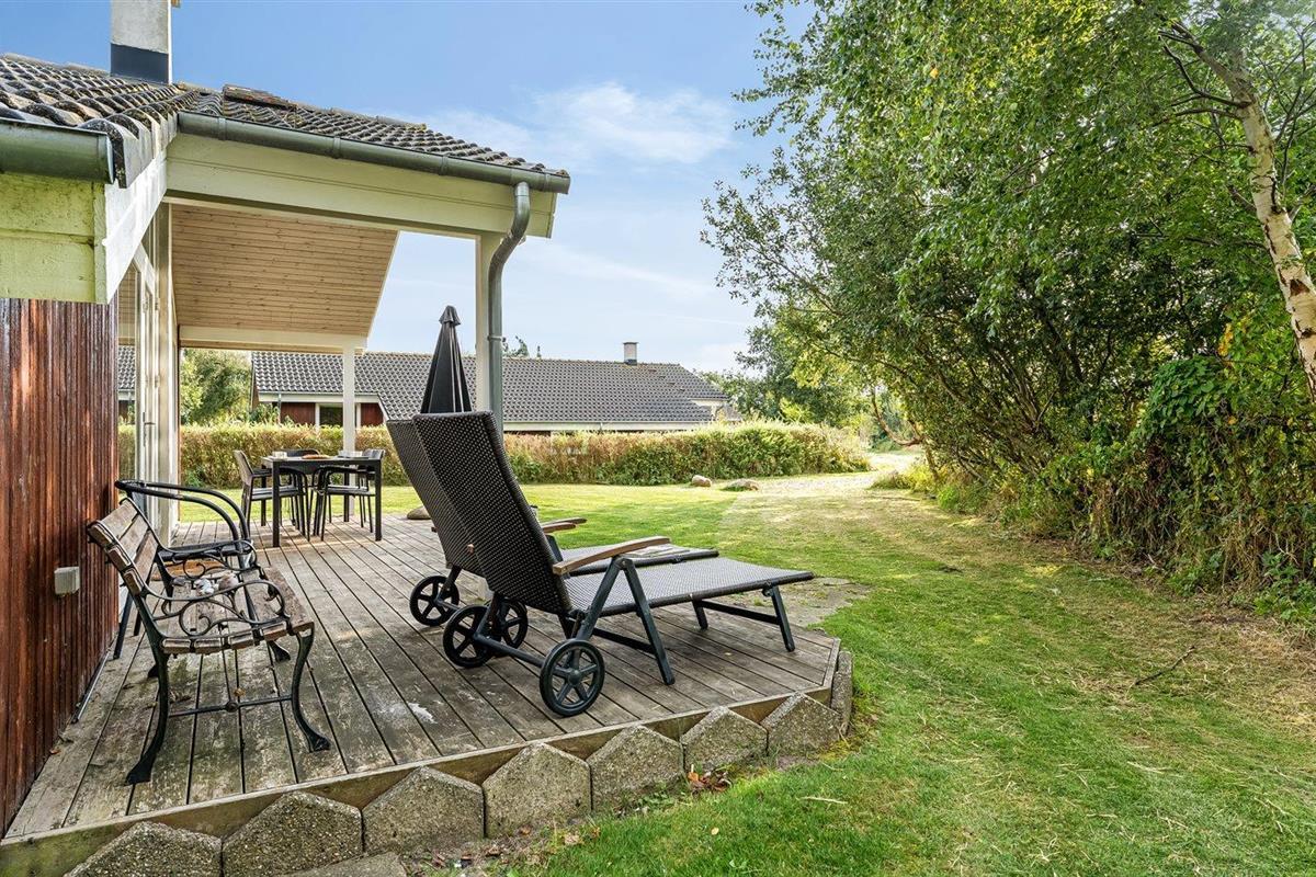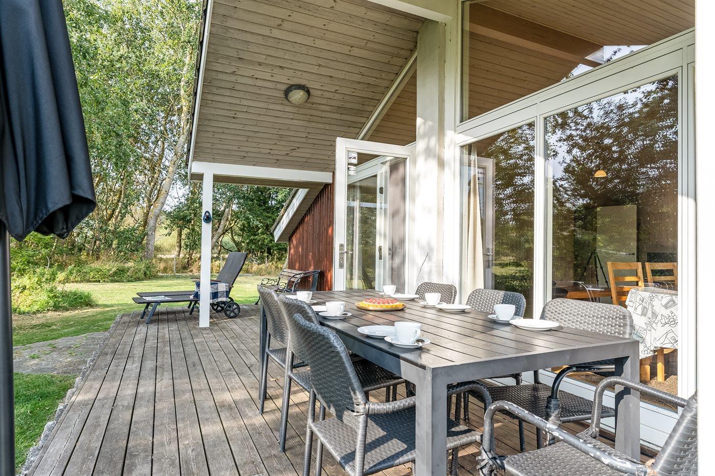 De vakantiewoning is gelegen op een 650 m² groot aangelegde tuin. Afstand tot de zee 35 m. Dichtstbijzijnde winkel 3000 m. Bij de vakantiewoning hoort terras. Daarnaast is er een overdekt terras. Parkeerplaats bij het huis.