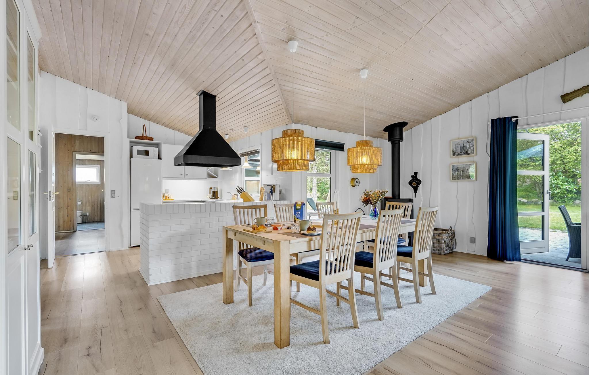 Op slechts 5 minuten lopen van de zee heet dit mooie, goed ingerichte houten luxe huis u welkom. De ruime woonkamer is voorzien van goed meubilair, tafeltennis en bordspellen en de keuken is van alle gemakken voorzien. In de slaapkamers kunt u heerlijk slapen in de tweepersoonsbedden. In een van de twee badkamers is er een whirlpool met plaats voor zes personen, waar je door de grote ramen kunt genieten van het seizoen. Hier kunt u ook terecht in de sauna.