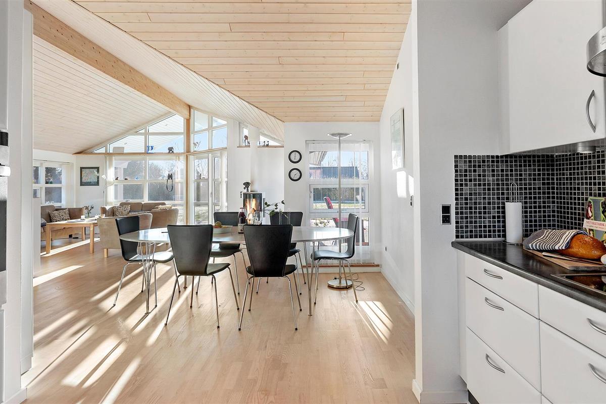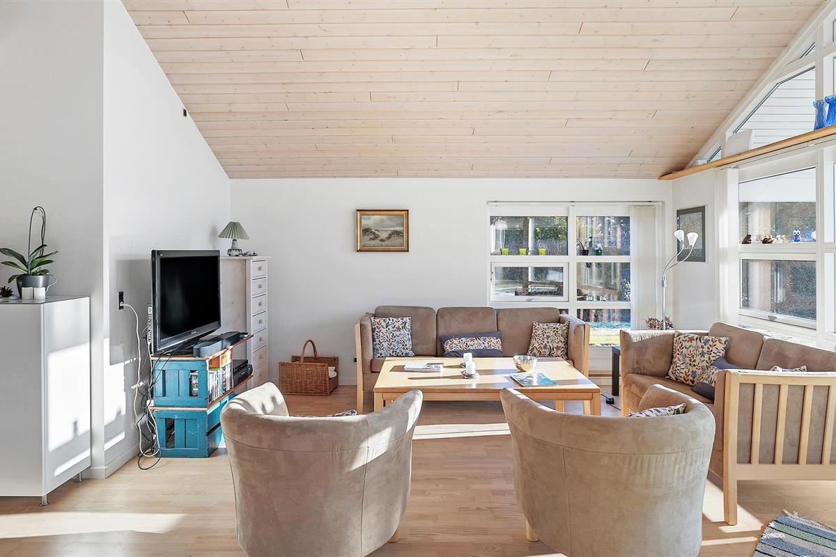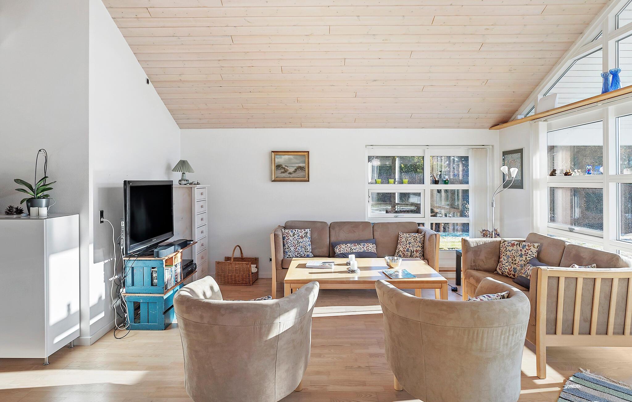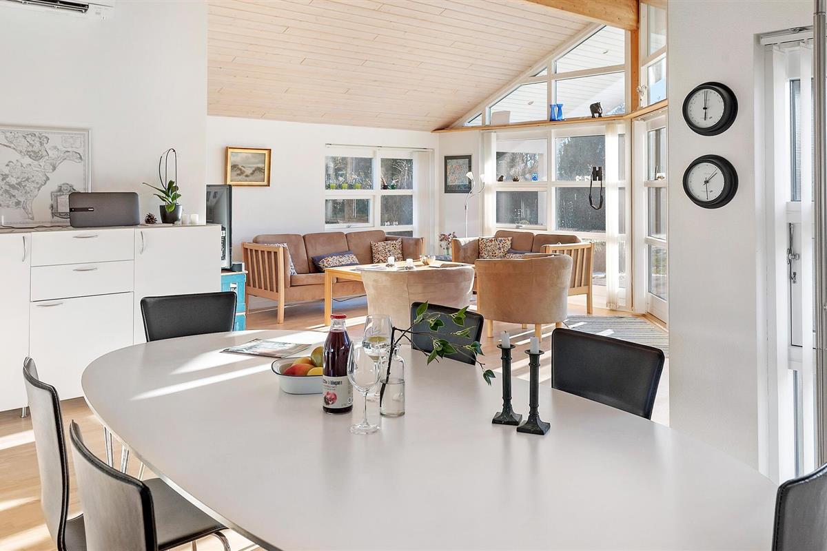 Breng je tijd door buiten het alledaagse leven in dit familievakantiehuis, dat met zijn goede en verzorgde inrichting en uitrusting de beste voorwaarden biedt voor een geslaagde vakantie. Voel je hier thuis en breng vele uren door in de lichtovergoten woonkamer. Leg je voeten op de banken of kijk hoe je kinderen kleuren aan de eettafel.