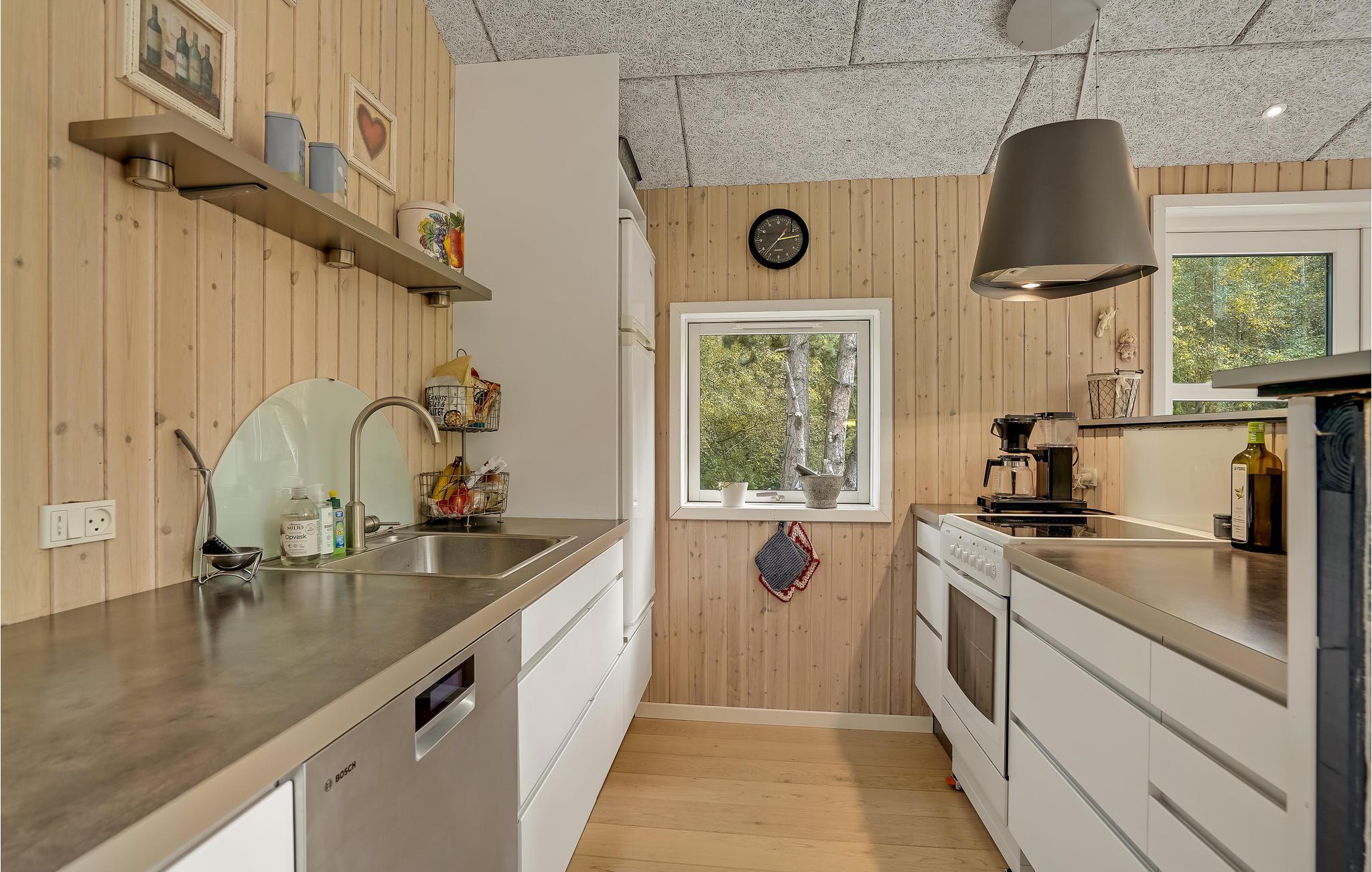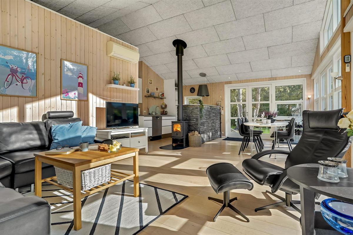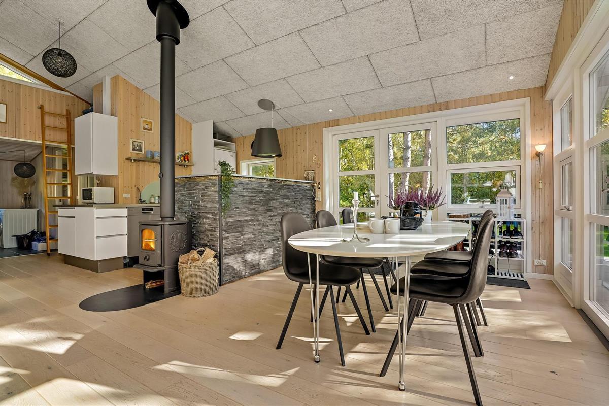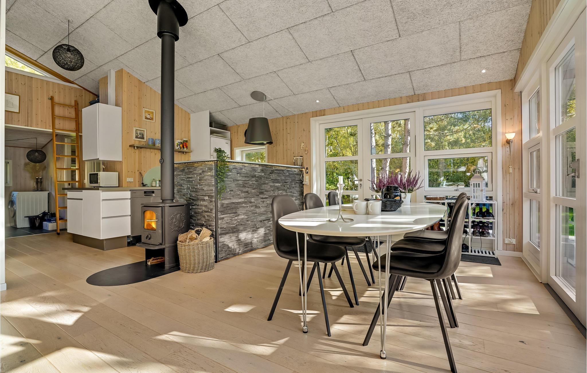 Welkom in dit uitnodigende vakantiehuis, dat een verzorgde en smaakvolle indruk maakt. De ruime, lichte woonruimte met open keuken wordt het natuurlijke ontmoetingspunt tijdens uw vakantie. Dankzij de glazen pui valt er veel licht in het interieur, wat een aangename sfeer creëert. Verzamel rond de eettafel voor gezellige maaltijden en breng 's avonds bordspellen door met de gezellige geluiden van de open haard op de achtergrond.