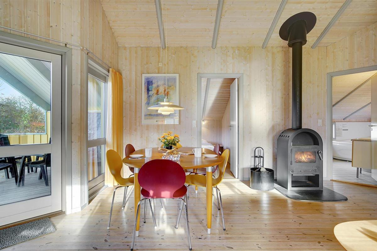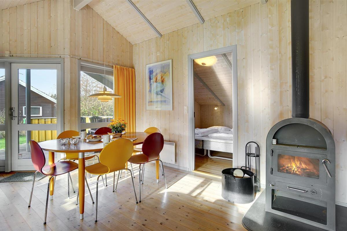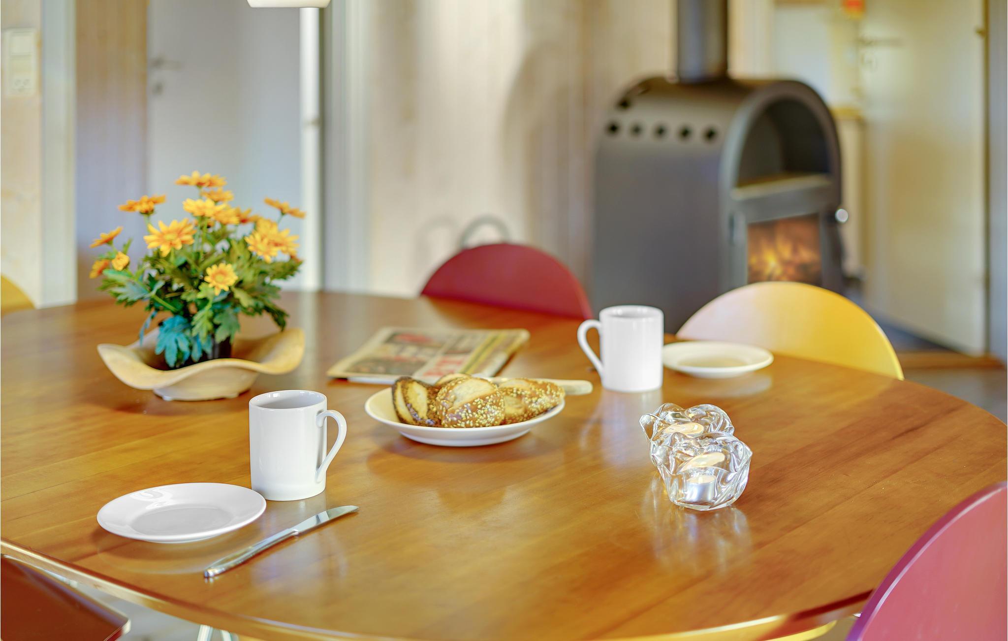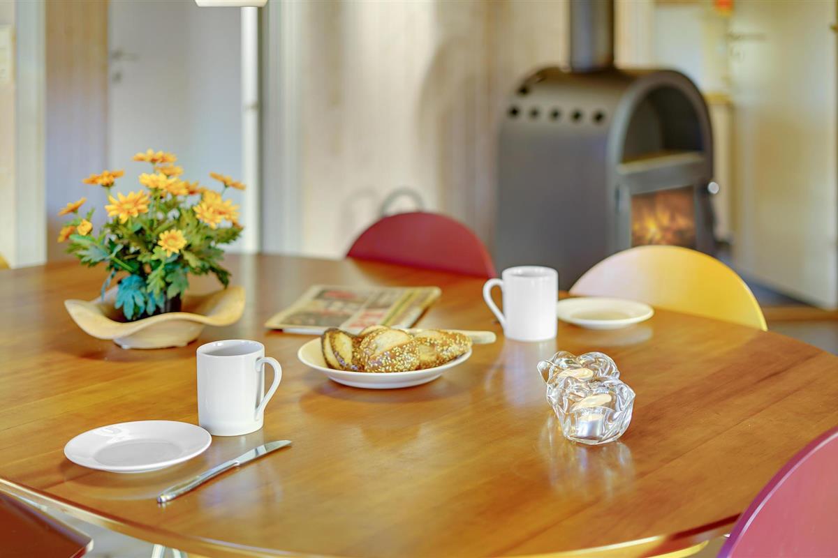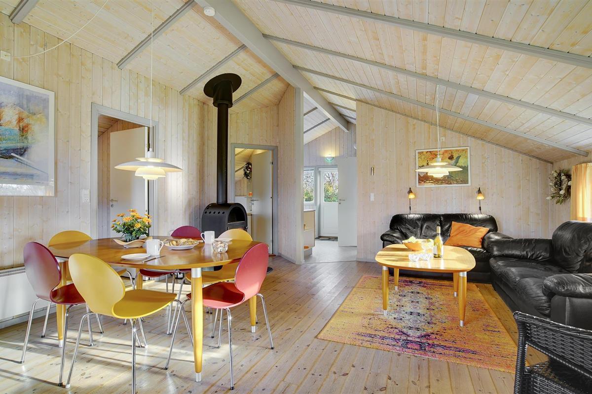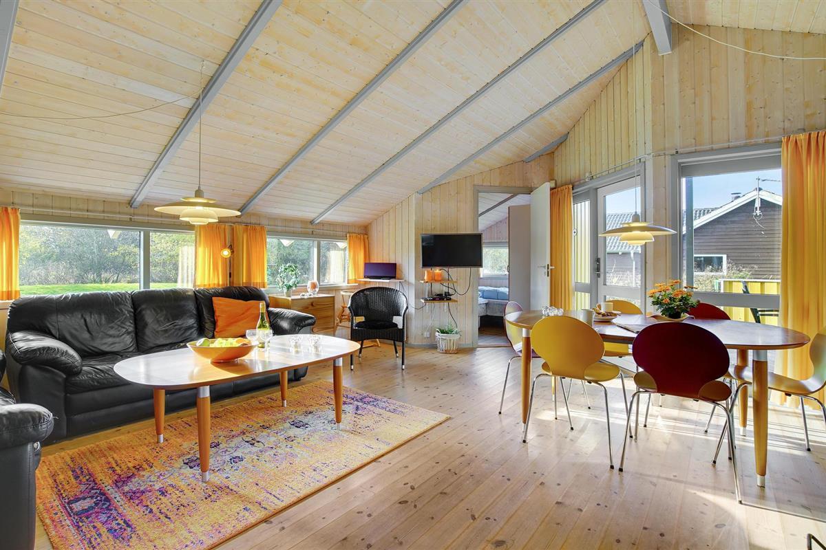 Het terras is mooi beschut tegen de wind en gedeeltelijk overdekt, mocht er een regenbui langskomen. Hier kunt u ook de dag goed beginnen en genieten van een kopje koffie. De grote woonkamer met comfortabele meubels is fijn om in te ontspannen na een lange dag buiten vol activiteiten.