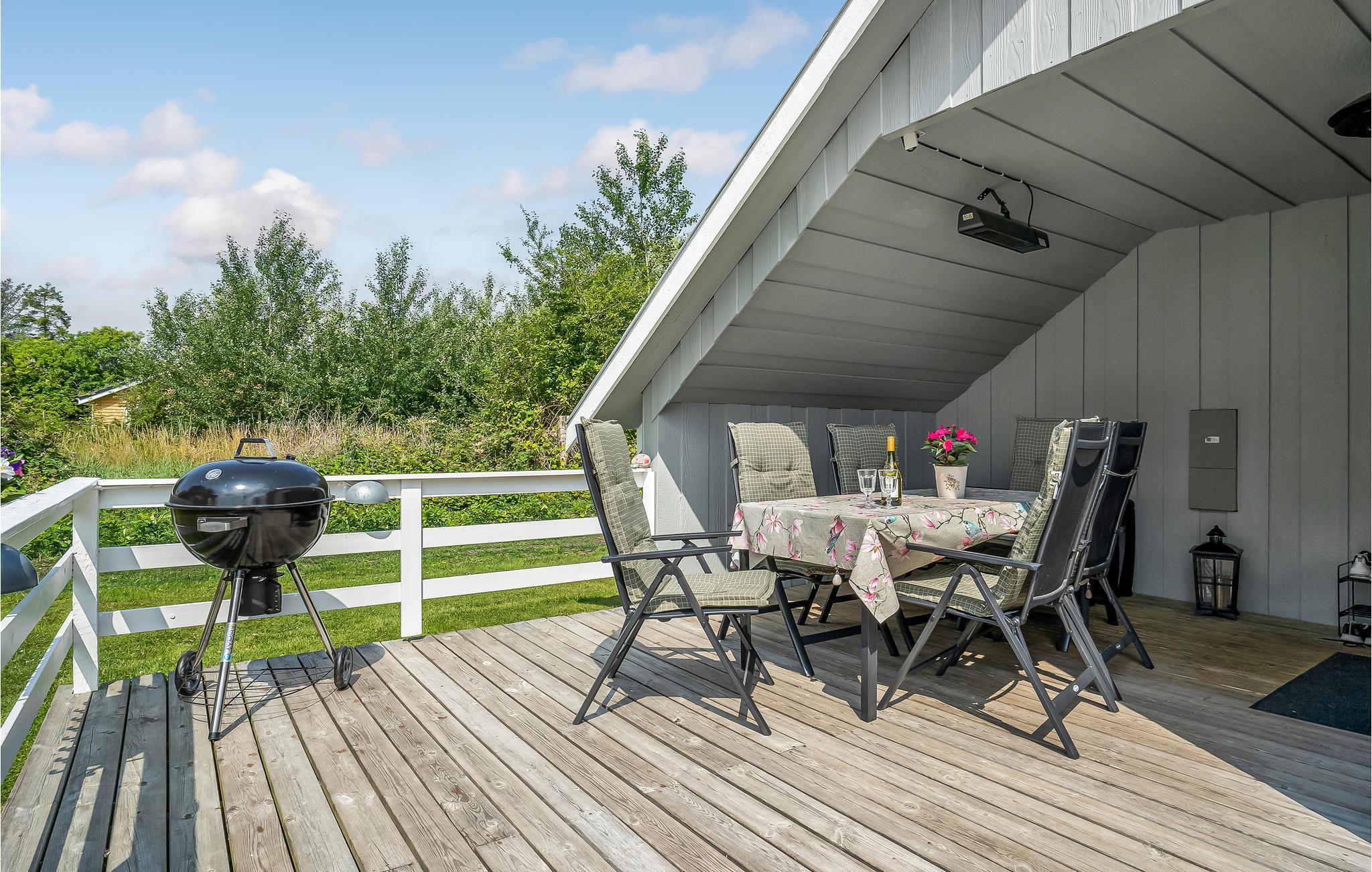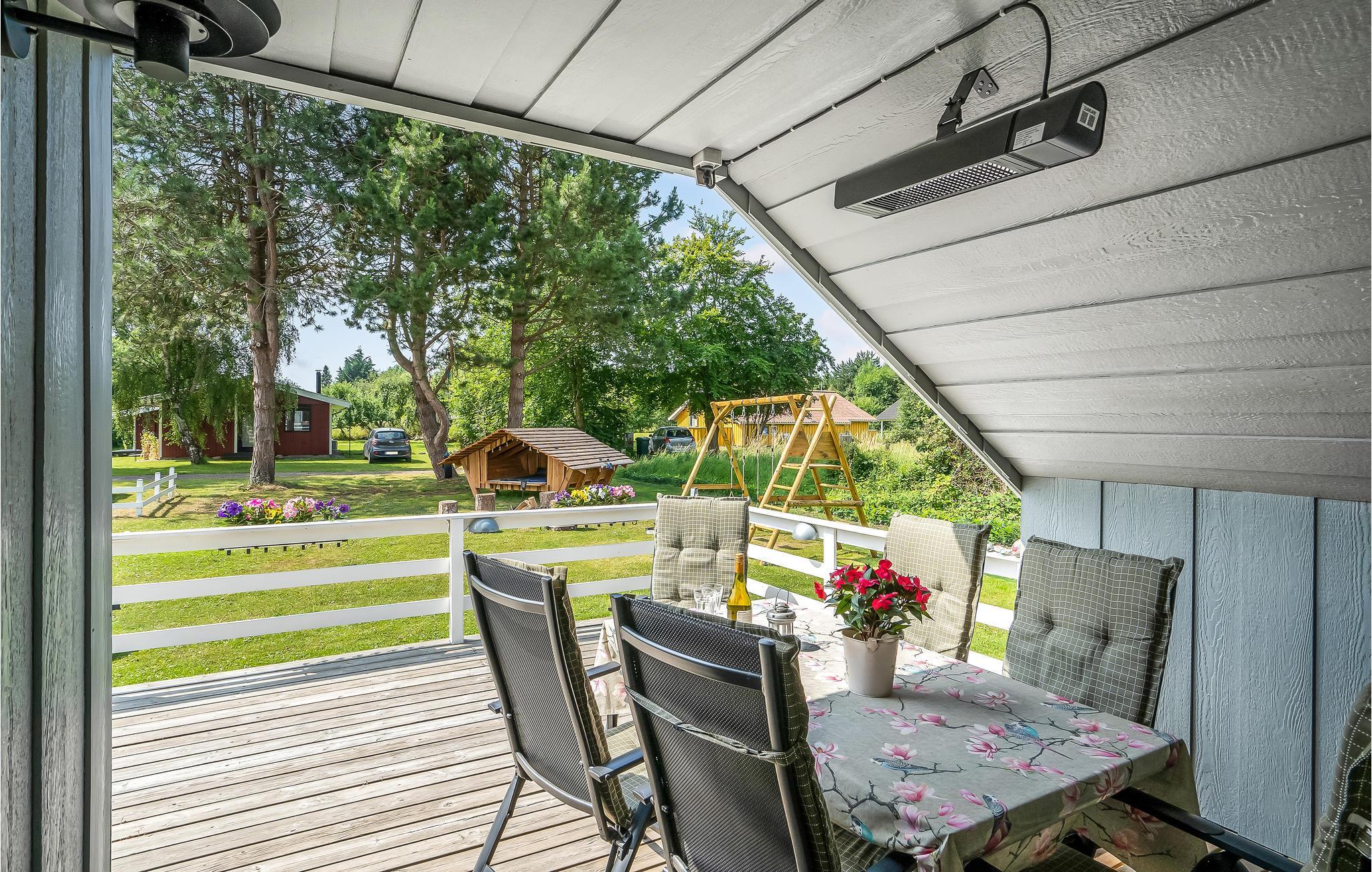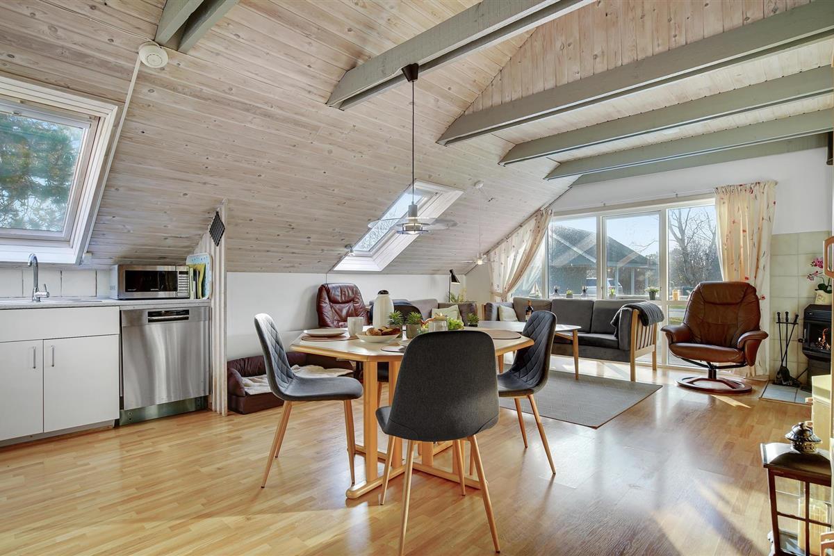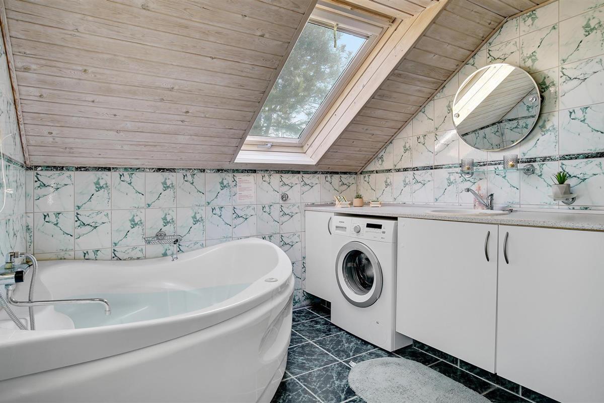 Het huis ligt op een gedeeltelijk omheind perceel in een rustige omgeving, op slechts 250 meter van de minigolf en het strand met goede vismogelijkheden. Buiten wachten een overdekt en open terras op u, waar u kunt genieten van de lange zomeravonden. In het huis is er een badkamer met sauna en een whirlpool voor twee personen. De open keuken is verbonden met de woonkamer. Het huis wordt verwarmd met een warmtepomp en elektrische kachels, evenals een gezellige open haard. In de carport is er een 16A/22 kW laadstation met Type2 aansluiting voor het opladen van een elektrische auto.