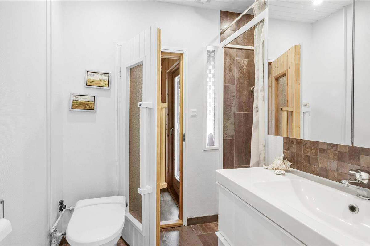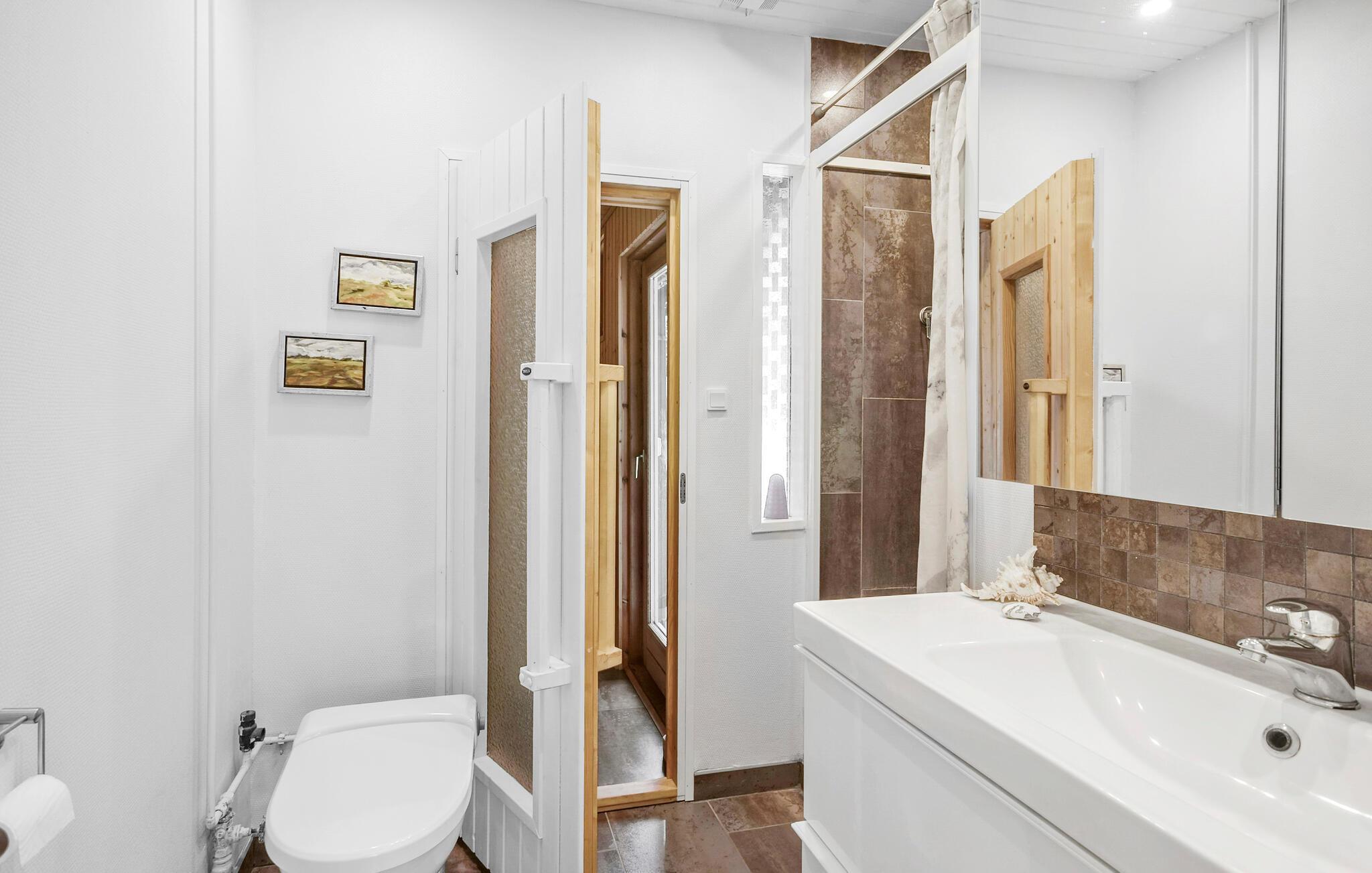 Het ruime houten terras en de goed onderhouden tuin bieden je een perfecte plek om te ontspannen in de zon of een ontspannen duik te nemen in het Finse houten buitenbad. Je kunt ook gebruikmaken van de sauna, die toegankelijk is via het terras.