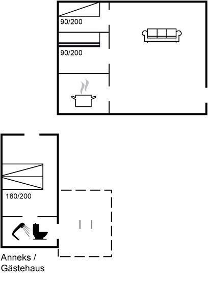 Er zijn in totaal 3 slaapkamers. De slaapplaatsen zijn als volgt verdeeld: 2 slaapplaatsen in tweepersoonsbed.1 slaapplaats in eenpersoonsbed. 2 slaapplaatsen in stapelbed. 2 van deze slaapplaatsen bevinden zich in de bijgebouw.